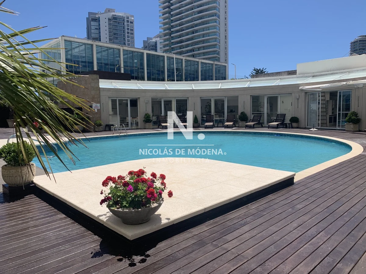 La unidad se encuentra en piso alto, ofreciendo una vista abierta y privilegiada al océano. Cuenta con un amplio living comedor con salida a una gran terraza balcón, ideal para disfrutar de los atardeceres más espectaculares de la Mansa. Dispone además de toilette de recepción, tres suites con excelente luminosidad y dependencia de servicio completa.