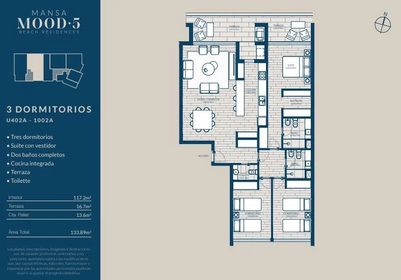 Apartamento de 3 dormitorios forma parte del exclusivo desarrollo Mansa Mood 5, ubicado en la icónica Parada 5 de Playa Mansa, Punta del Este. Diseñado con una impronta contemporánea y vistas despejadas hacia la Isla Gorriti, combina diseño, confort y ubicación en un mismo lugar.