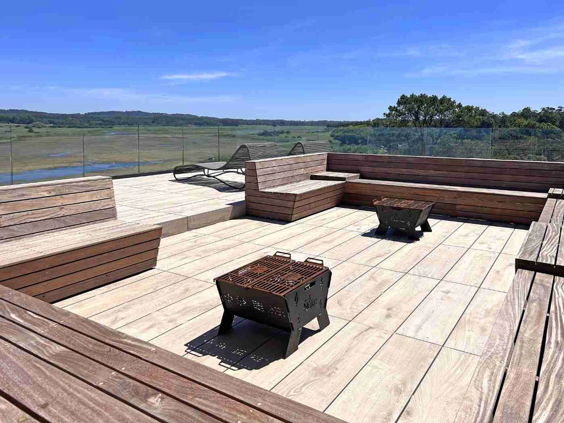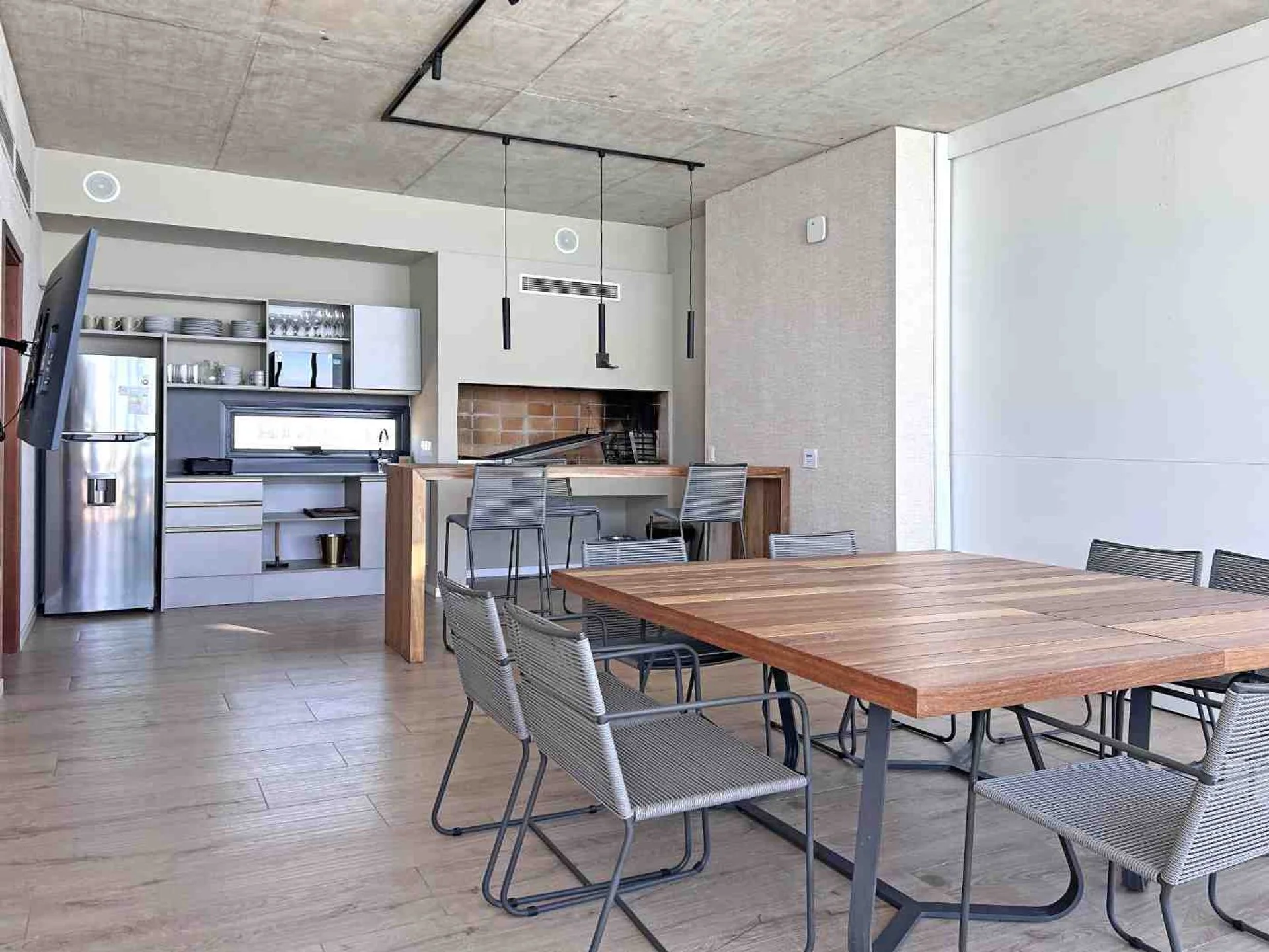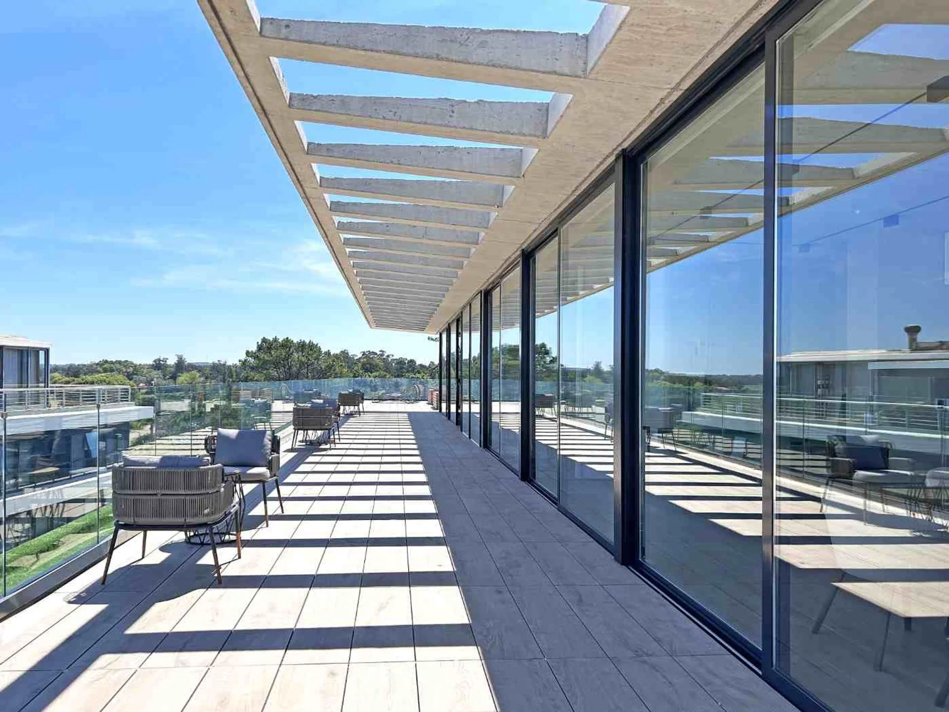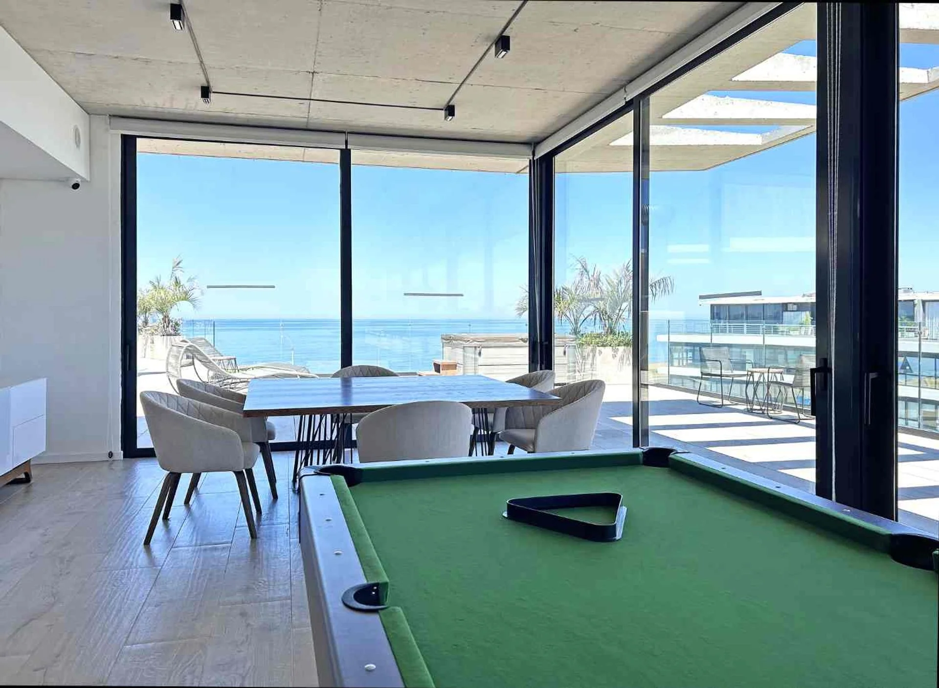 Los amenities incluyen gimnasio, piscina abierta en planta baja, terraza con bar y piscina, barbacoa, salón para juegos de niños, servicio de playa y servicio de mucama opcional.