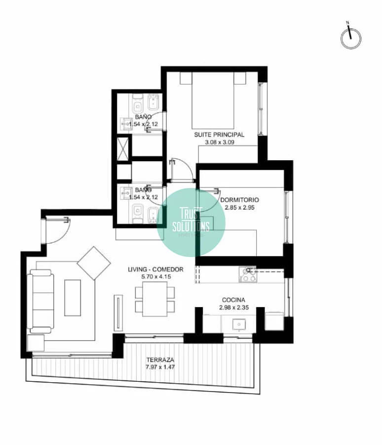 Tiene 2 dormitorios y 2 baños