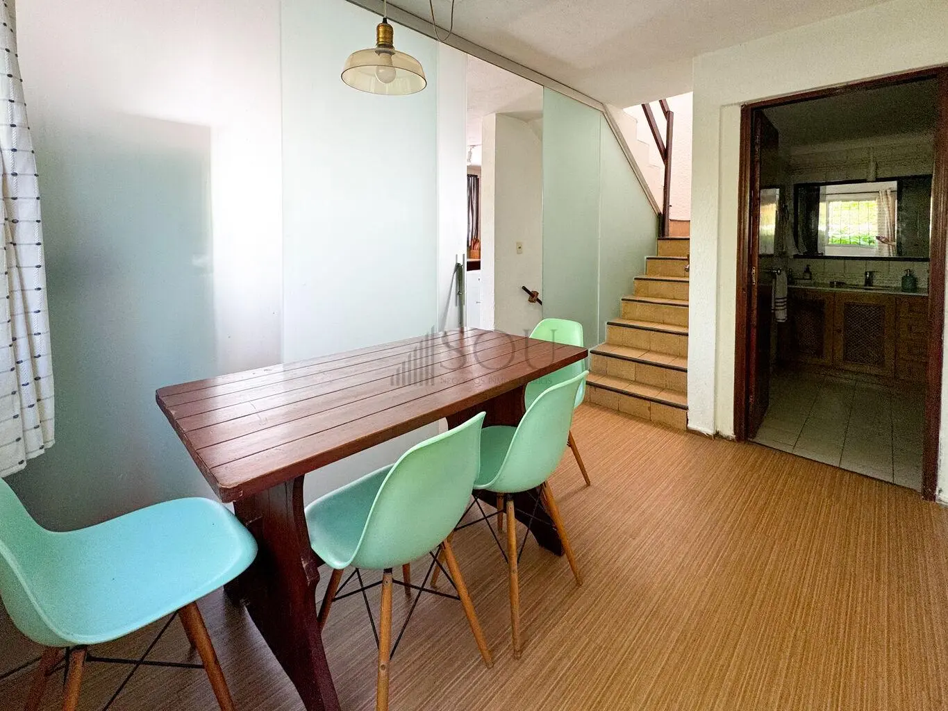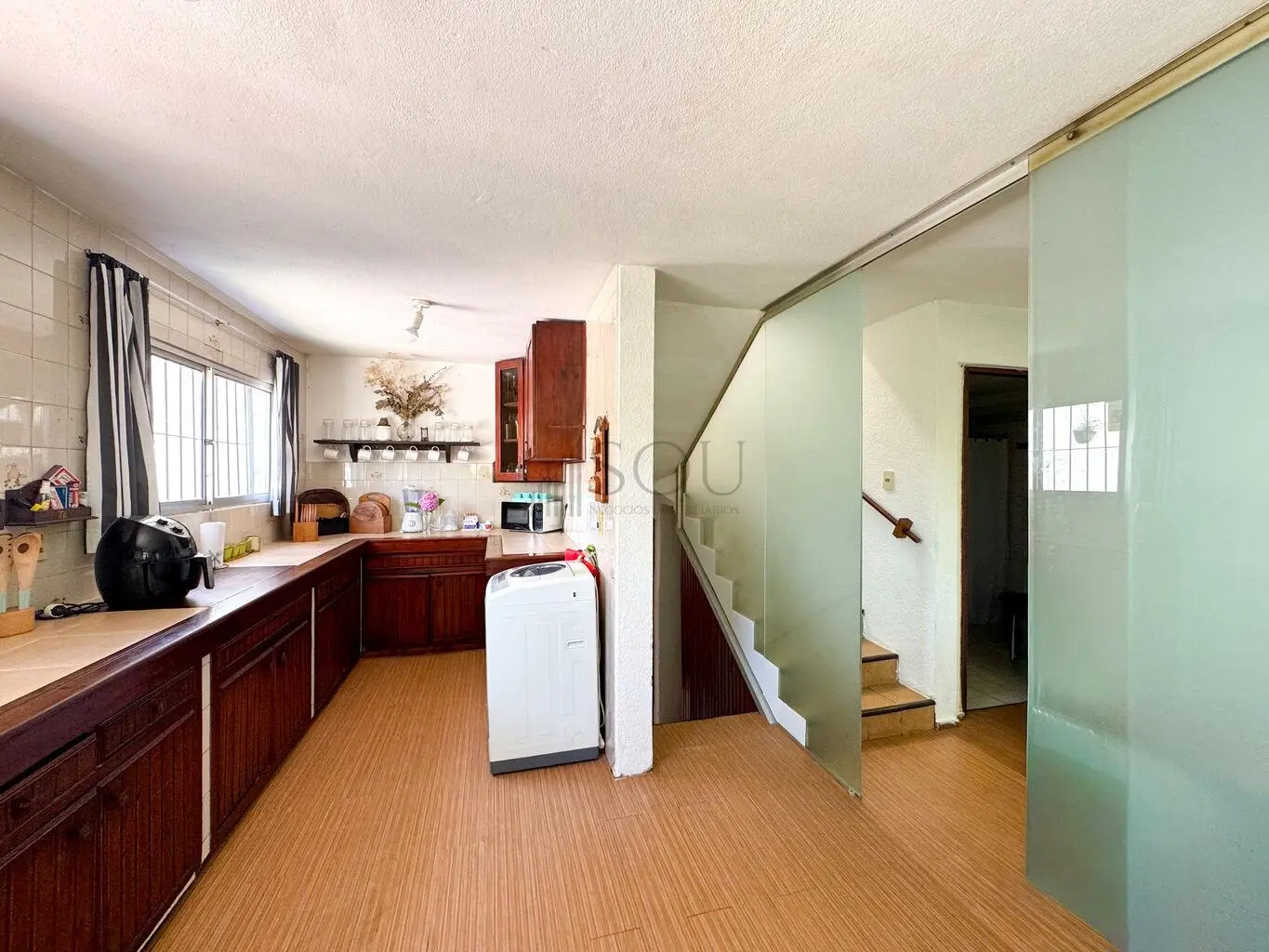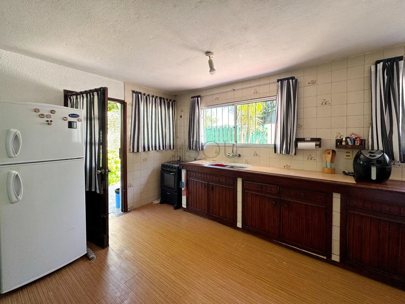 Cocina definida con salida al fondo, en el cual tenemos un parrillero y una piscina.