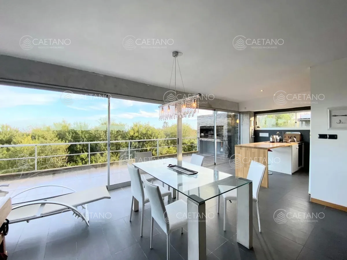 Planta alta, amplio living comedor con terraza transitable y parrillero. Cocina integrada al comedor dividida por isla con equipamiento completo, baño social.
