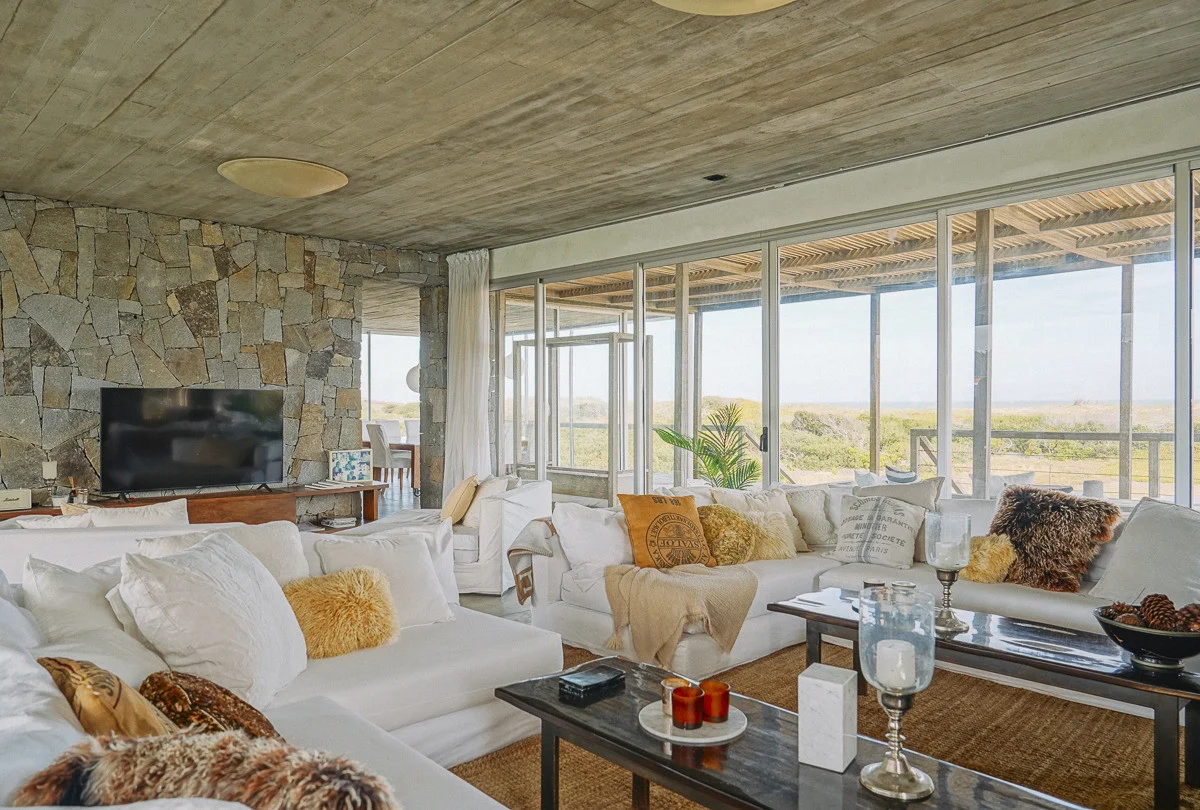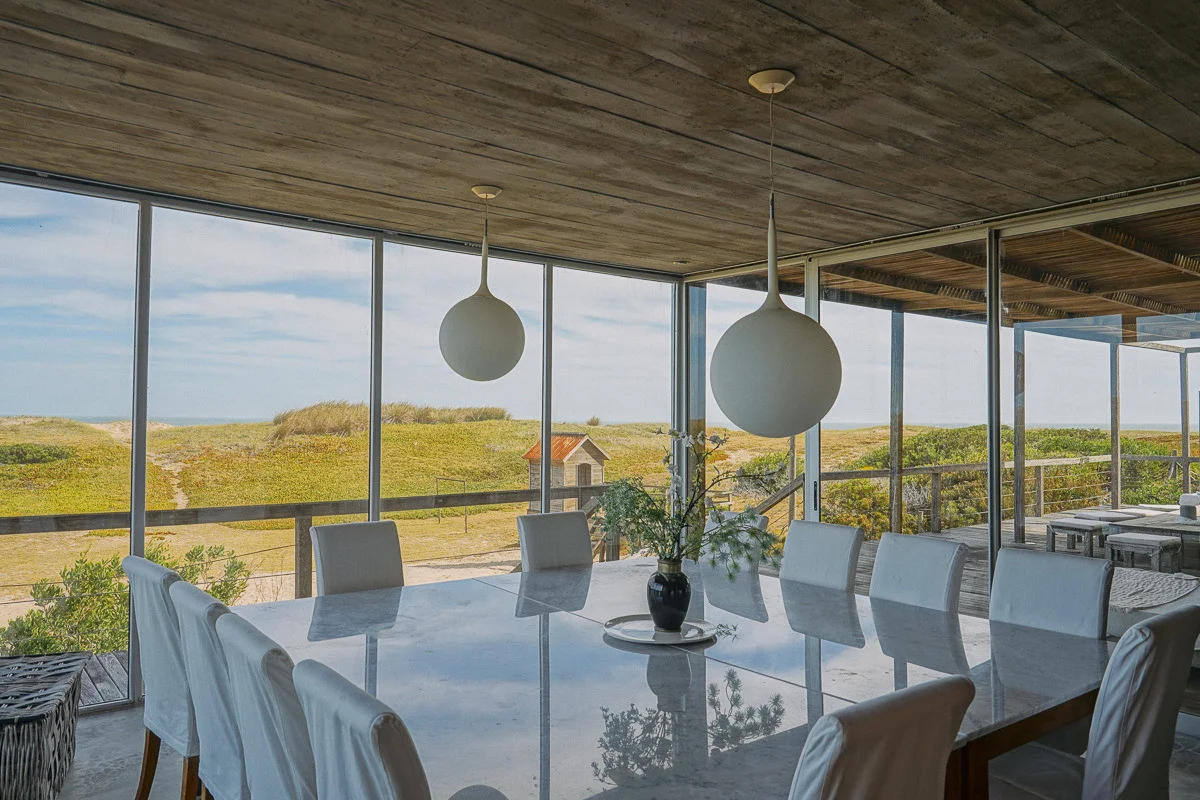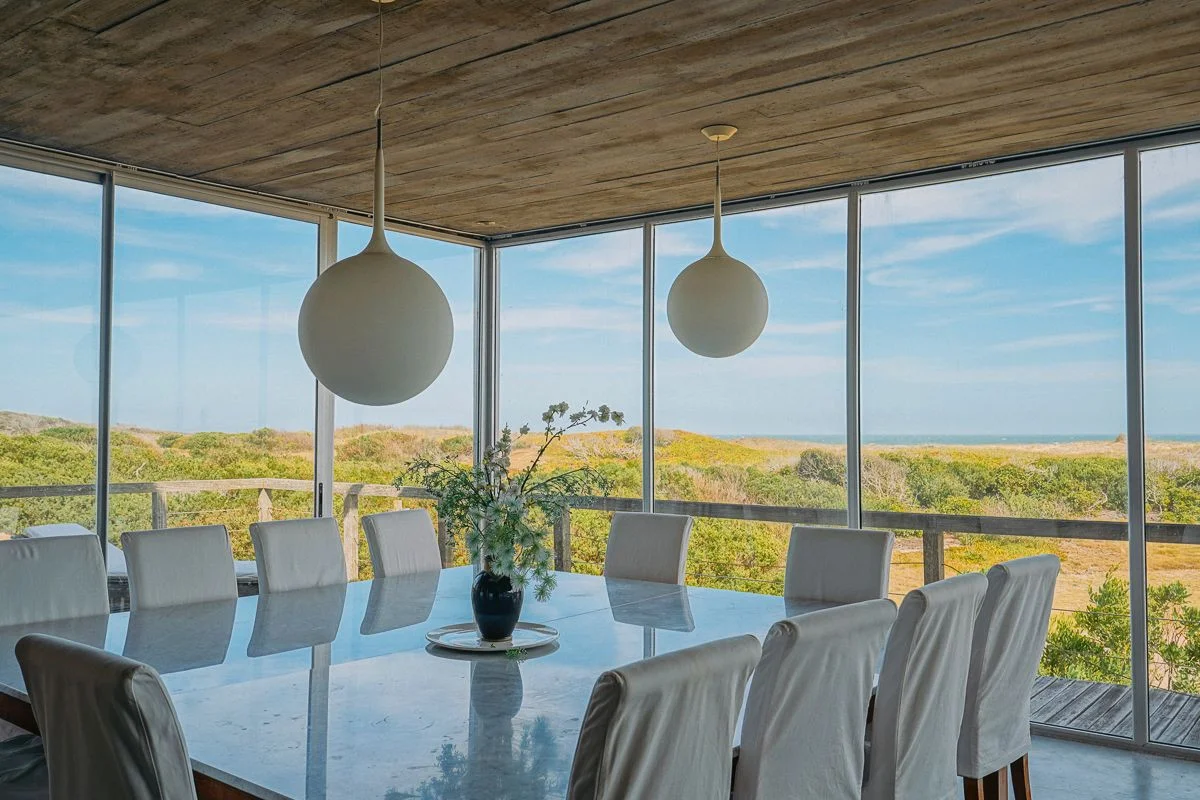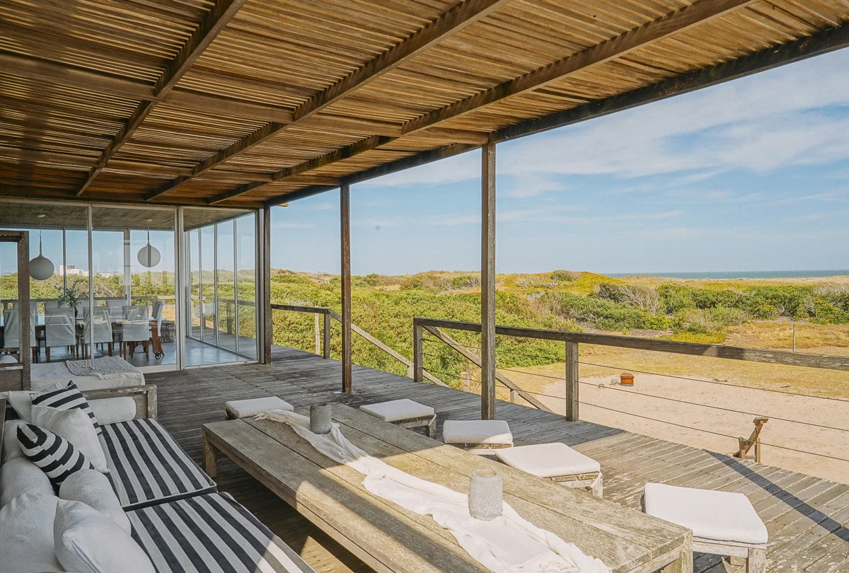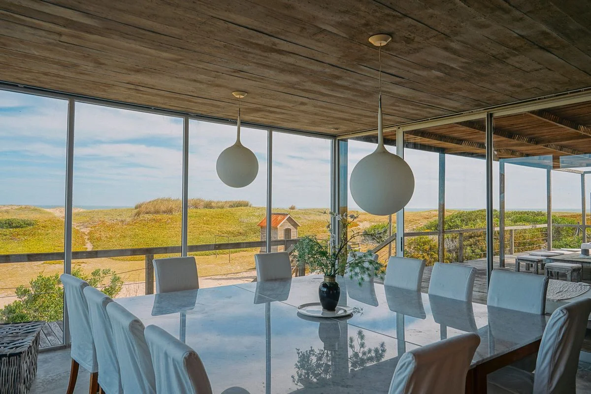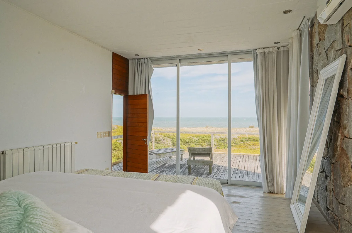 Excepcional casa de diseño ubicada sobre la arena en Santa Mónica, José Ignacio, con vista directa e ininterrumpida al océano. La propiedad destaca por su excelente distribución, ambientes muy amplios, techos altos y grandes ventanales que integran el mar en cada espacio.