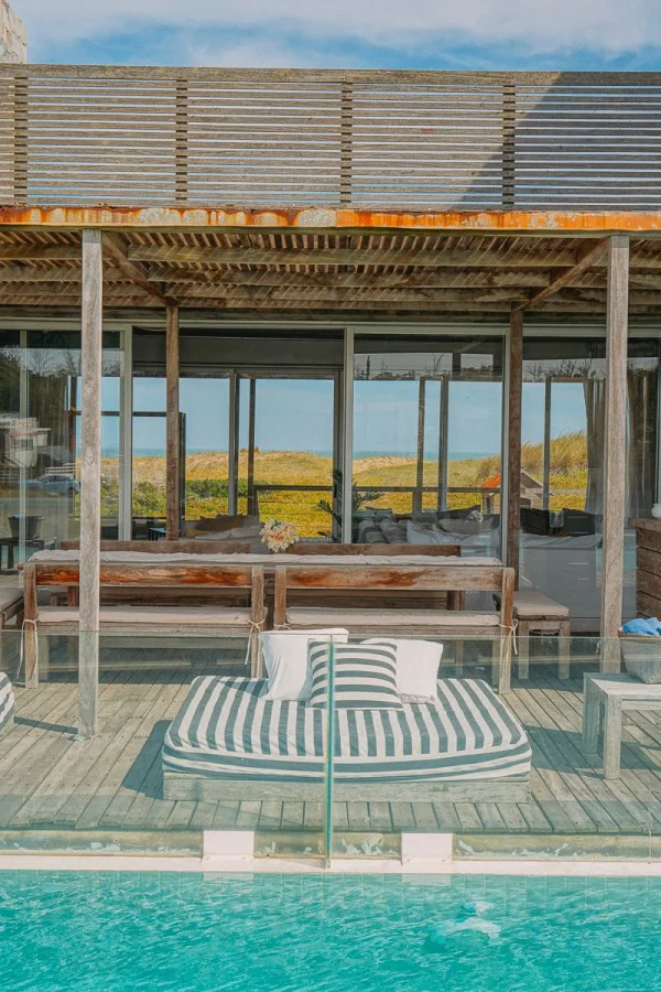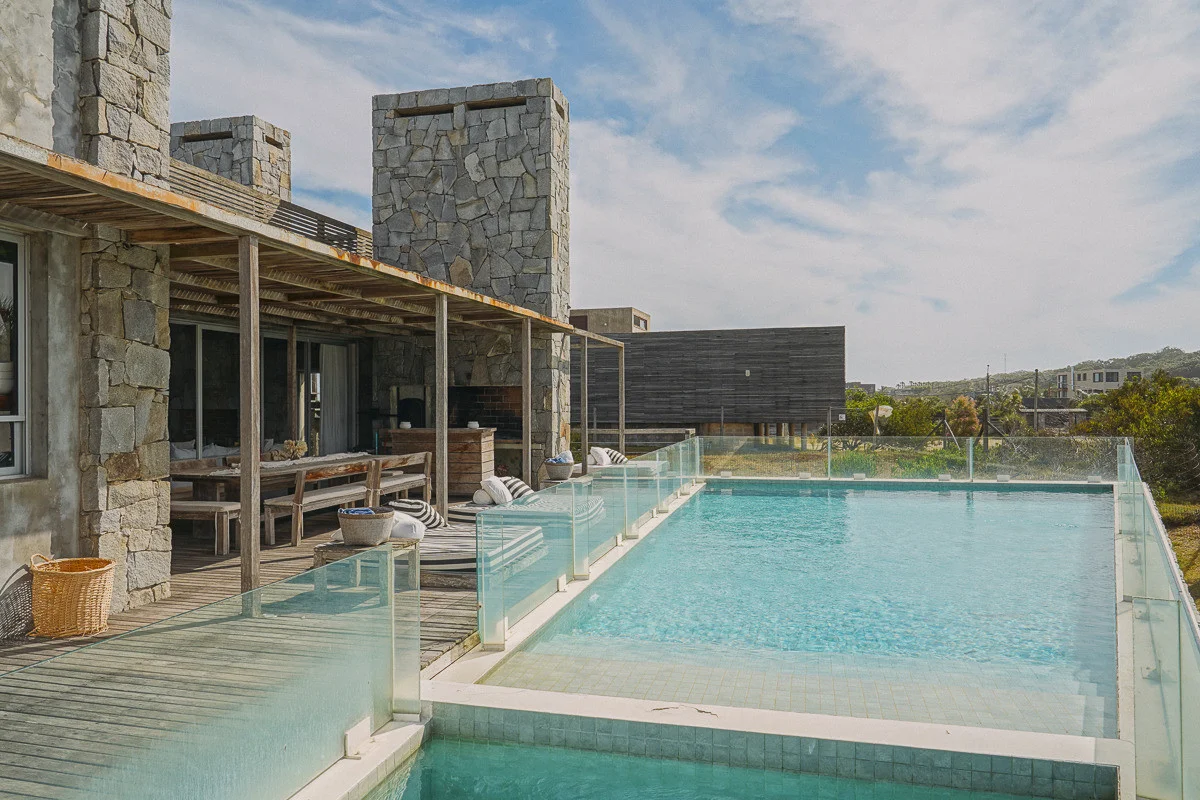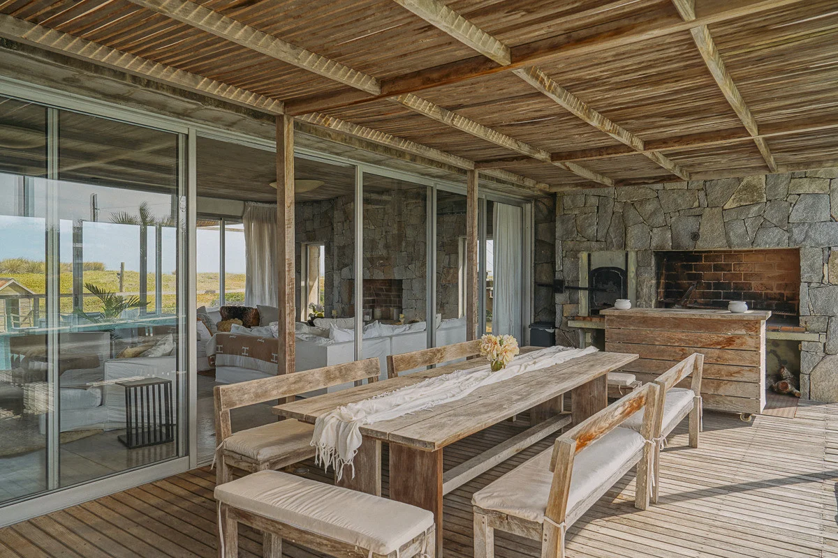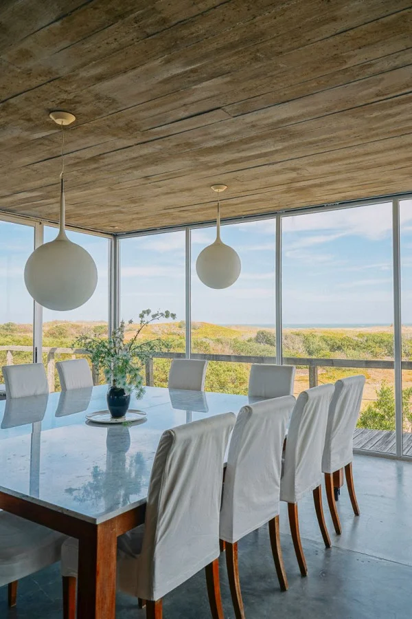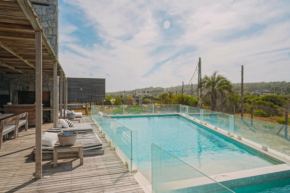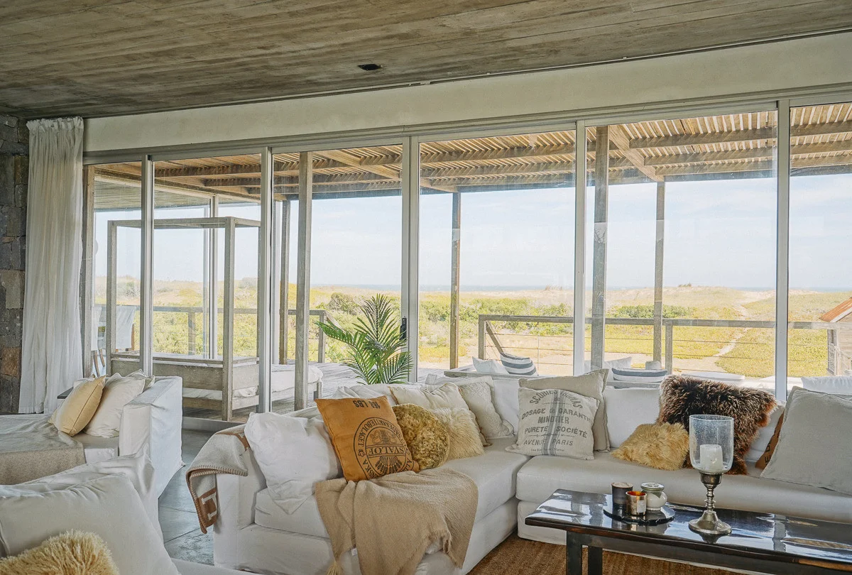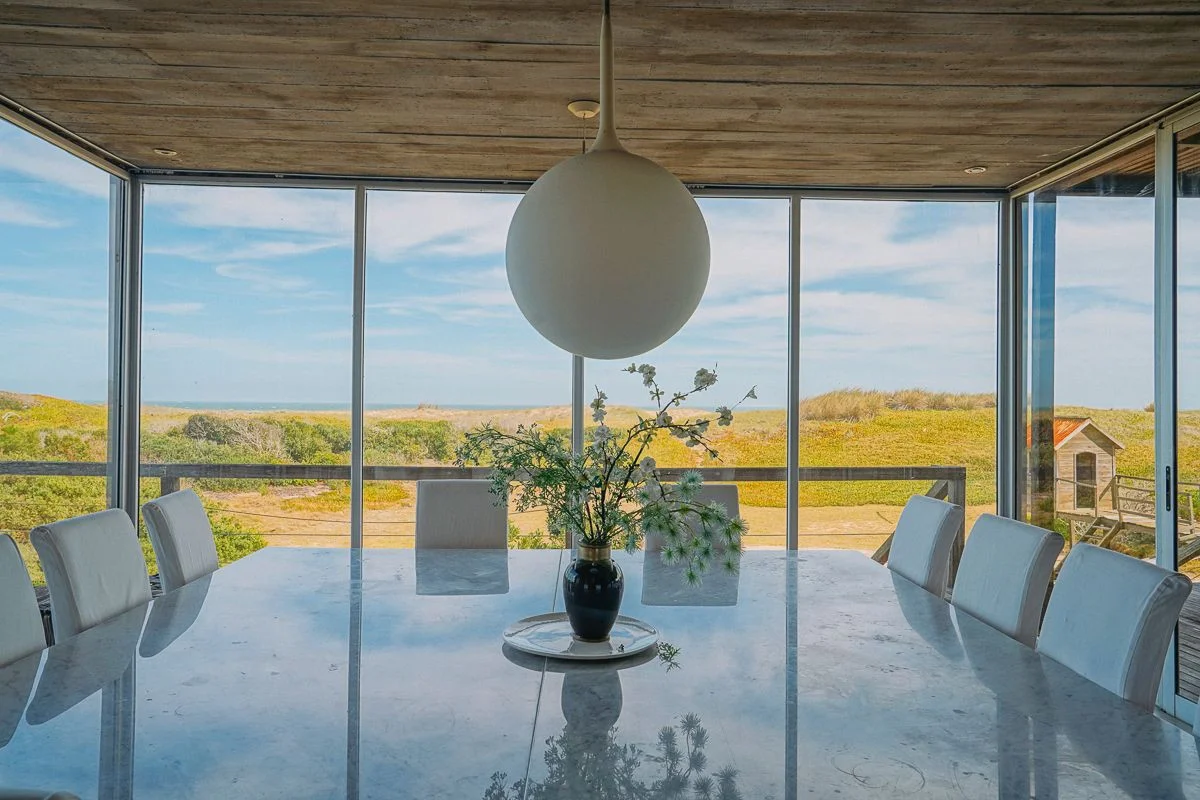 Excepcional casa de diseño ubicada sobre la arena en Santa Mónica, José Ignacio, con vista directa e ininterrumpida al océano. La propiedad destaca por su excelente distribución, ambientes muy amplios, techos altos y grandes ventanales que integran el mar en cada espacio.