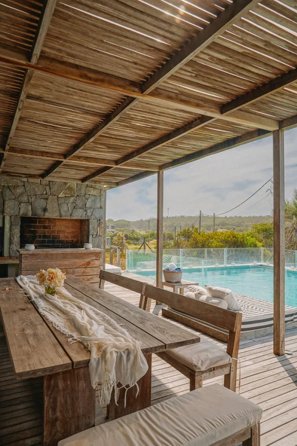 El área social ofrece un gran living con vista al mar, comedor independiente también con vista, cinco terrazas frente al océano, galerías al frente y al fondo, y una piscina orientada al atardecer. La casa cuenta con galería con parrillero techado, cocina totalmente equipada, aire acondicionado en todos los ambientes e internet por fibra óptica. Televisor Smart de 70”.