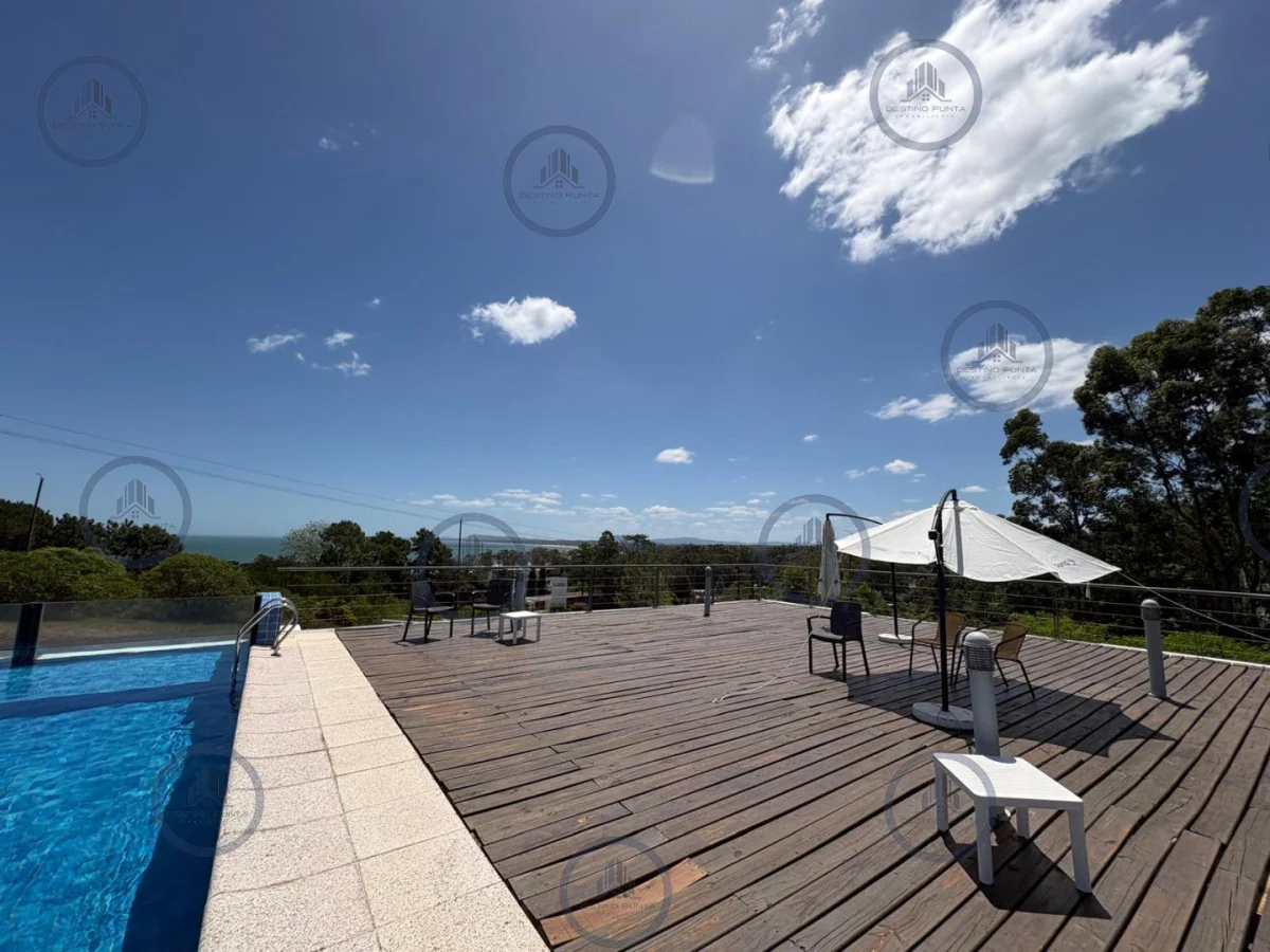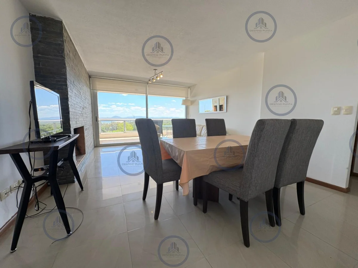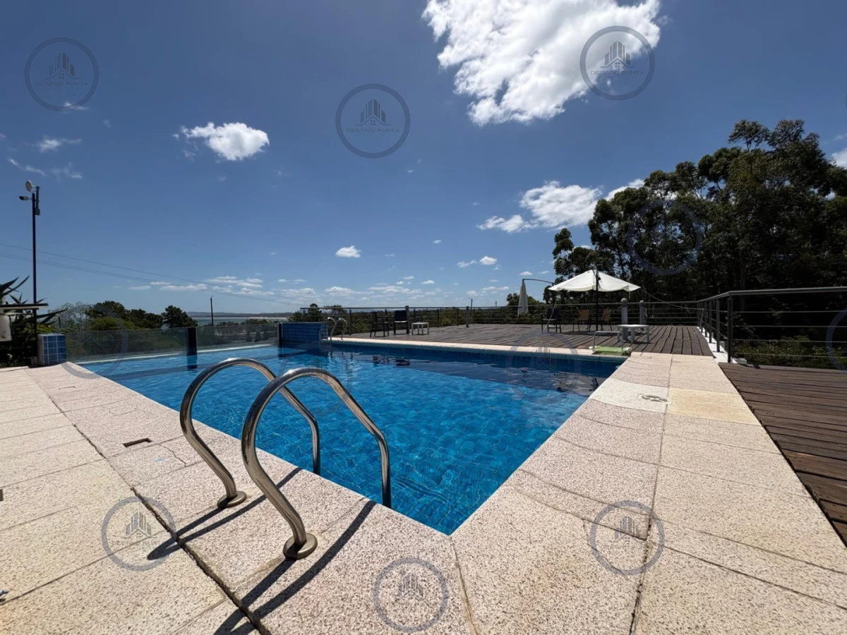 Vista al mar, cerros y al atardecer. Dispone de 2 dormitorios (1 en suite), 2 baños, cocina definida con terraza lavadero, living-comedor, estufa a leña y aire acondicionado en living y dormitorios. Cuenta también con terraza con parrillero, balcón, deck exterior de uso exclusivo, 2 garajes.