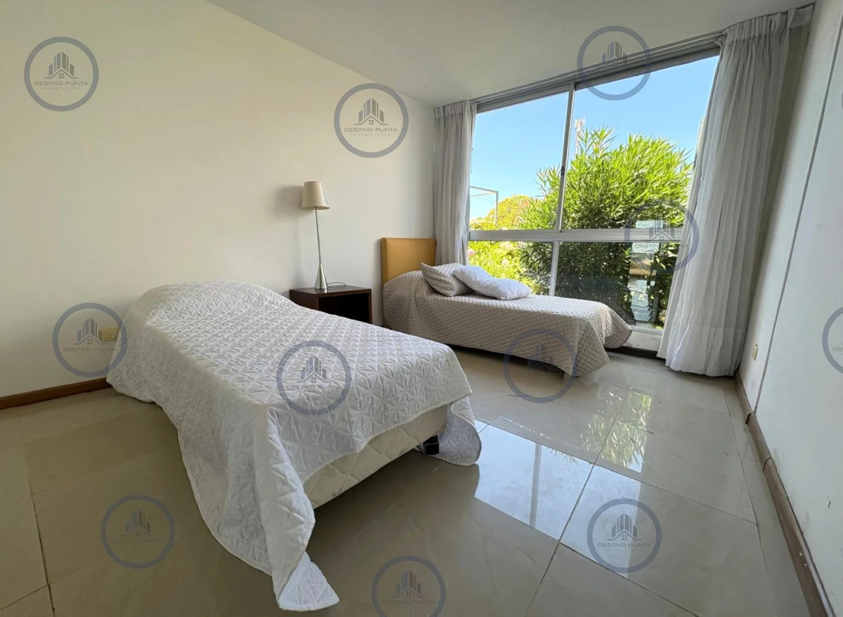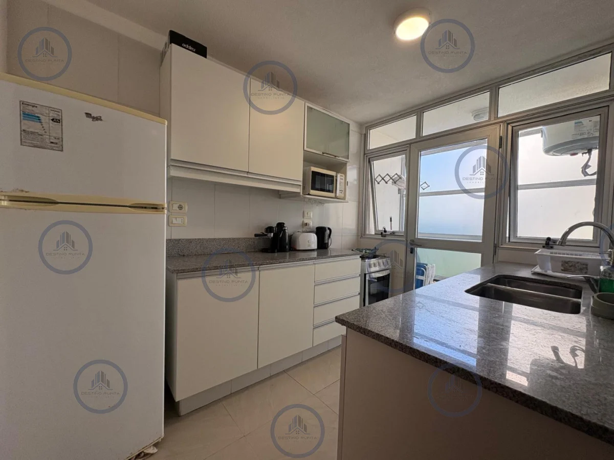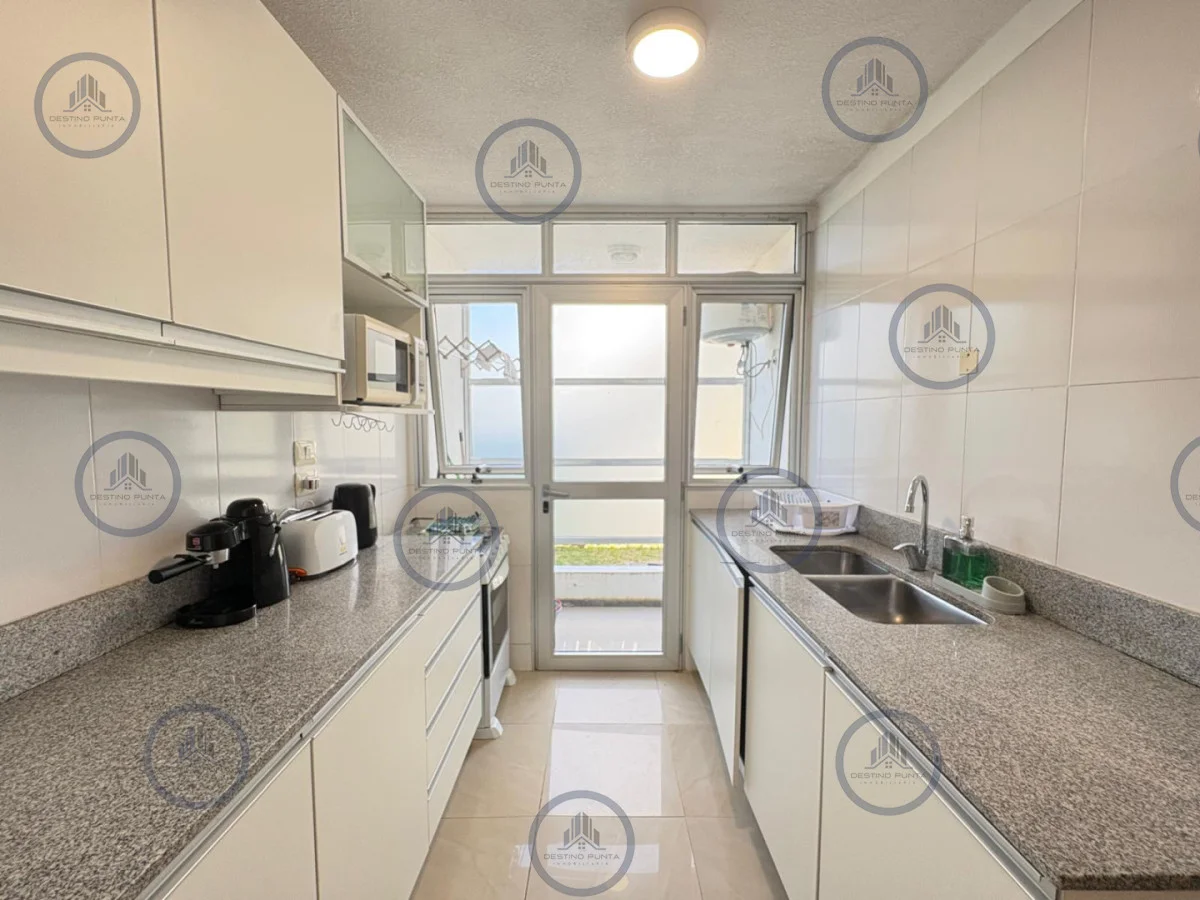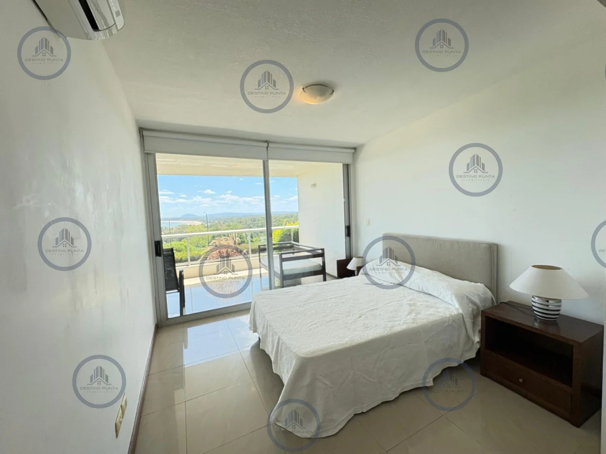 Vista al mar, cerros y al atardecer. Dispone de 2 dormitorios (1 en suite), 2 baños, cocina definida con terraza lavadero, living-comedor, estufa a leña y aire acondicionado en living y dormitorios. Cuenta también con terraza con parrillero, balcón, deck exterior de uso exclusivo, 2 garajes.