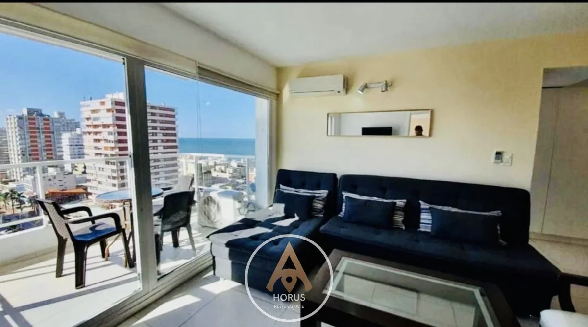 La unidad piso alto con vista brava y mansa posee dos dormitorios con dos baños, el principal en suite. Living comedor con cocina integrada con barra, terraza al frente y garaje en sub suelo.