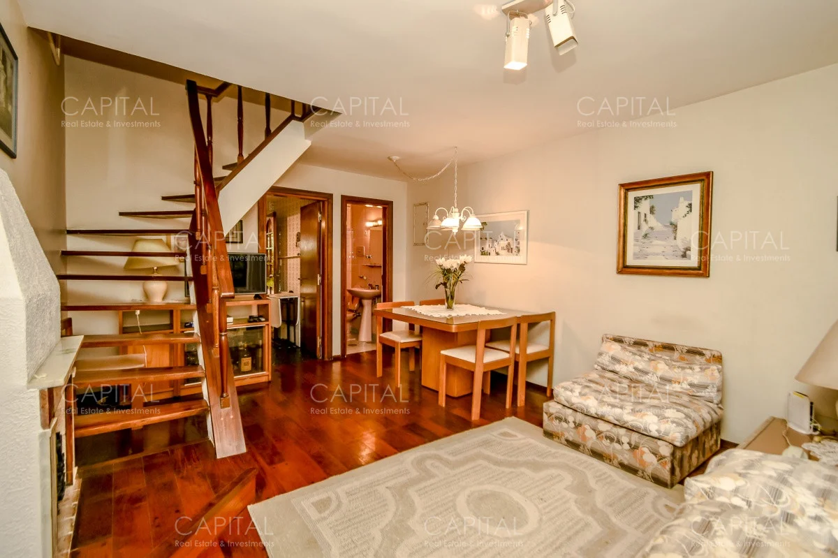 Lindo y cómodo departamento en venta en Playa Mansa, a unas cuatro cuadras del Mar. Dúplex estilo casa en residencia privada pero con la seguridad de un apartamento. Posee living comedor con estufa a leña, baño, cocina con salida al parrillero techado y cochera. Segundo piso cuenta con dos dormitorios amplios y otro baño para ambos cuartos. Bajos gastos comunes. Consulte con nuestros asesores! Referencia Interna : Tera-28844