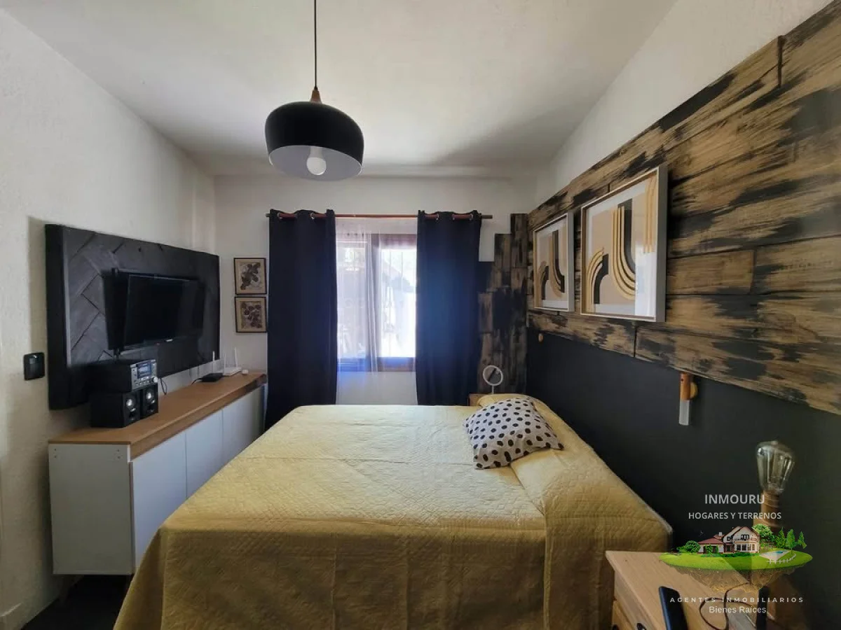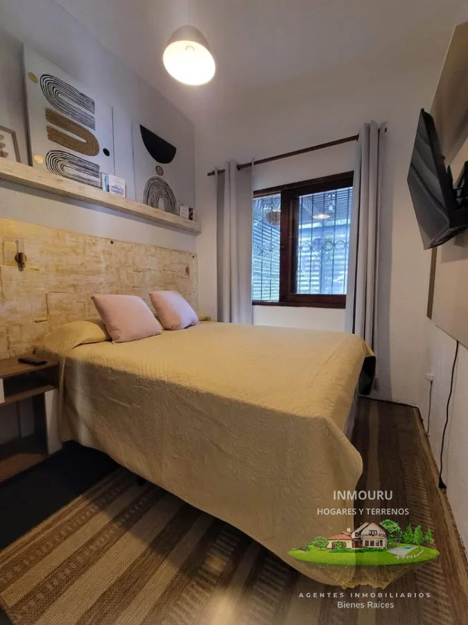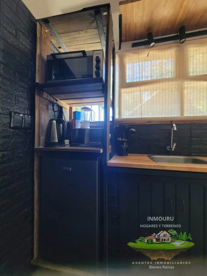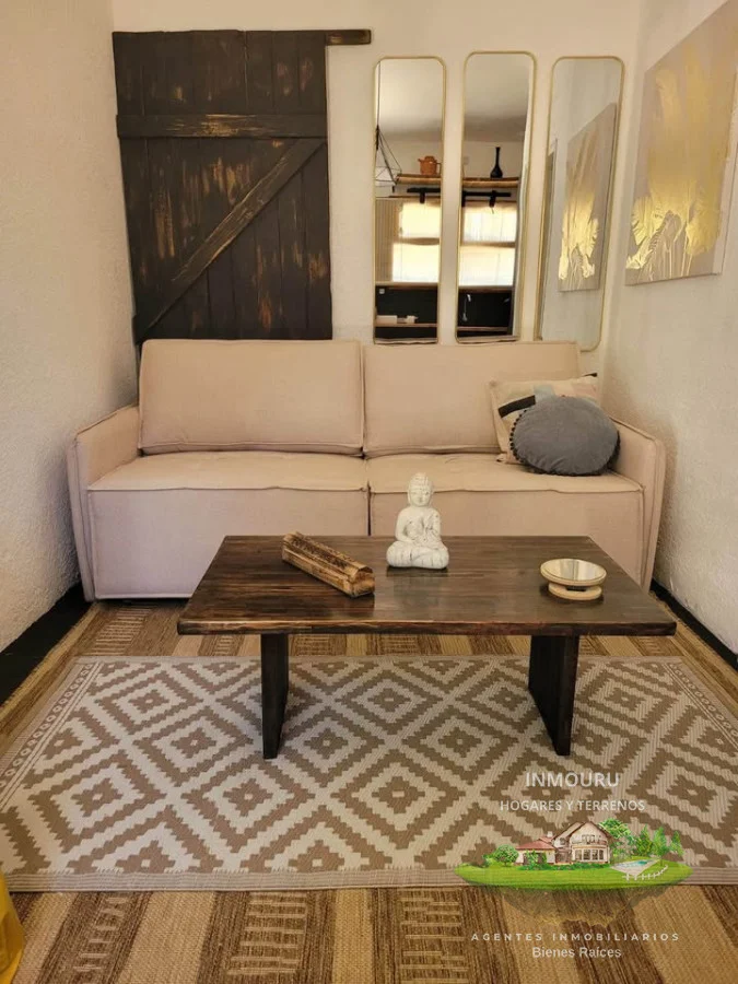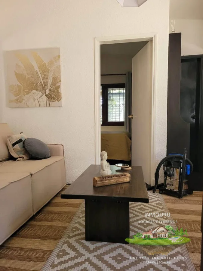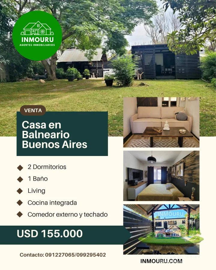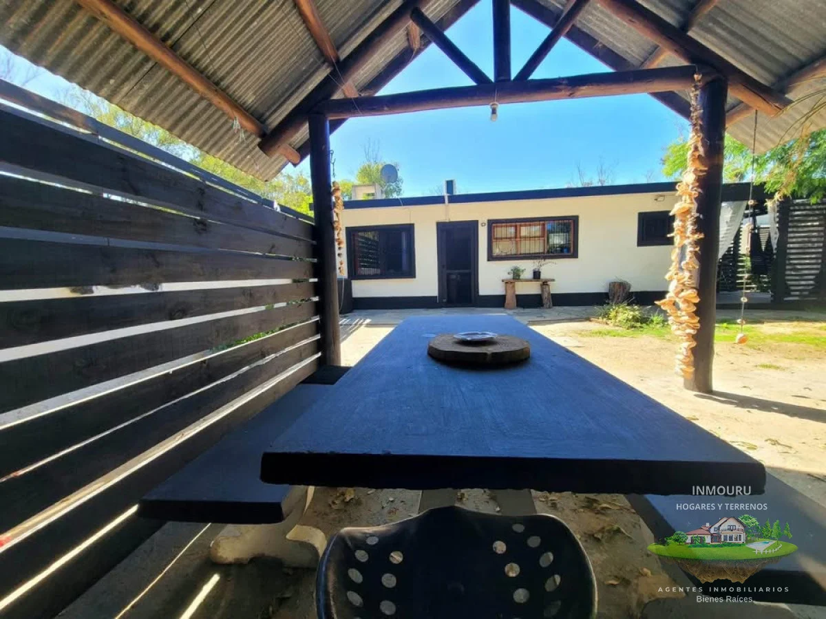 La propiedad cuenta con un terreno de 450 m2, la casa comprende 37 m2 de edificacion, y se distribuyen en living con cocina integrada, 2 dormitorios, y 1 baño. En el exterior junto a la casa se extiende una amplia terraza techada que sirve como comedor, con espacio para un hamaca. Tambien cuenta con un espacio techado para comer, tipo camping.
