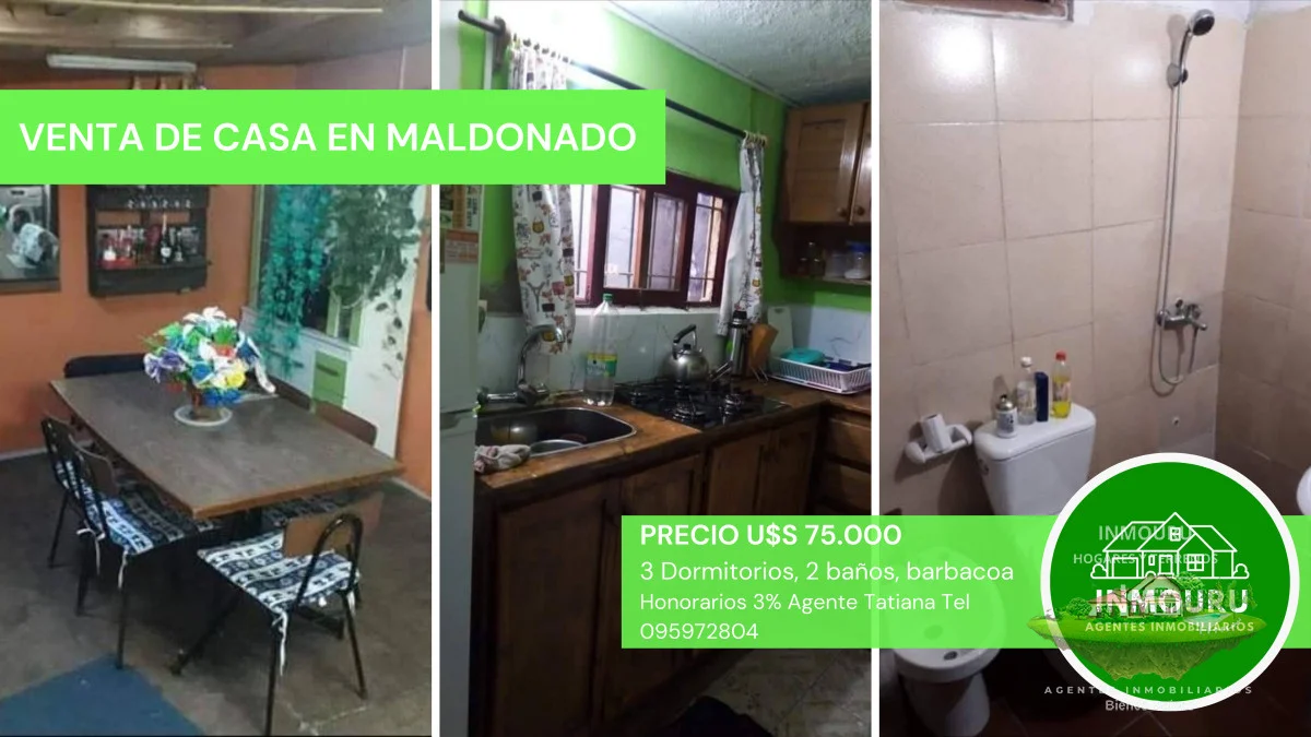 Venta de Casa en Maldonado Nuevo PRECIO U$S 75.000 Cuenta con 3 dormitorios, 2 baños, living comedor, barbacoa cerrada, área de gym. Entrada para 1 auto techado, fondo cerrado. Acepta entrega de U$S 55.000 y el resto en cuotas. Honorarios 3% Agente Tatiana Referencia Interna : Tera-1821