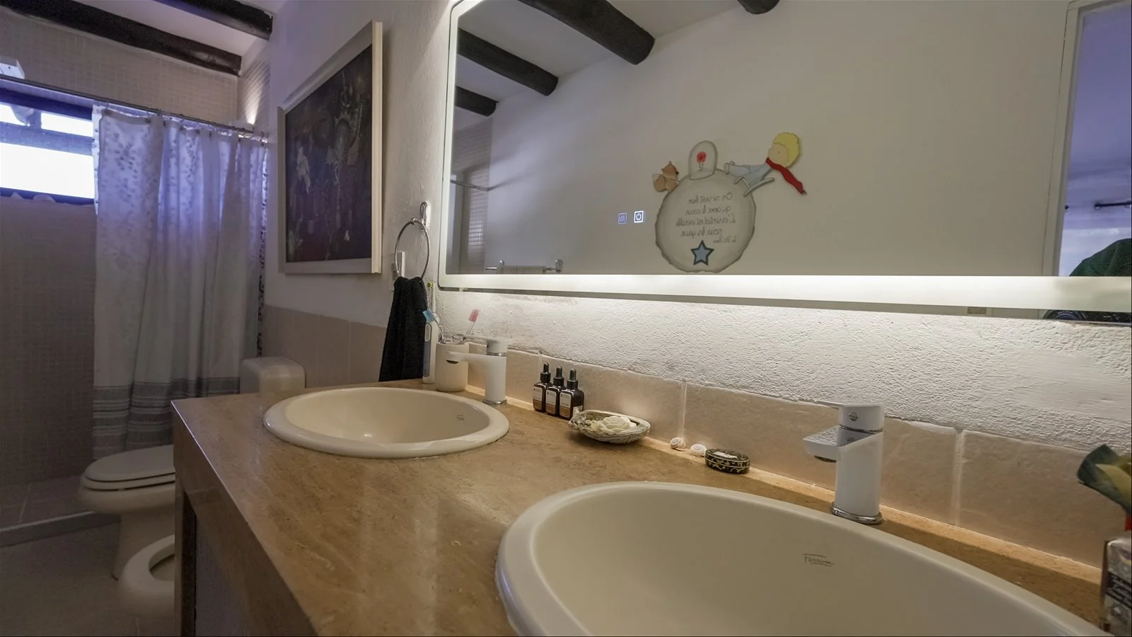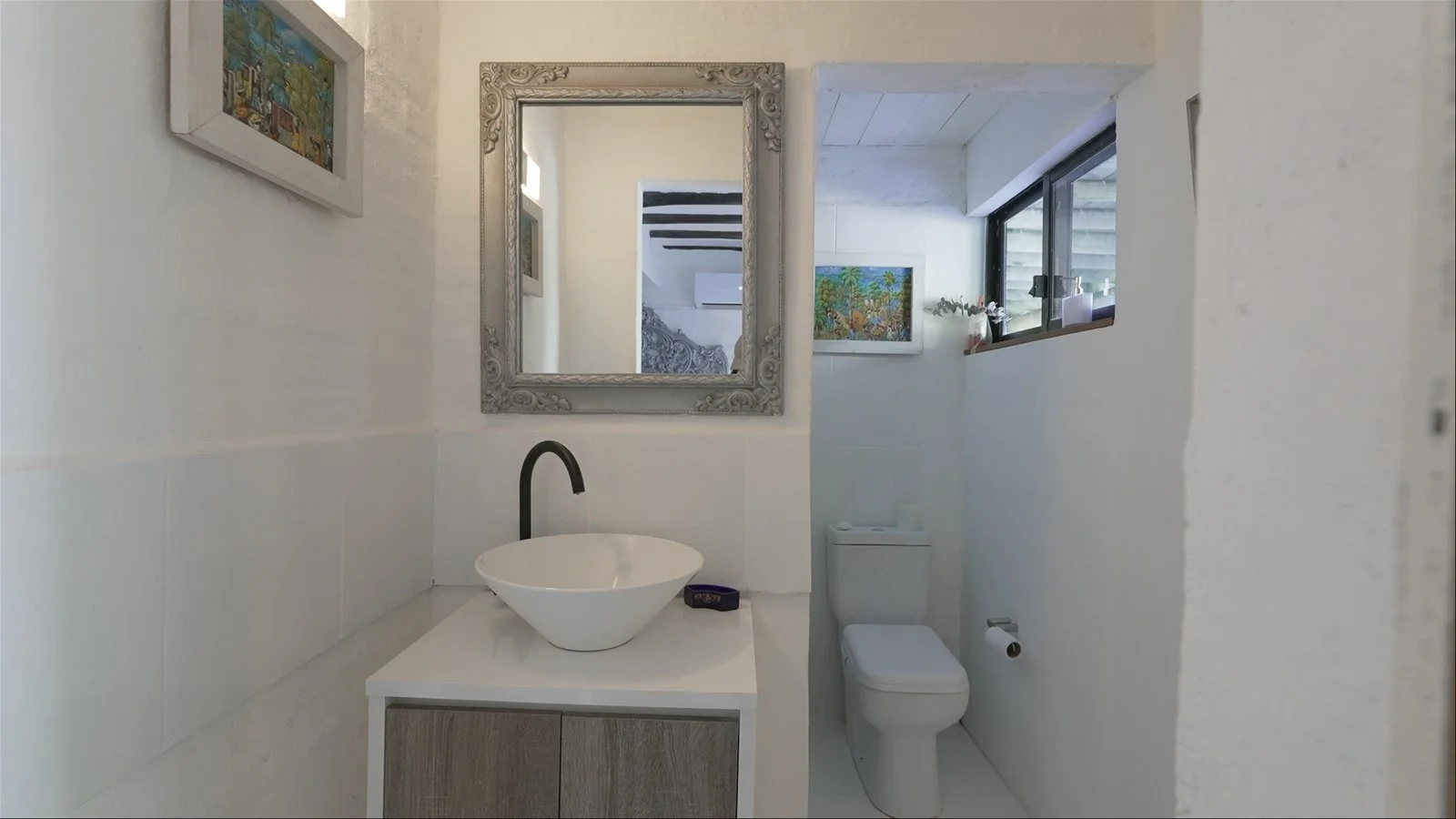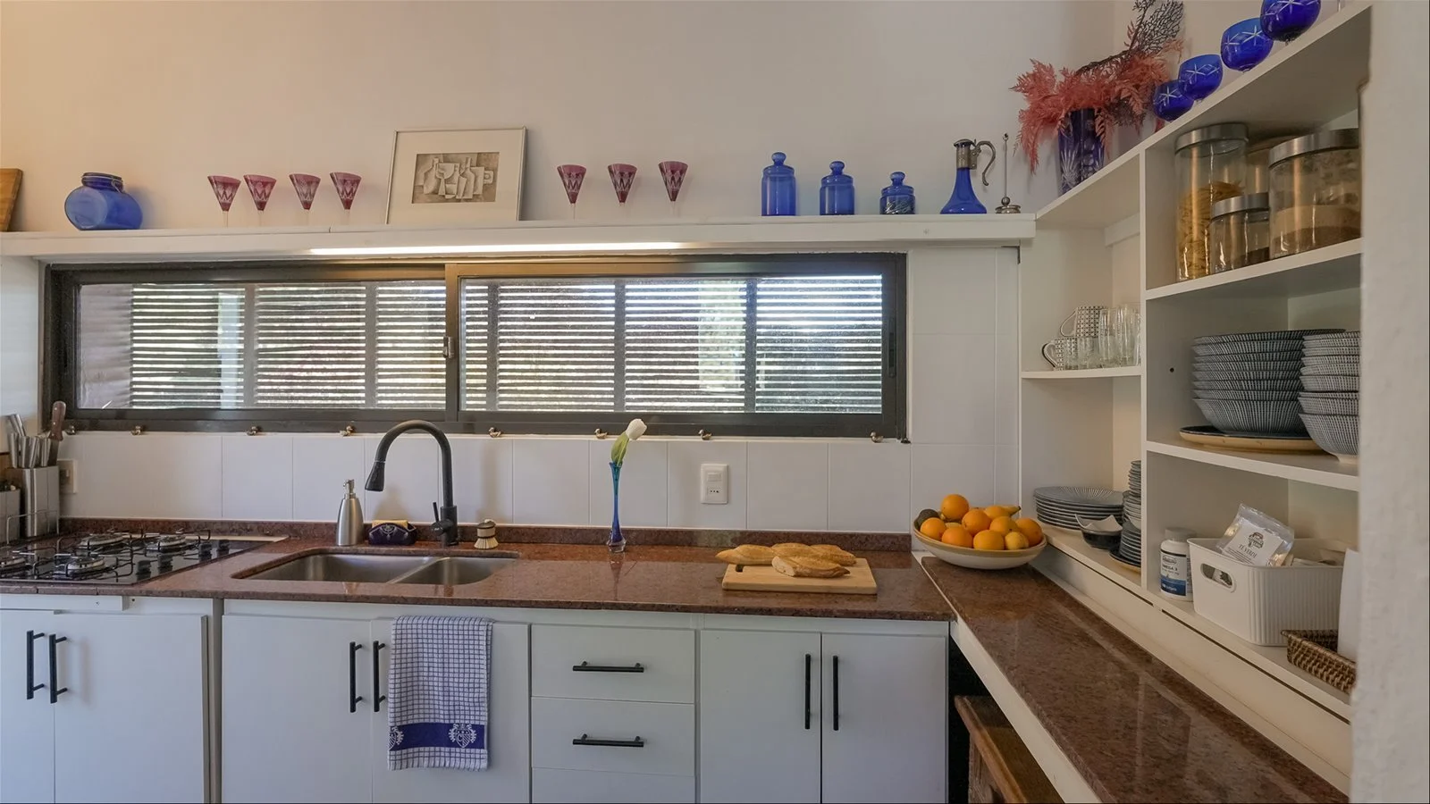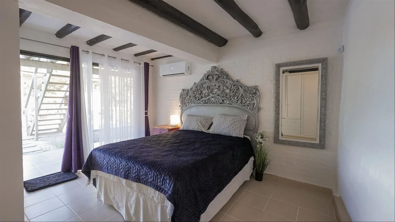 English -The home offers three spacious bedrooms, all with en-suite bathrooms, poolside access, and generous closets. The open living-dining area features air conditioning, art deco furniture, and antique touches. The kitchen includes a new stove/oven and a separate pantry with a modern double-door fridge.