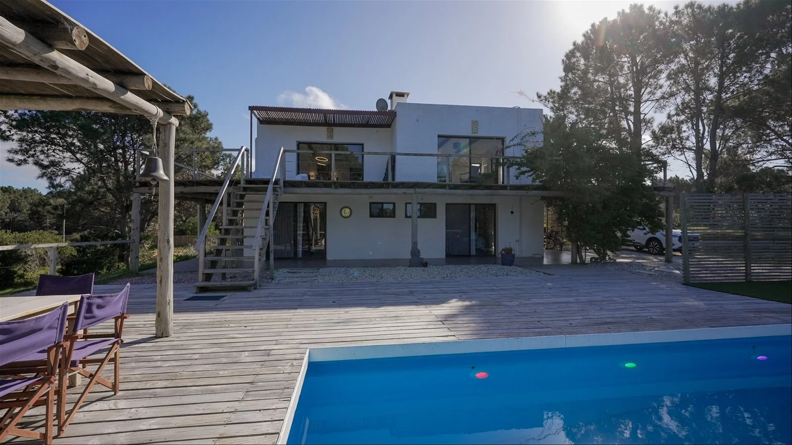 Faro de Luz es una hermosa casa de tres niveles ubicada en la tranquilidad del bosque en Arenas de José Ignacio.. En un terreno privado de 1.250 m², ofrece terraza en dos niveles con parrillero techado, horno de pizza y piscina—ideal para disfrutar al aire libre.