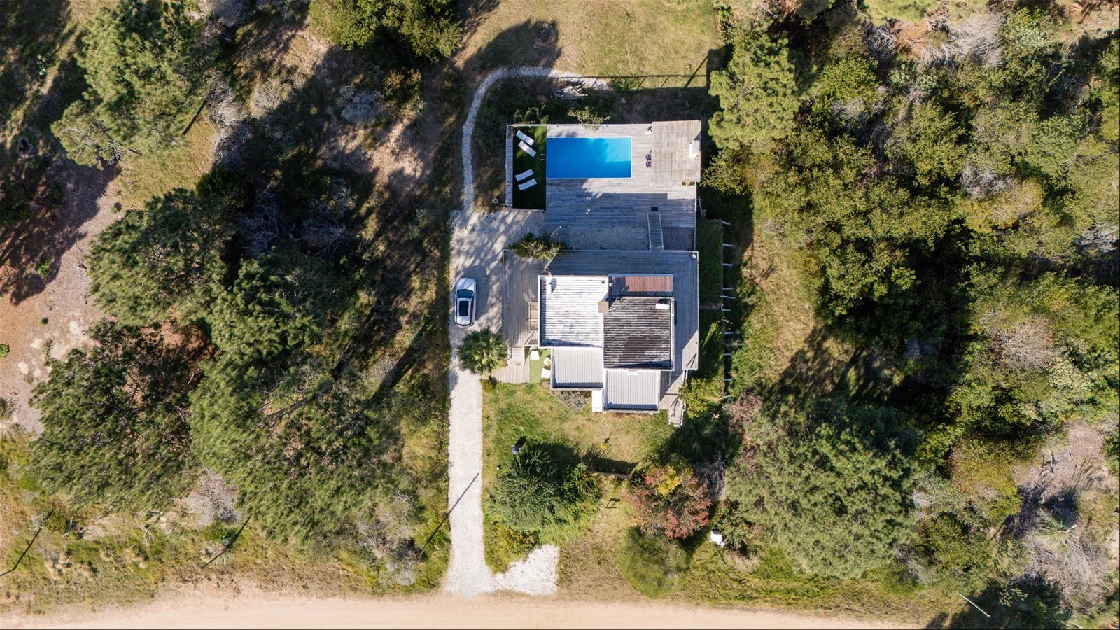 Faro de Luz is a stunning three-level home nestled in the peaceful woods of Faro de José Ignacio. Set on a private 1,250 m² lot, it features a two-level terrace with a covered BBQ area, a brick pizza oven, and a pool—perfect for outdoor living.