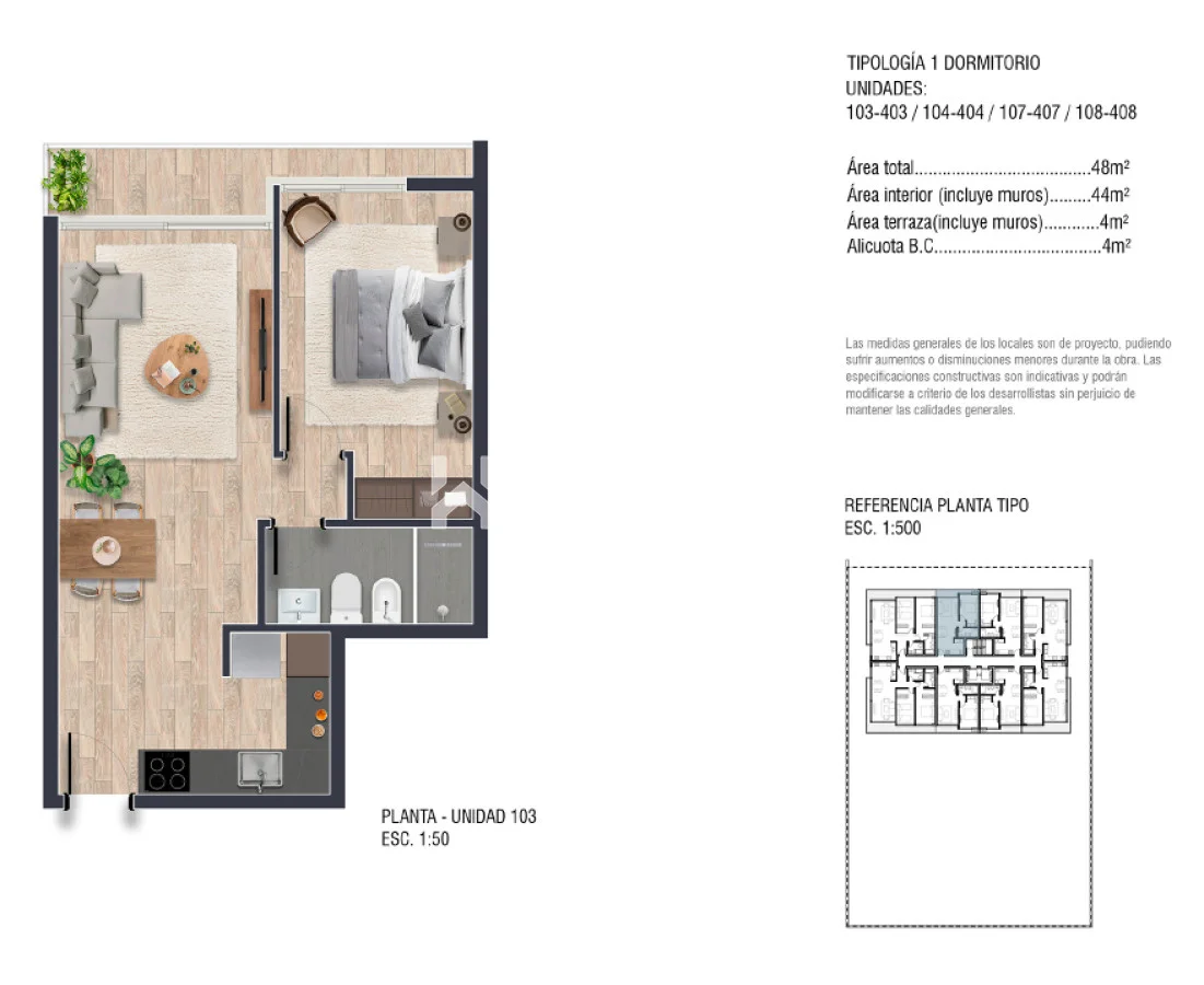 Con una orientación hacia el norte, este apartamento de 48 m2 te ofrece un espacio luminoso y acogedor para relajarte y disfrutar. Cuenta con un dormitorio, un baño y una suite, perfecto para alojar a dos personas. La cama te espera para proporcionarte un descanso reparador después de un día de diversión bajo el sol.