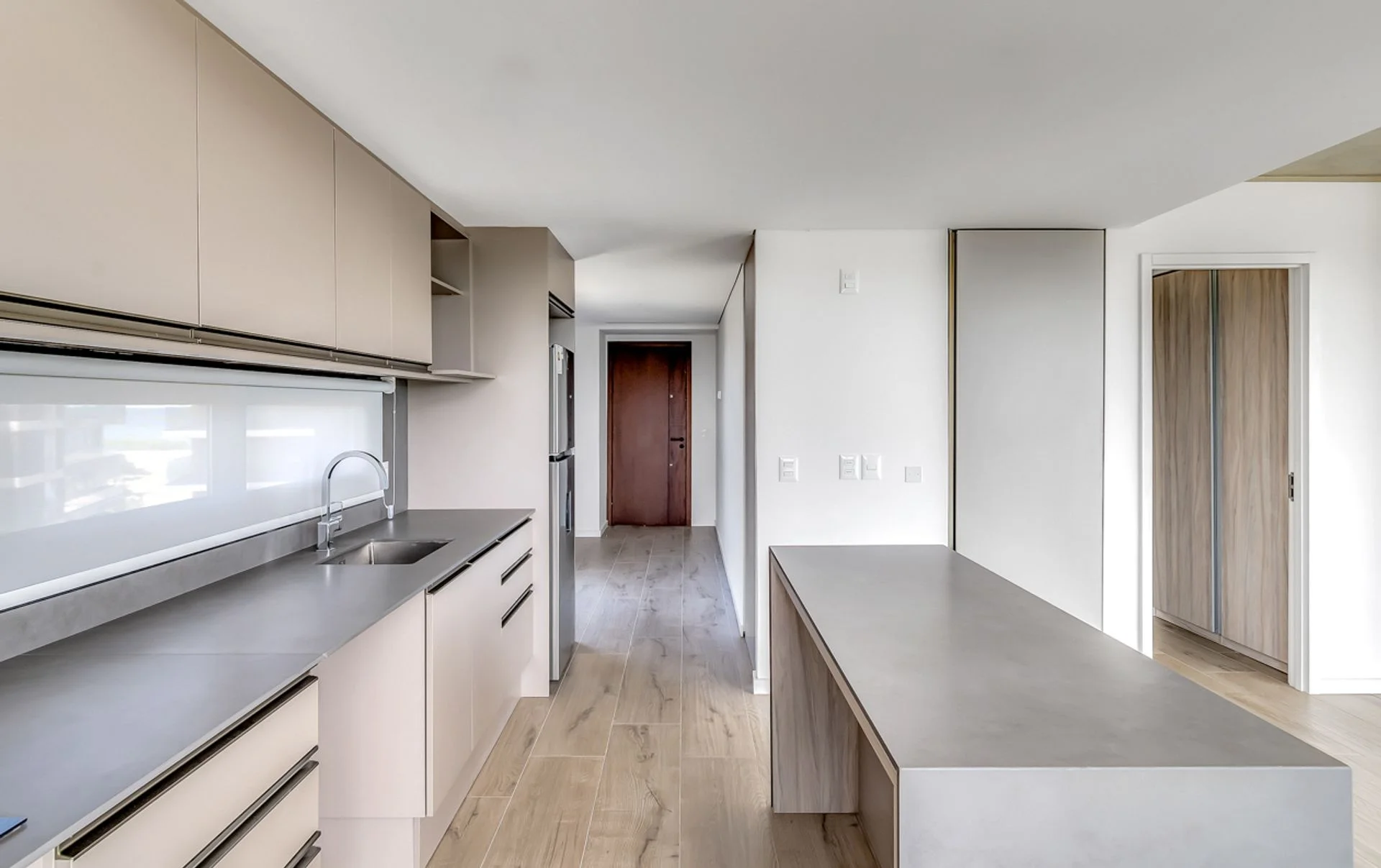 El corazón del hogar es su living comedor con cocina integrada, un espacio que invita a compartir momentos inolvidables. La cocina, equipada con anafe, campana y horno empotrado, combina funcionalidad y estilo moderno. Su isla práctica y elegante conecta con el comedor, creando un ambiente perfecto para recibir invitados. Los muebles de alta calidad, la grifería cromada y la bacha de acero inoxidable son sinónimos de diseño y durabilidad.