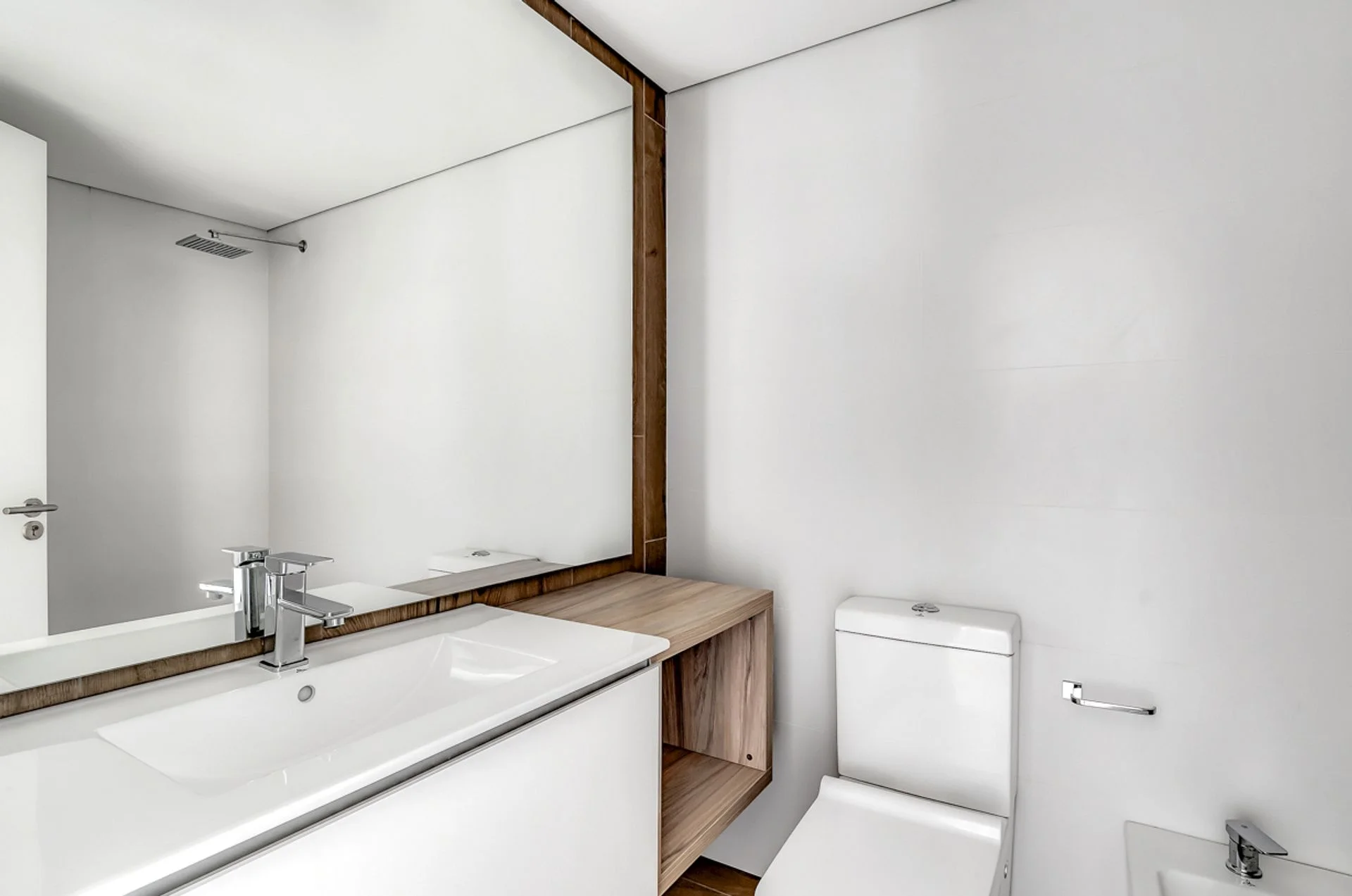 Los dormitorios son refugios de confort, con placares empotrados de puertas corredizas que maximizan el espacio. Uno de ellos, en suite, ofrece un nivel superior de privacidad. Los baños, con muebles de bacha integrada, espejos y grifería cromada, están diseñados para disfrutar del lujo en lo cotidiano.