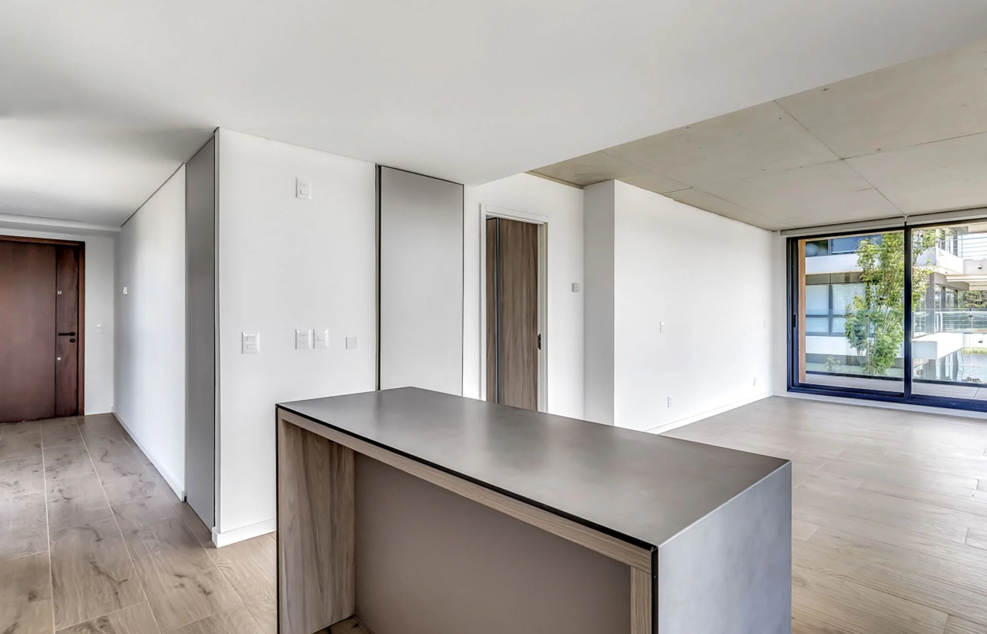 La terraza privada, accesible desde el living y los dormitorios, es el lugar ideal para relajarse, disfrutar de las vistas y preparar asados en su parrillero exclusivo. Los pisos de porcelanato con textura de madera aportan calidez, mientras que las aberturas de aluminio con doble vidrio garantizan confort térmico y acústico. Además, la losa radiante eléctrica en todos los ambientes asegura el clima perfecto durante todo el año.