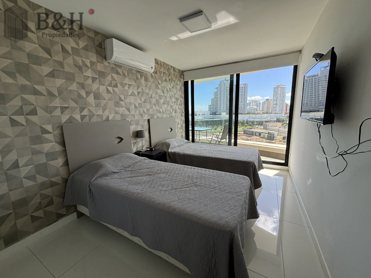 Living comedor a terraza con vista al mar. Dos dormitorios y dos baños. El dormitorio principal es en suite y con vestidor. Aire acondicionado, garage. Edificio nuevo con todos los servicios en la zona más emblemática de Punta!