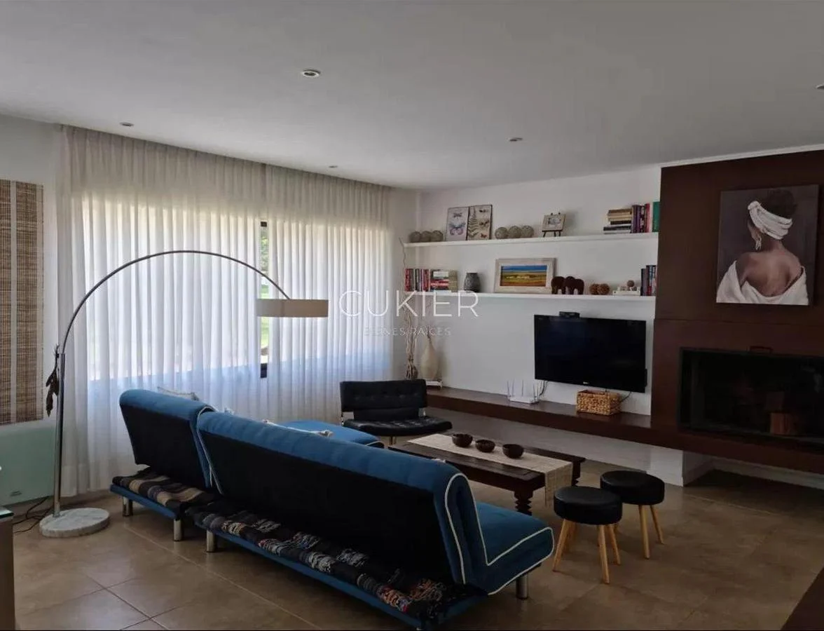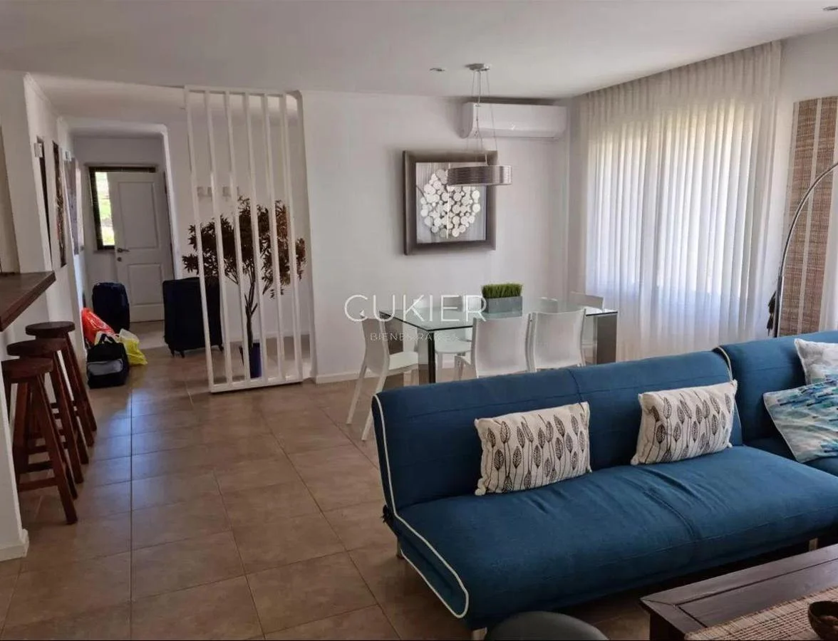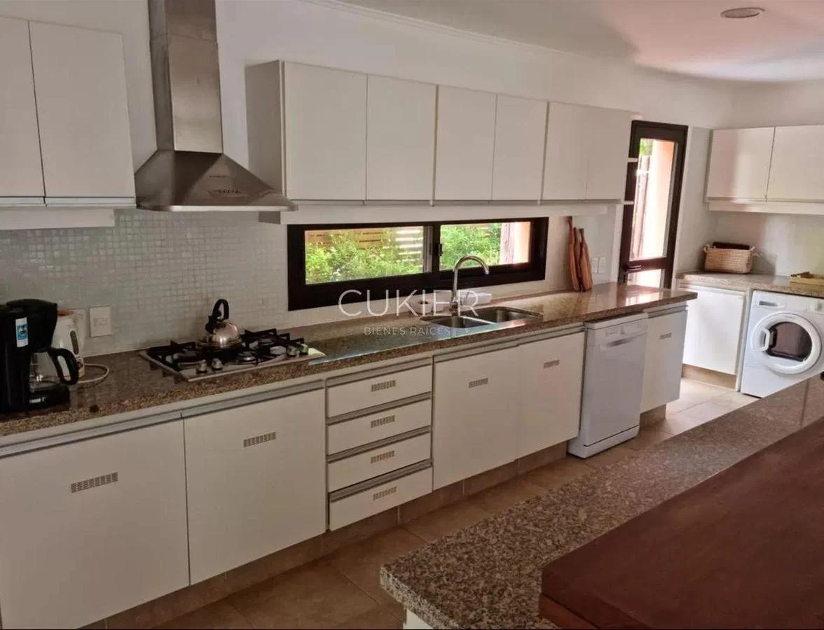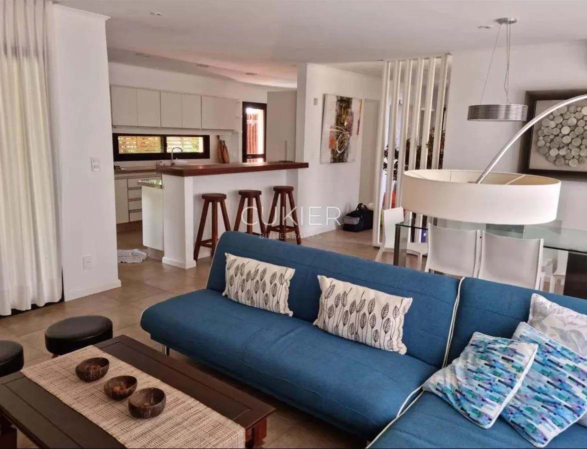 Casa de 200 m2 en dos plantas en barrio privado Pinares. Seguridad 24 hs.Hermoso parque que brinda tranquilidad y disfrute de la naturaleza a 350 m del mar.Cuenta con:2 dormitorios.Dormitorio principal en suite con vestidor.3 baños.Living comedor con estufa a leña.Totalmente equipada.Triple sistema de calefacción, hogar a leña, estufas eléctricas, aires acondicionado en todos los ambientes.Cocina integrada.Parrillero con pergola.Lavadero.Cochera.Servicios:El Barrio cuenta con seguridad 24 hs, piscina exterior, gym, sala de fiestas, cancha de tenis.Alquiler anual usd 2.500 mensualesVenta usd 450.000
