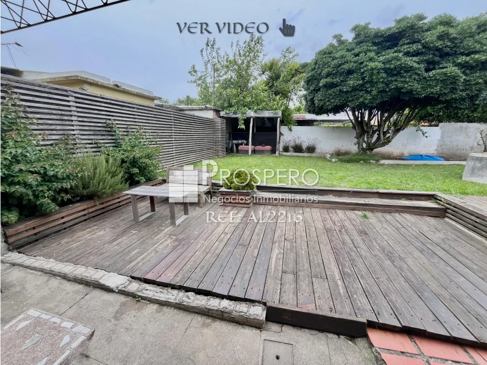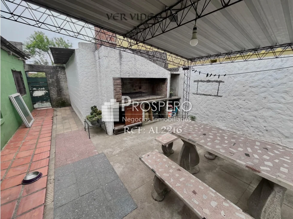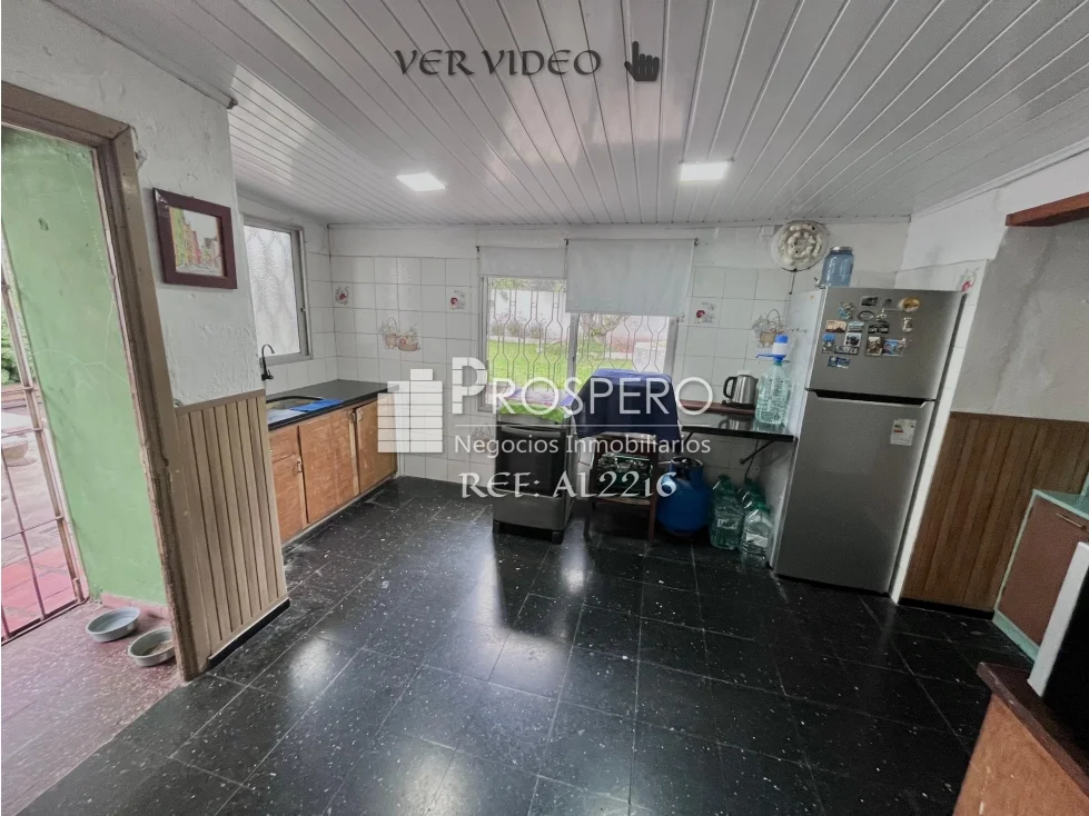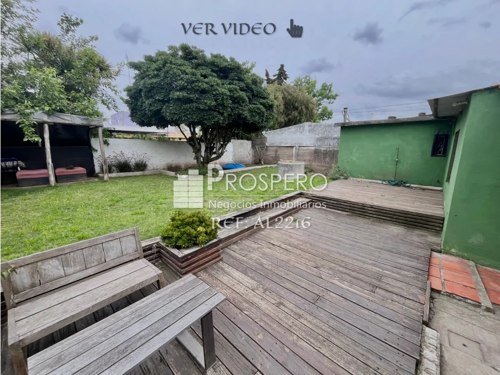 Hall de entrada, amplio living-comedor, cocina definida equipada con muebles bajo mesada, con salida a un gran fondo verde con parrillero techado.