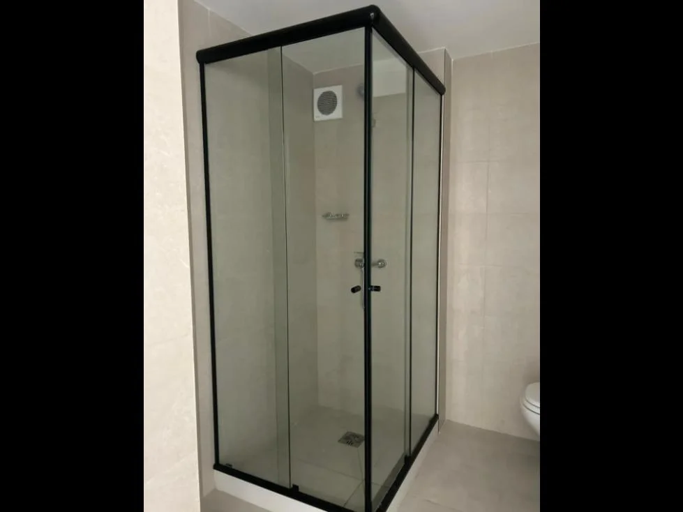 Mampara y Calefón, placard, anafe, horno y heladera, a/a, campana