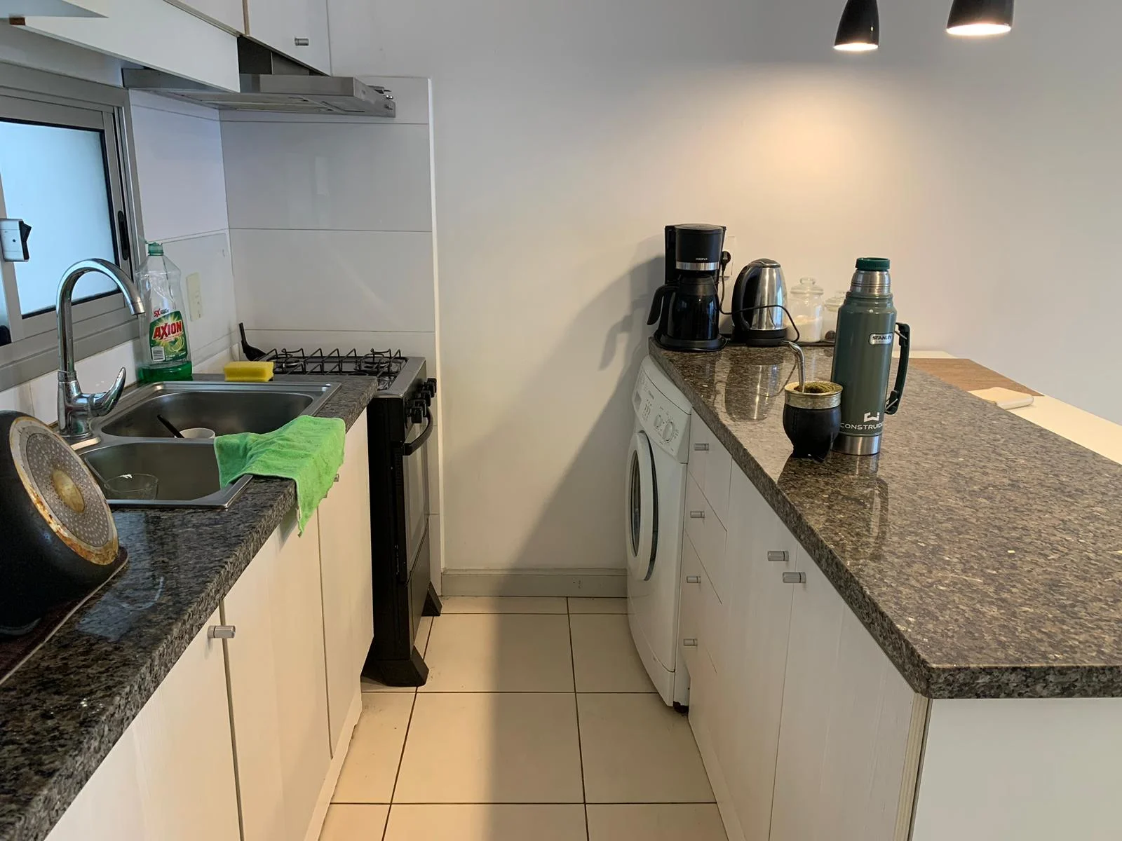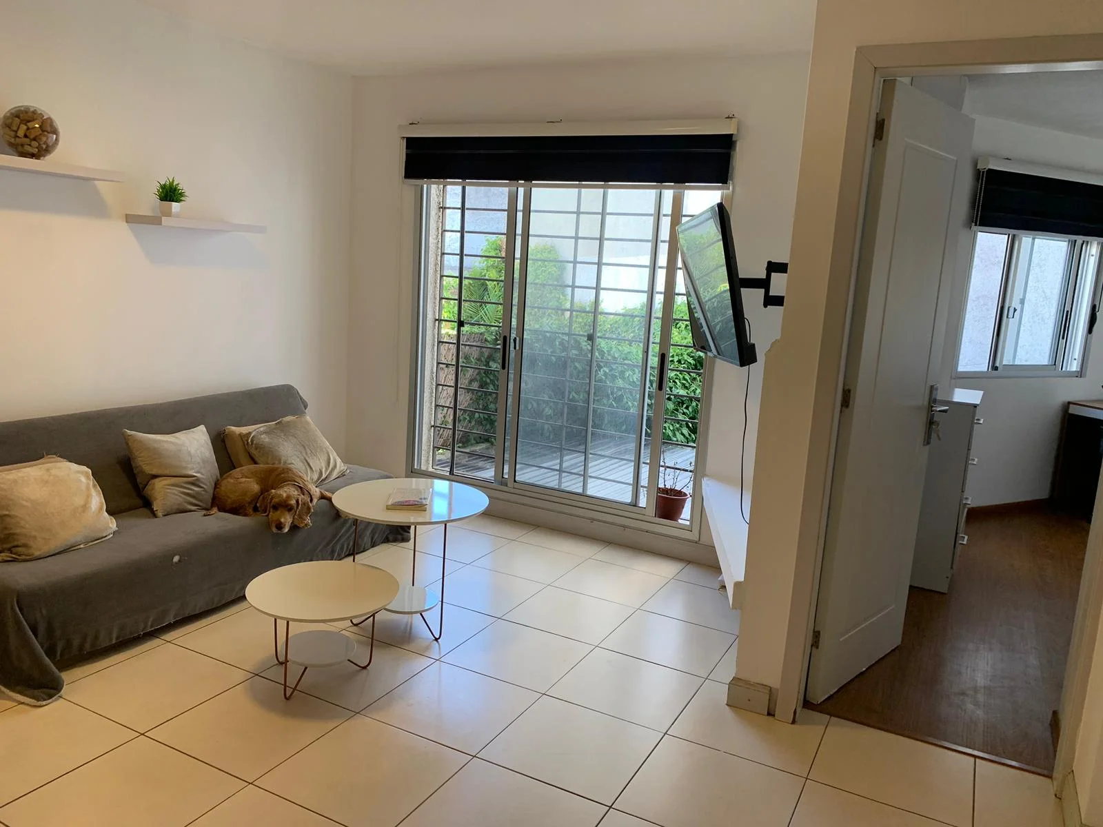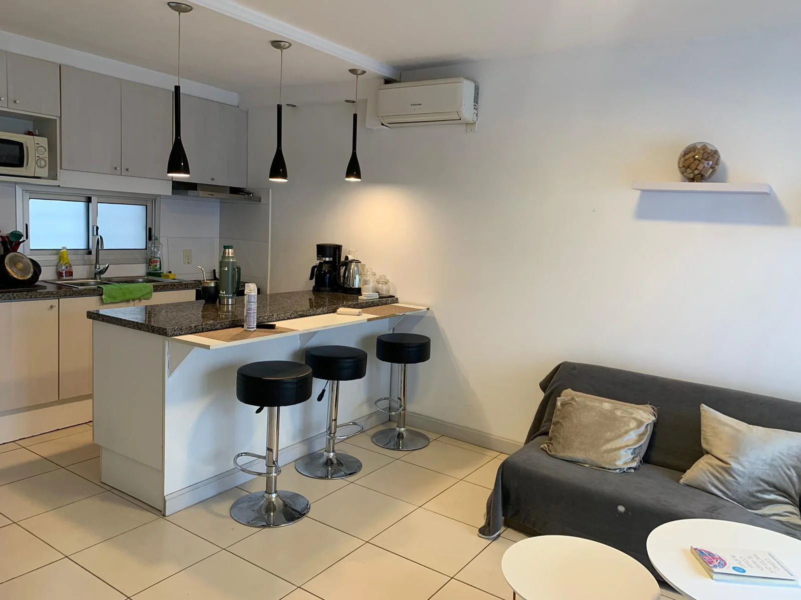 cocina funcional, se integra armoniosamente con el luminoso living comedor, creando un espacio social abierto y acogedor. Equipada con una barra desayunador y 3 butacas, es perfecta para disfrutar de comidas rápidas o reuniones informales. Un amplio ventanal inunda el ambiente principal con luz natural, realzando la sensación de amplitud. ( cortinas rollers día y noche) .El baño, completo y en excelente estado, complementa las comodidades interiores.