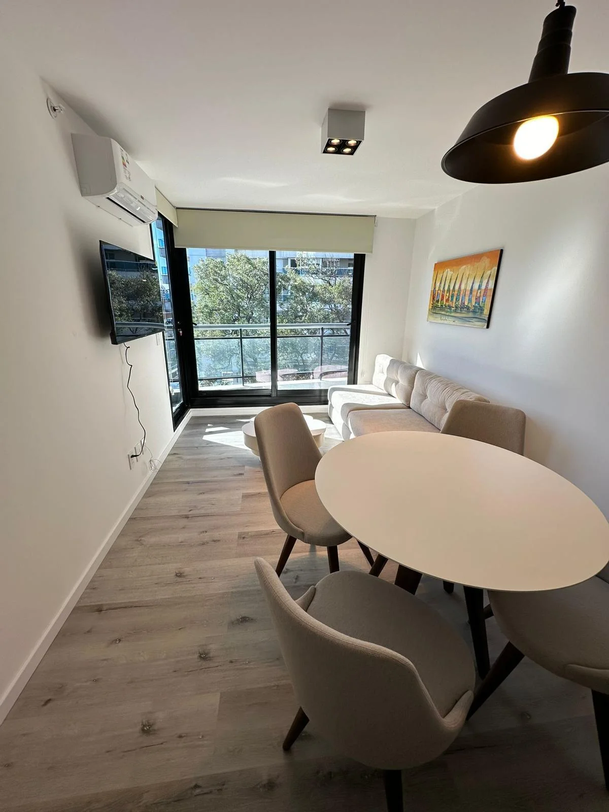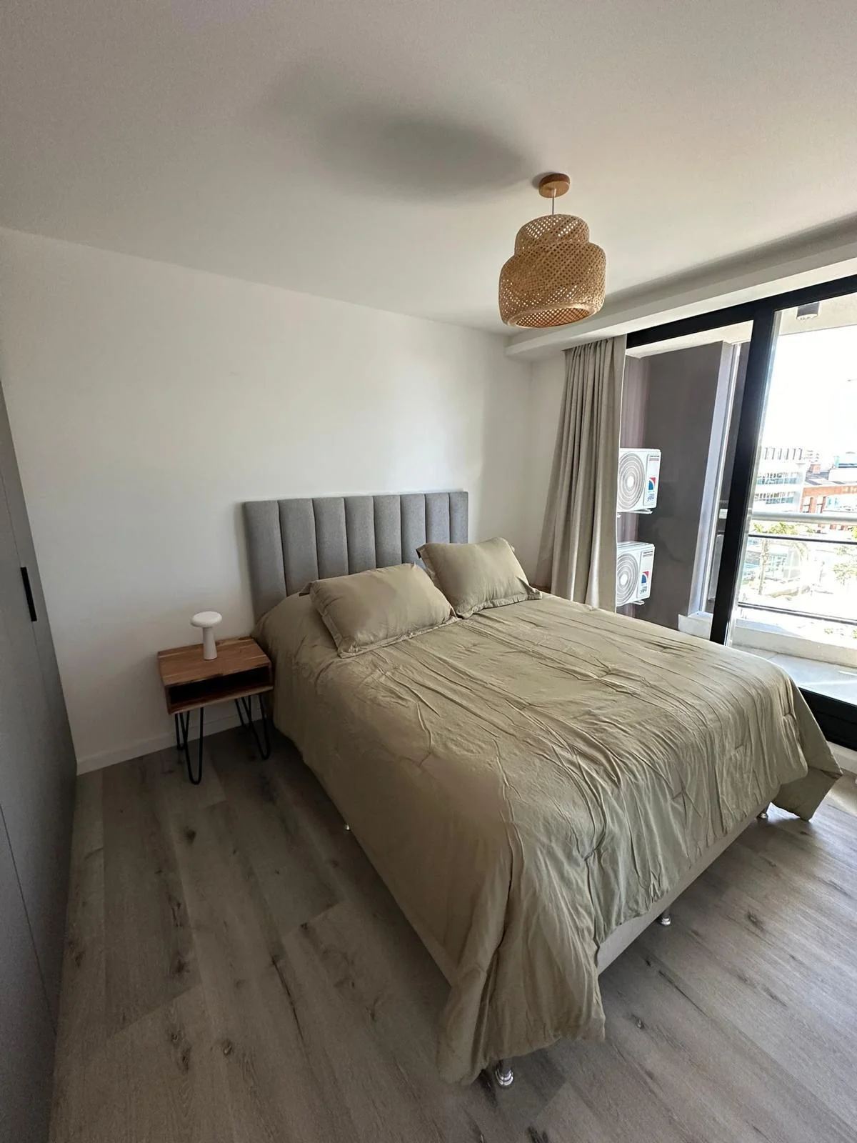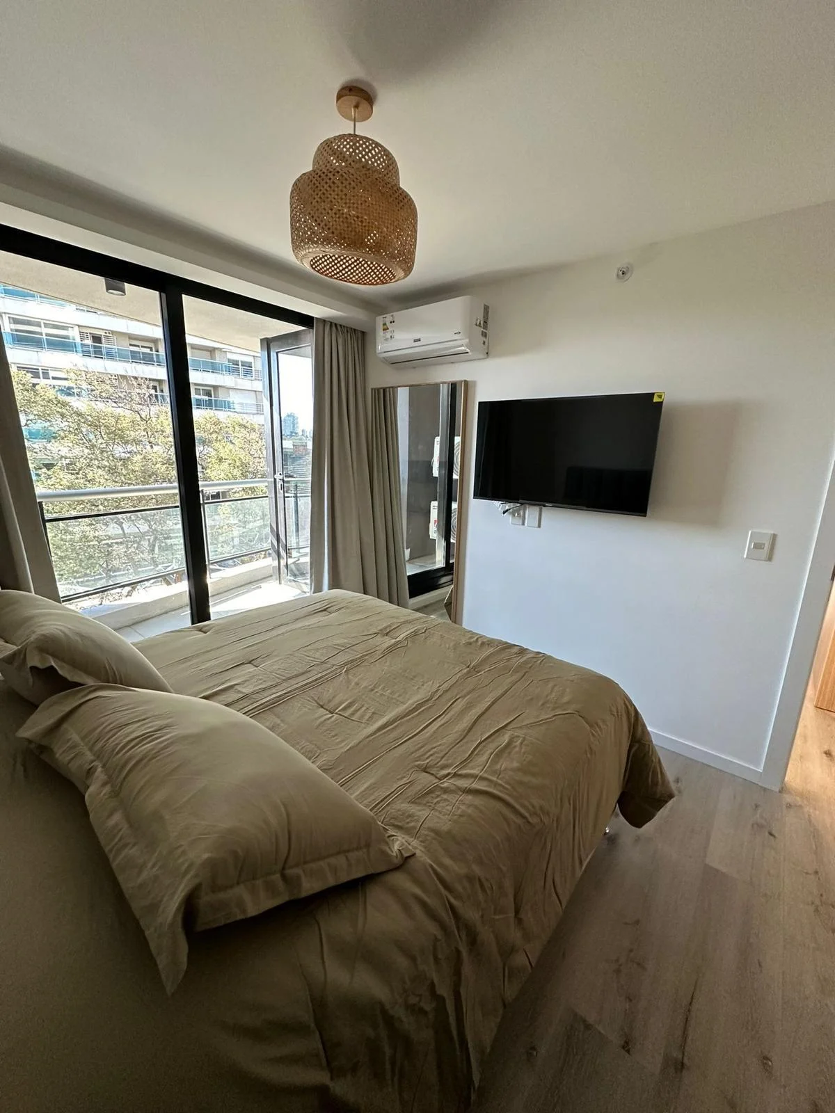 Este excepcional apartamento de 1 dormitorio ofrece una experiencia de vida moderna y confortable. El dormitorio principal cuenta con una cómoda cama de 2 plazas, un amplio placar para almacenamiento y aire acondicionado para su confort. El luminoso living comedor, también equipado con aire acondicionado, crea un ambiente acogedor para relajarse o entretener. La cocina integrada está totalmente equipada con electrodomésticos de última generación, lista para sus creaciones culinarias. Disfrute de su entretenimiento favorito con los dos televisores de 50 pulgadas, uno en el dormitorio y otro en el living. El balcón al frente, con orientación este, es perfecto para disfrutar de las mañanas soleadas y las vistas urbanas. Ubicado en el piso 4, este apartamento garantiza tranquilidad y privacidad.