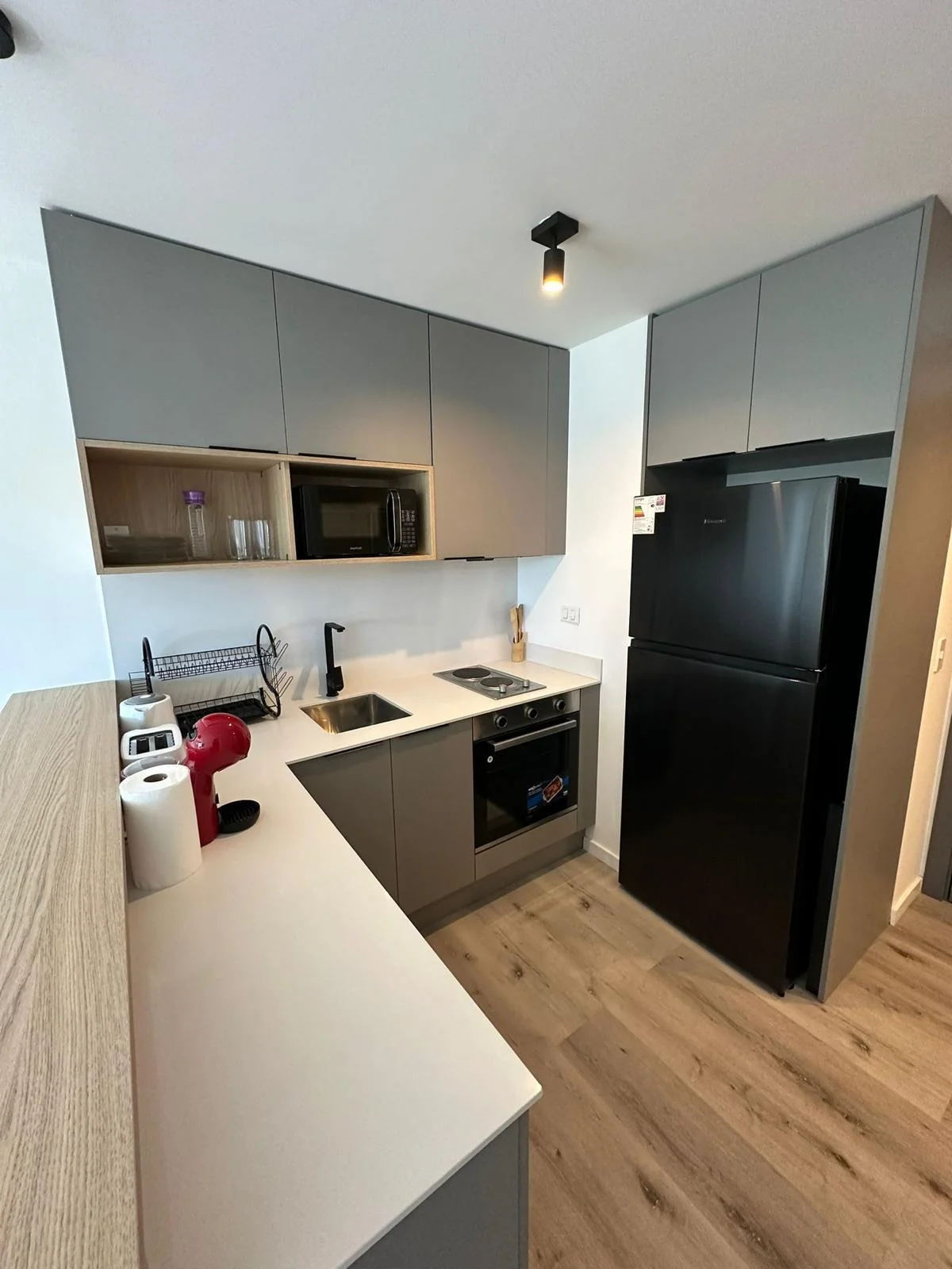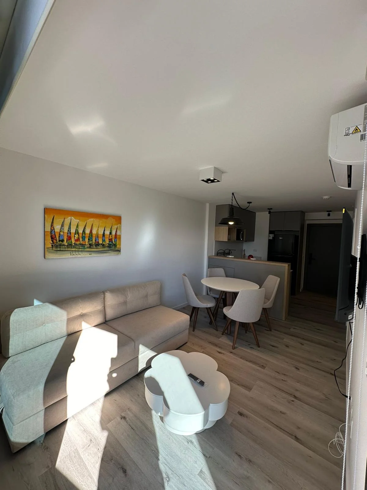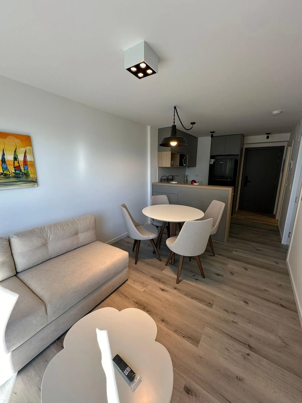Este excepcional apartamento de 1 dormitorio ofrece una experiencia de vida moderna y confortable. El dormitorio principal cuenta con una cómoda cama de 2 plazas, un amplio placar para almacenamiento y aire acondicionado para su confort. El luminoso living comedor, también equipado con aire acondicionado, crea un ambiente acogedor para relajarse o entretener. La cocina integrada está totalmente equipada con electrodomésticos de última generación, lista para sus creaciones culinarias. Disfrute de su entretenimiento favorito con los dos televisores de 50 pulgadas, uno en el dormitorio y otro en el living. El balcón al frente, con orientación este, es perfecto para disfrutar de las mañanas soleadas y las vistas urbanas. Ubicado en el piso 4, este apartamento garantiza tranquilidad y privacidad.
