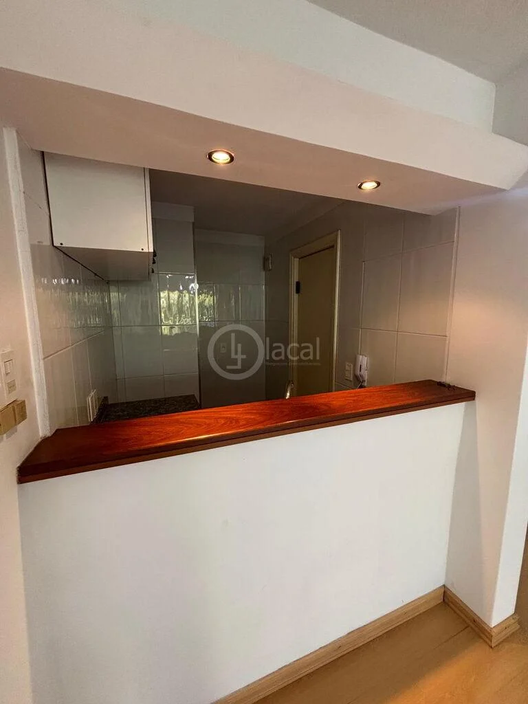 Cocina semi integrada con barra, placares