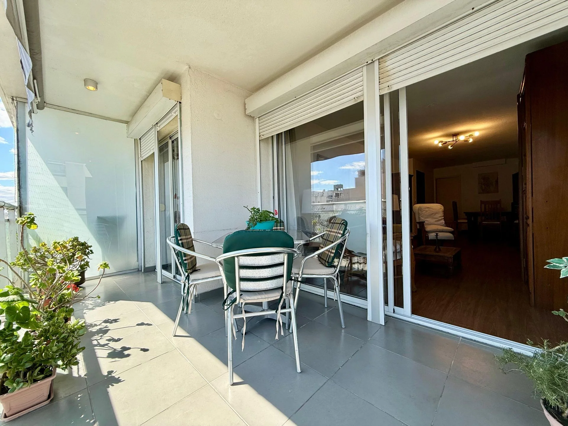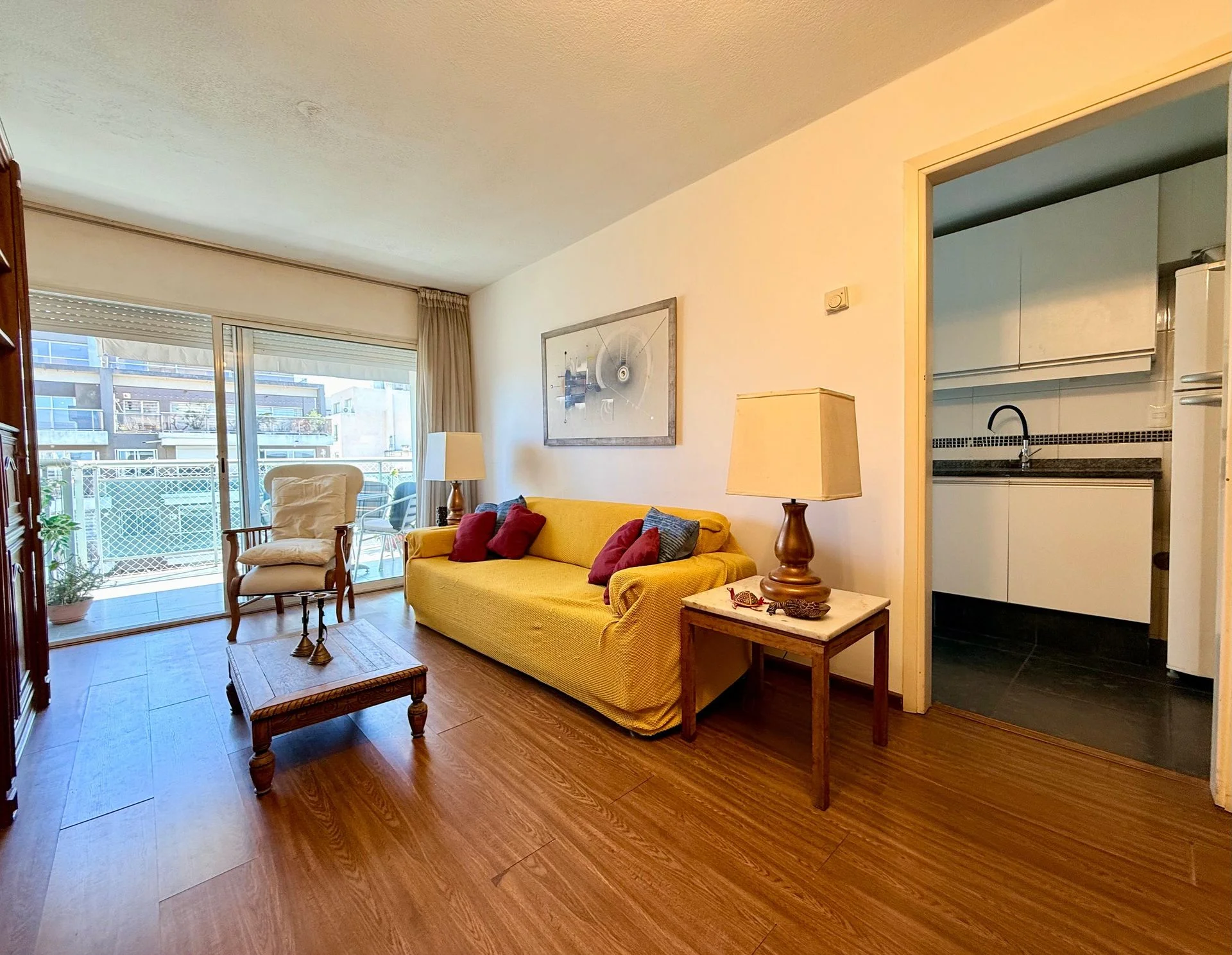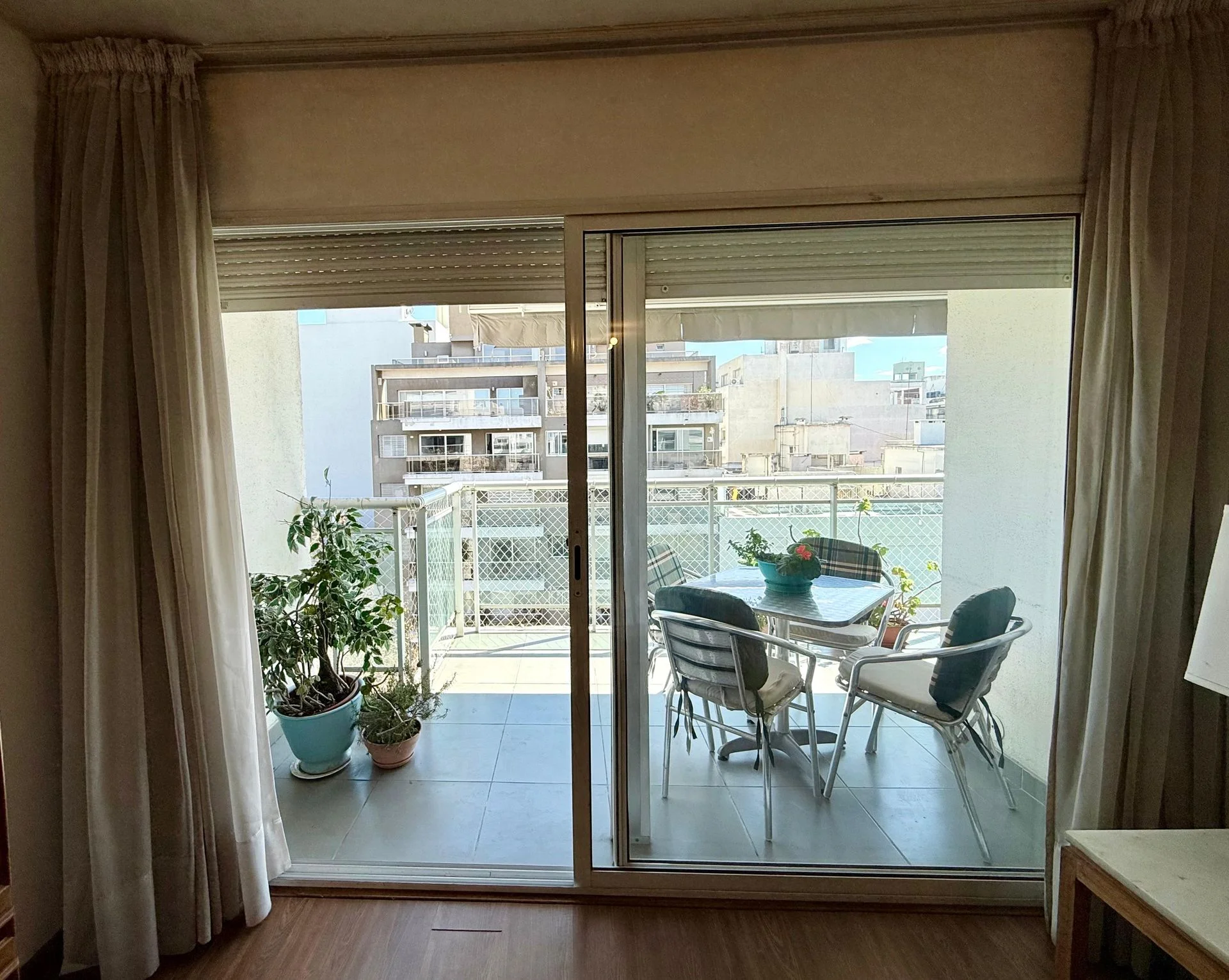 Living comedor con salida a cómodo balcón al frente, con vista despejada hacia el parque en el lateral.