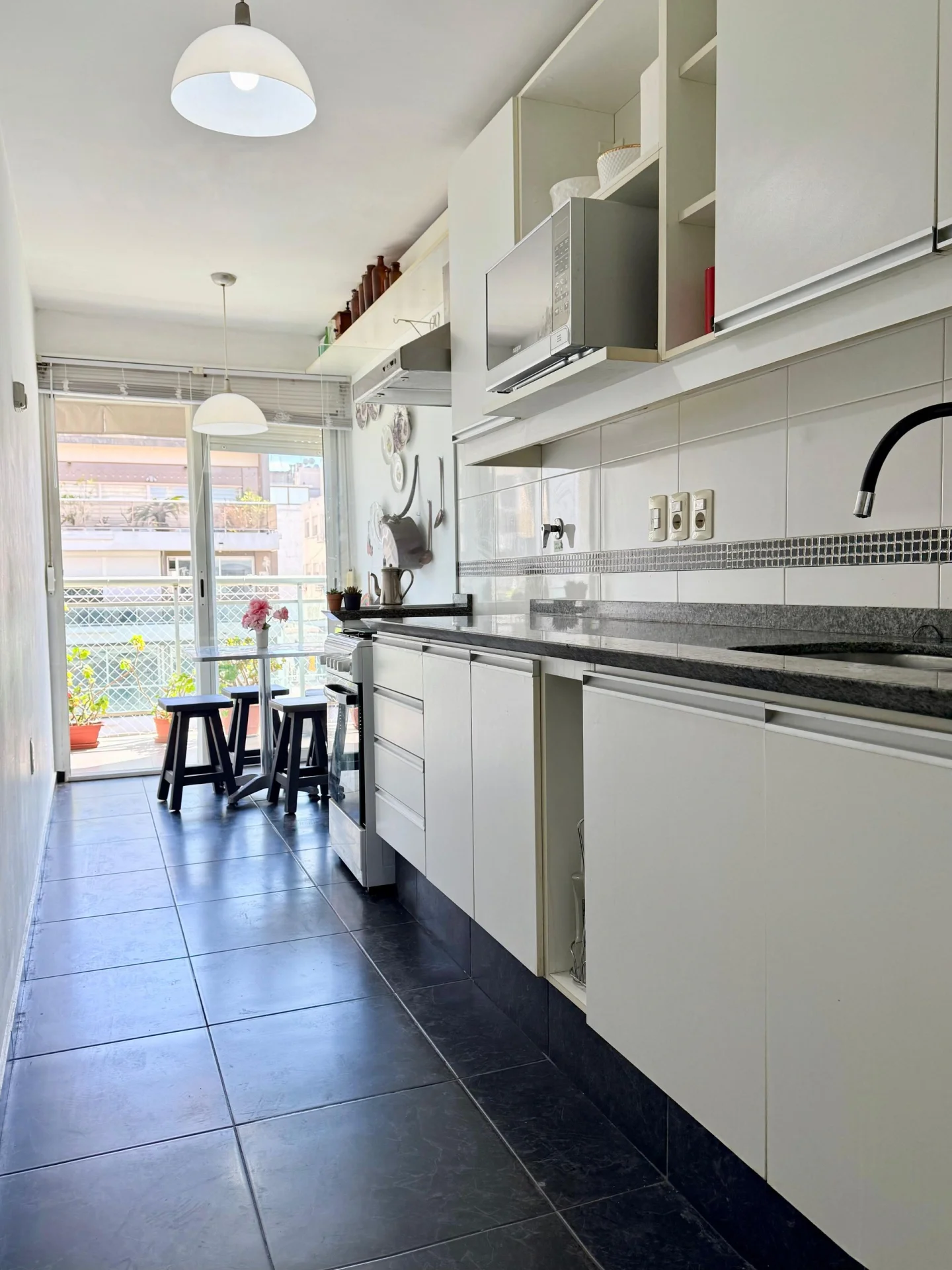 Cocina definida de muy buen tamaño con desayunador y salida a mismo balcón.