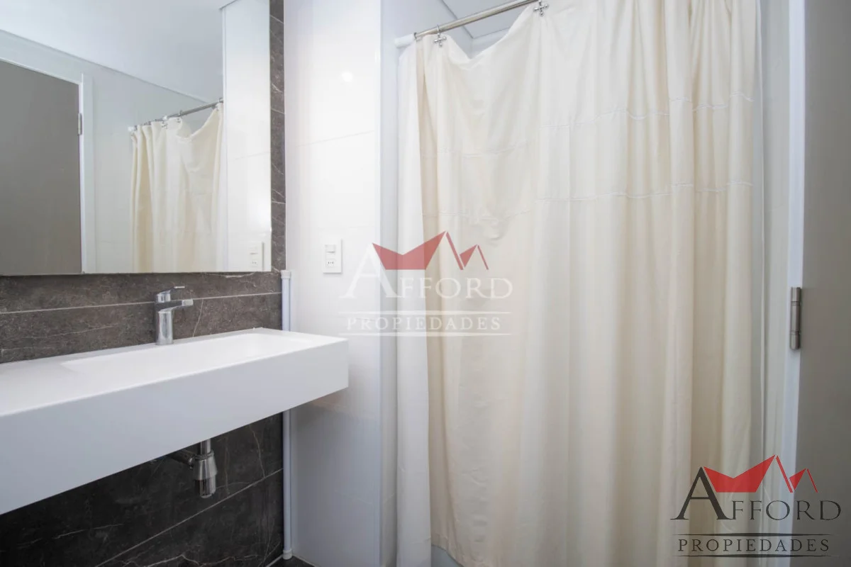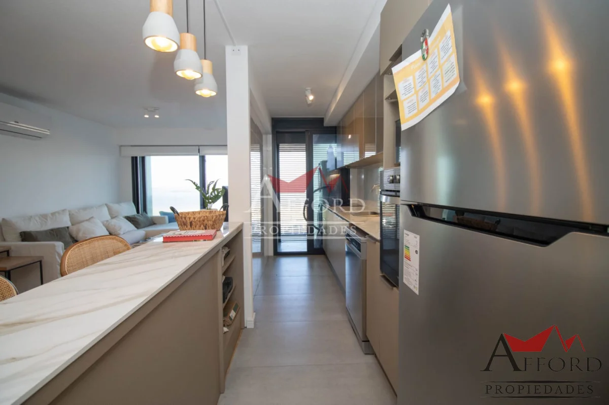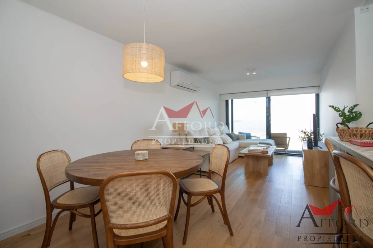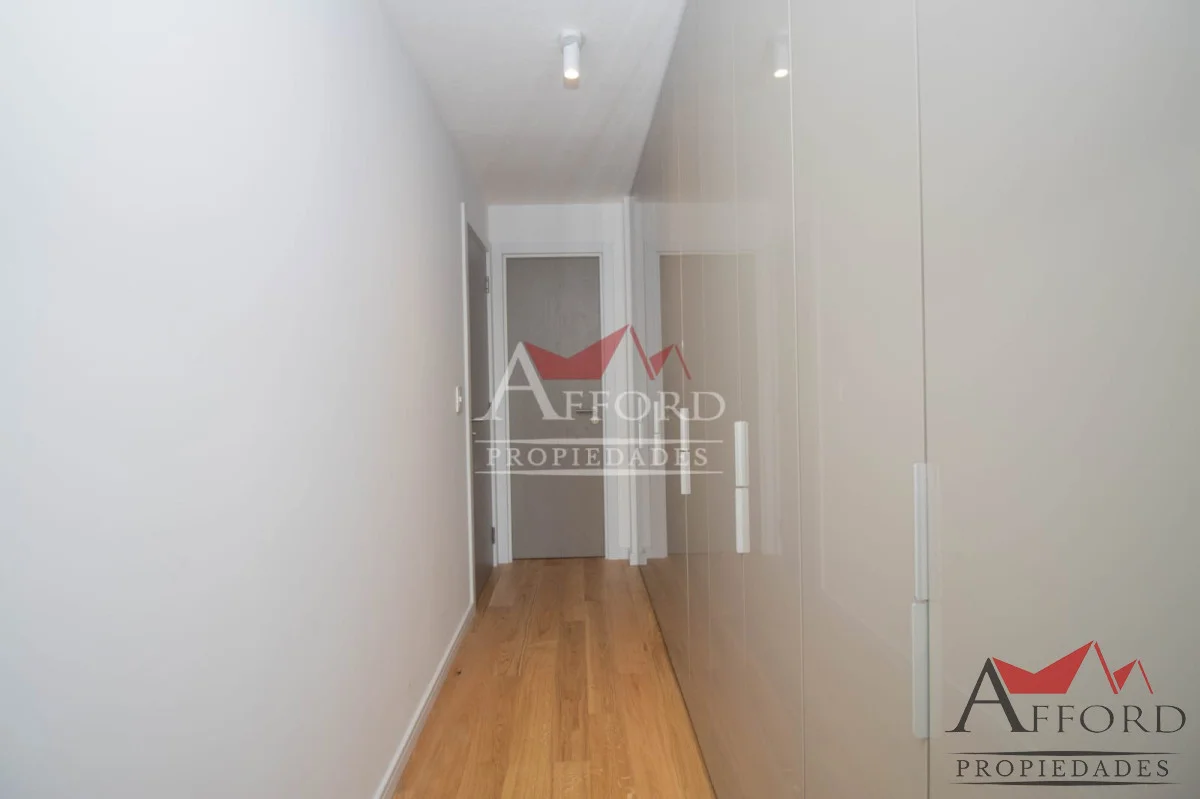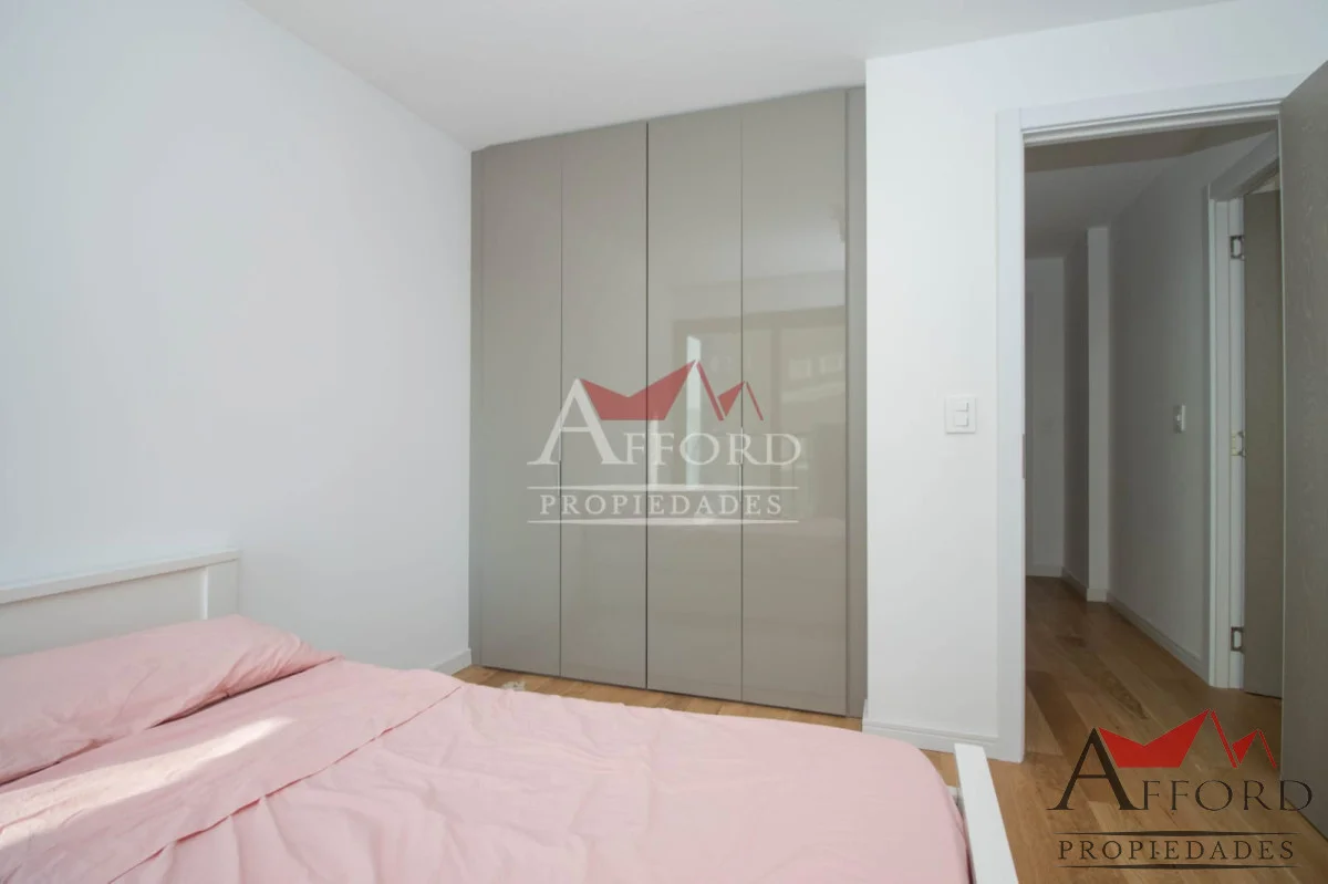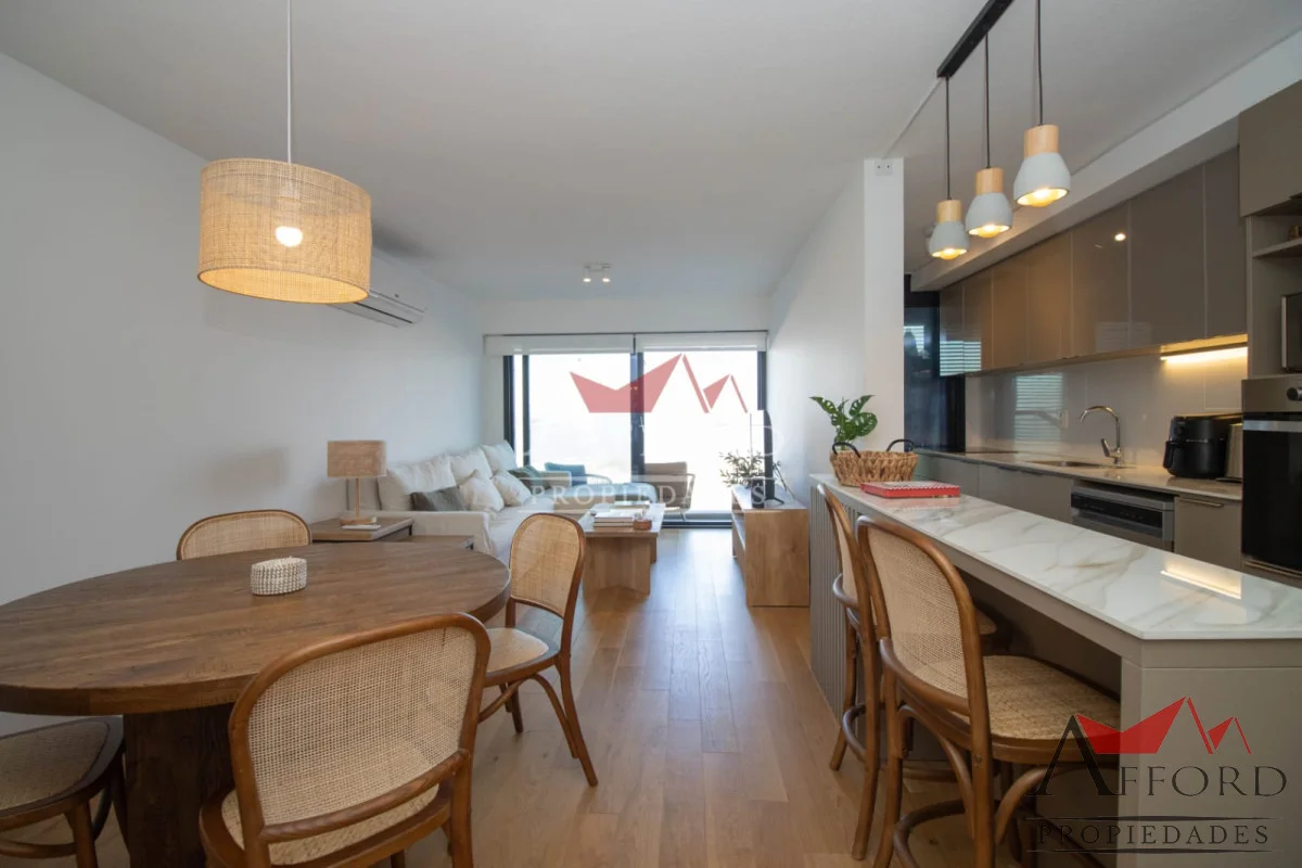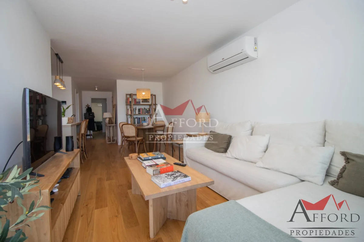 Living con acceso a terraza orientada al frente. Cocina integrada con placares sobre y bajo mesada. Mesada de apoyo y desayunadora. Al contrafrente dos dormitorios, uno de ellos con salida a terraza. Amplios placares. Dos baños completos. Opción de alquilar garajes.