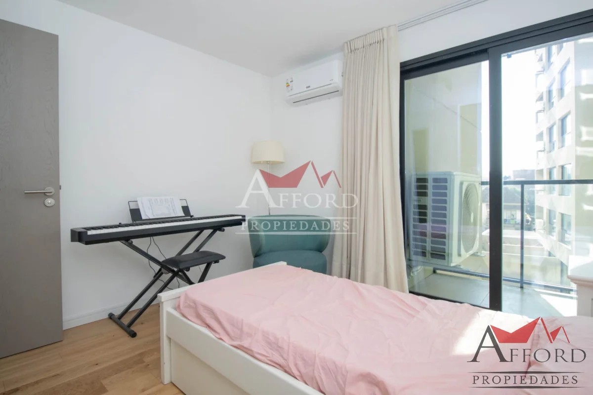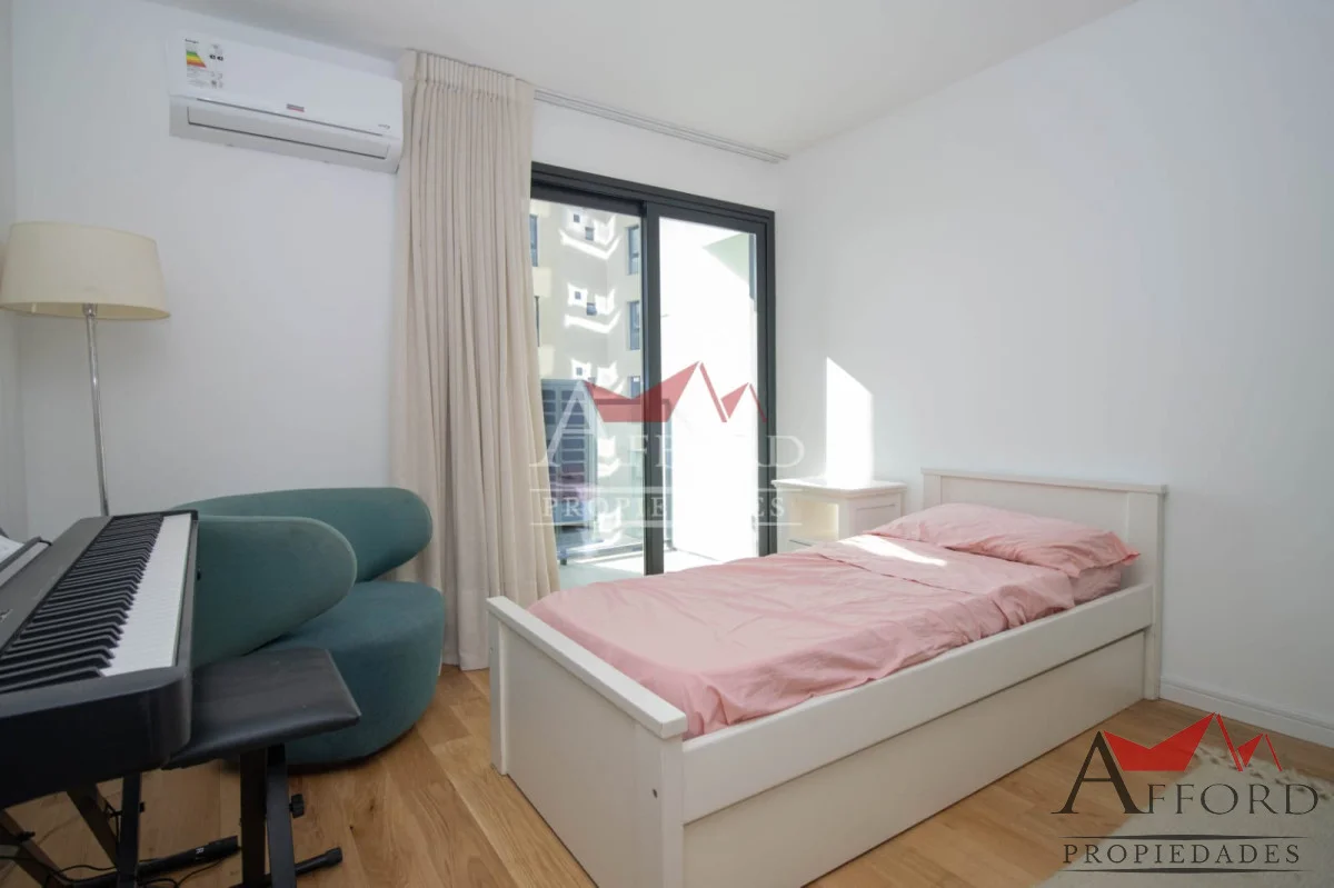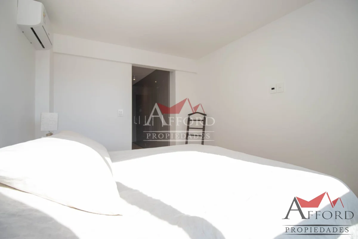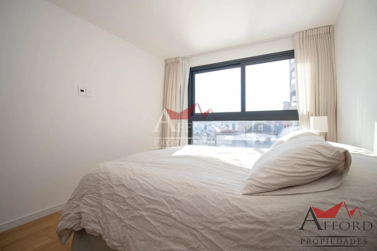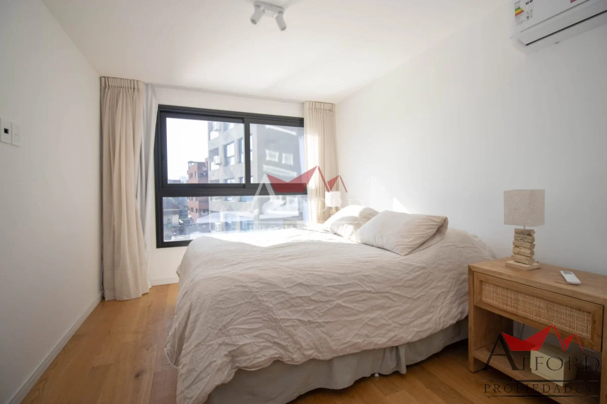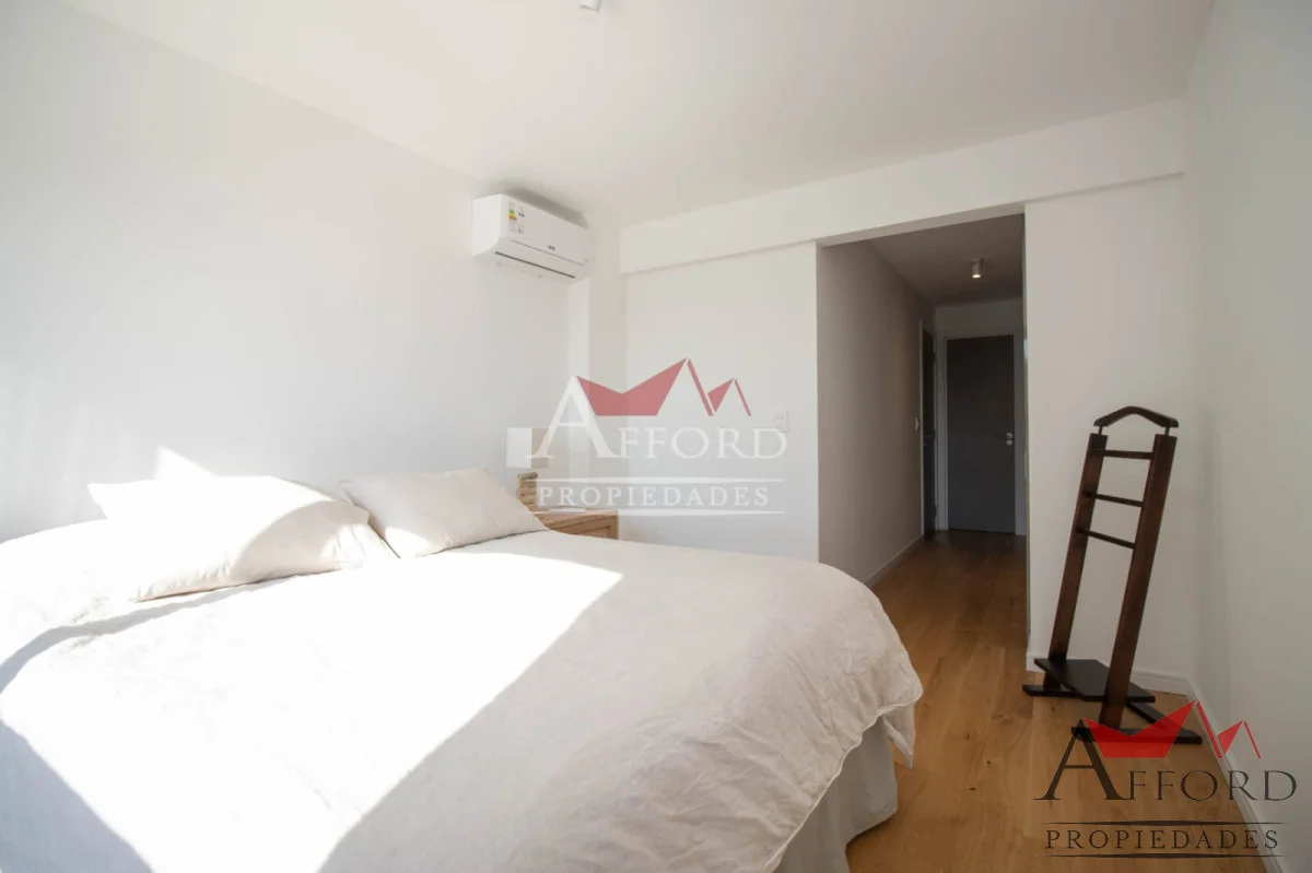 Living con acceso a terraza orientada al frente. Cocina integrada con placares sobre y bajo mesada. Mesada de apoyo y desayunadora. Al contrafrente dos dormitorios, uno de ellos con salida a terraza. Amplios placares. Dos baños completos. Opción de alquilar garajes.