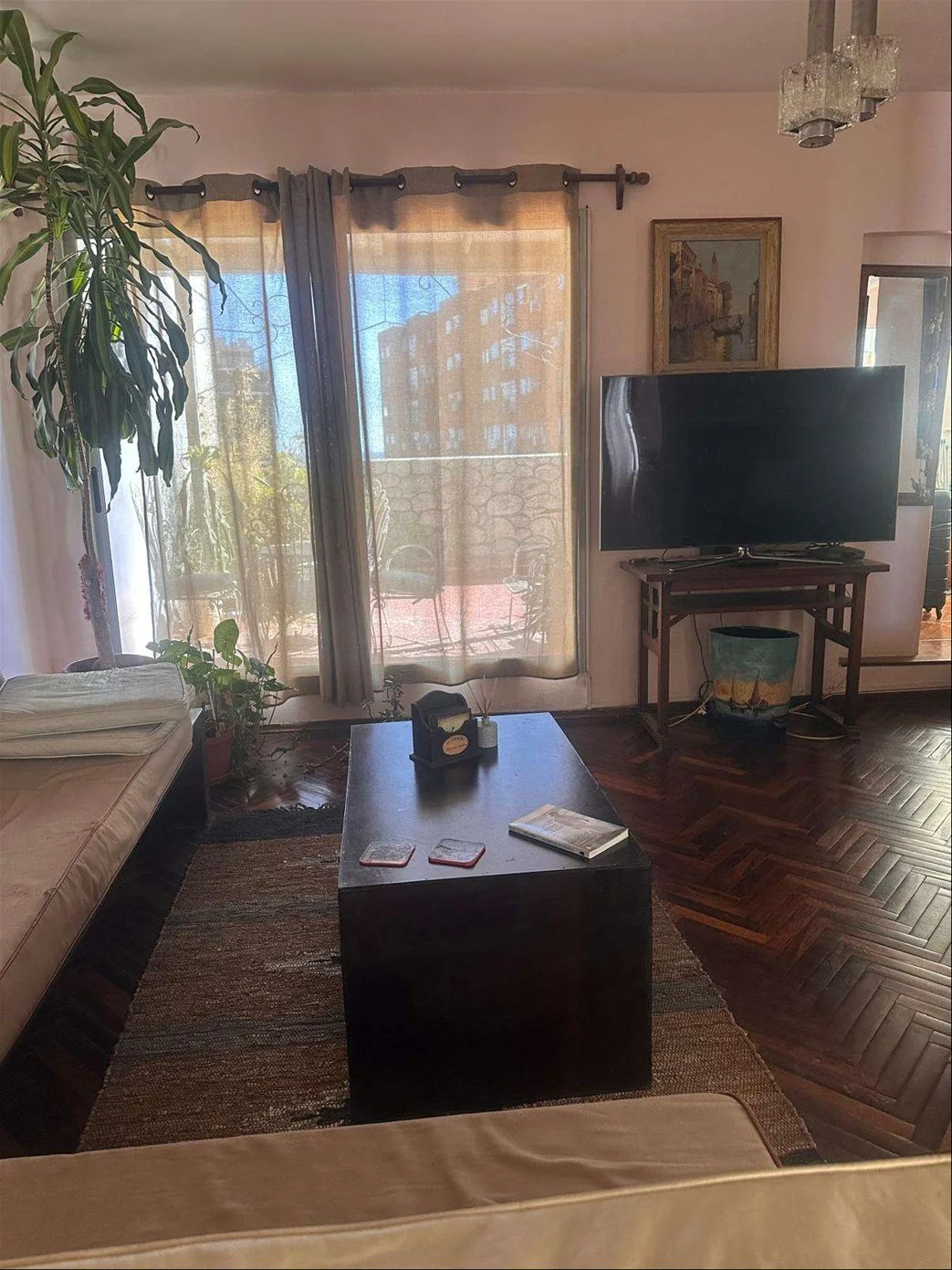 Living amplio con TV de 50 pulgadas
