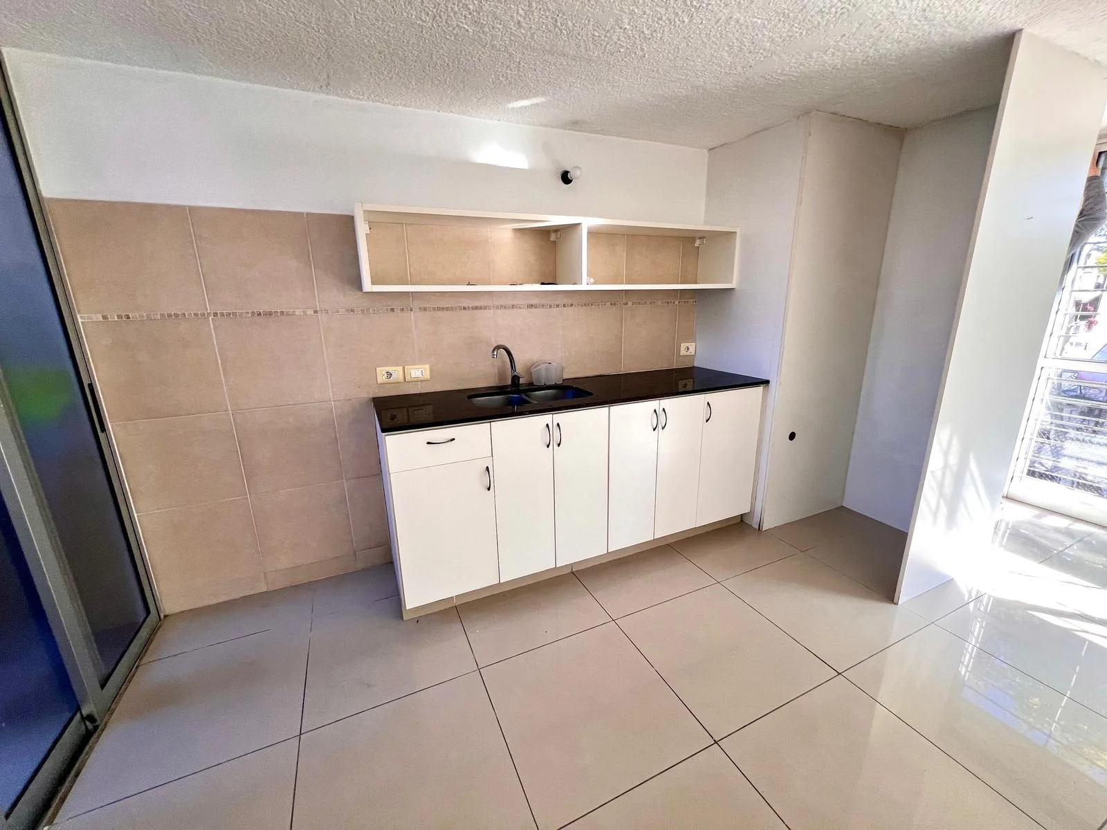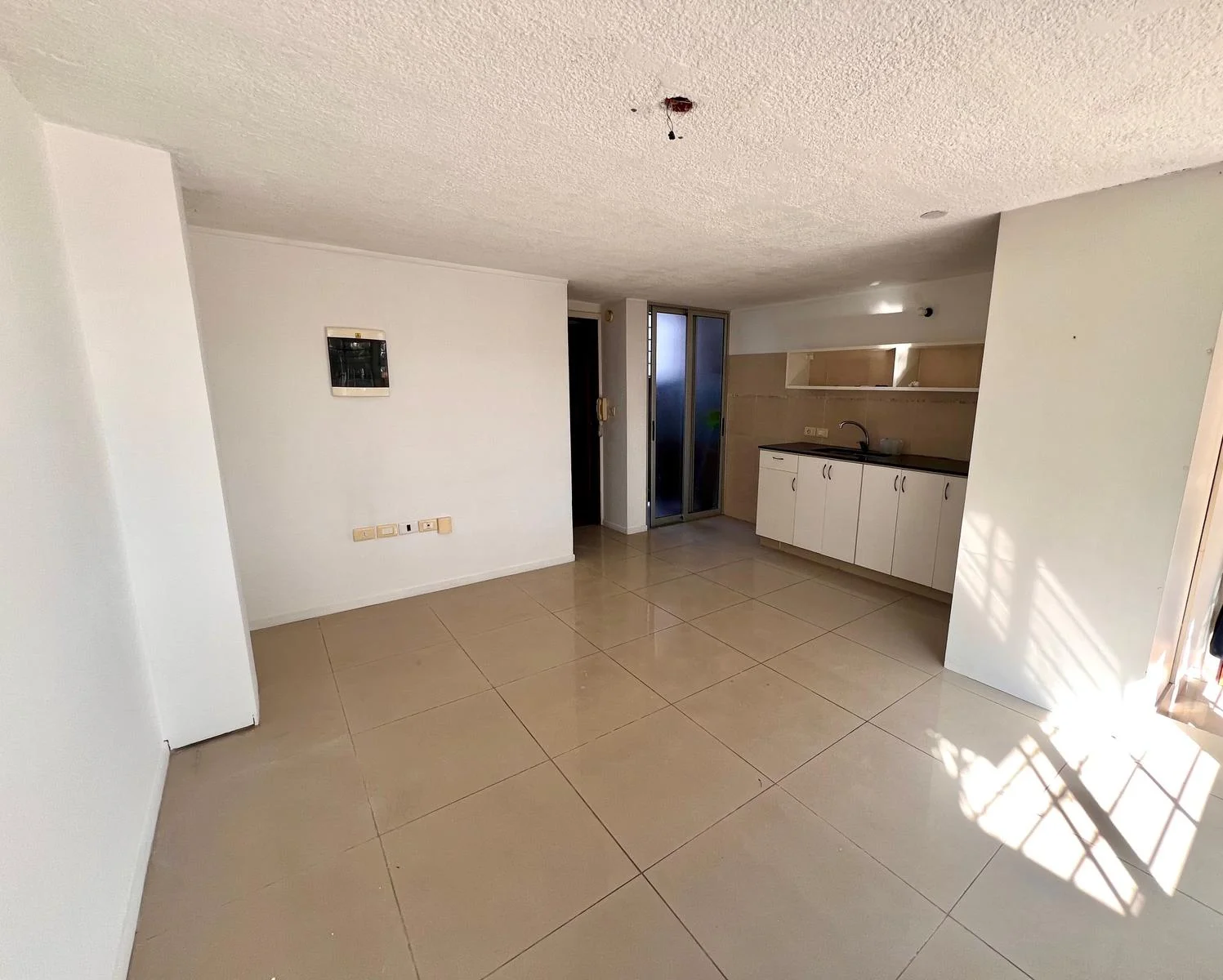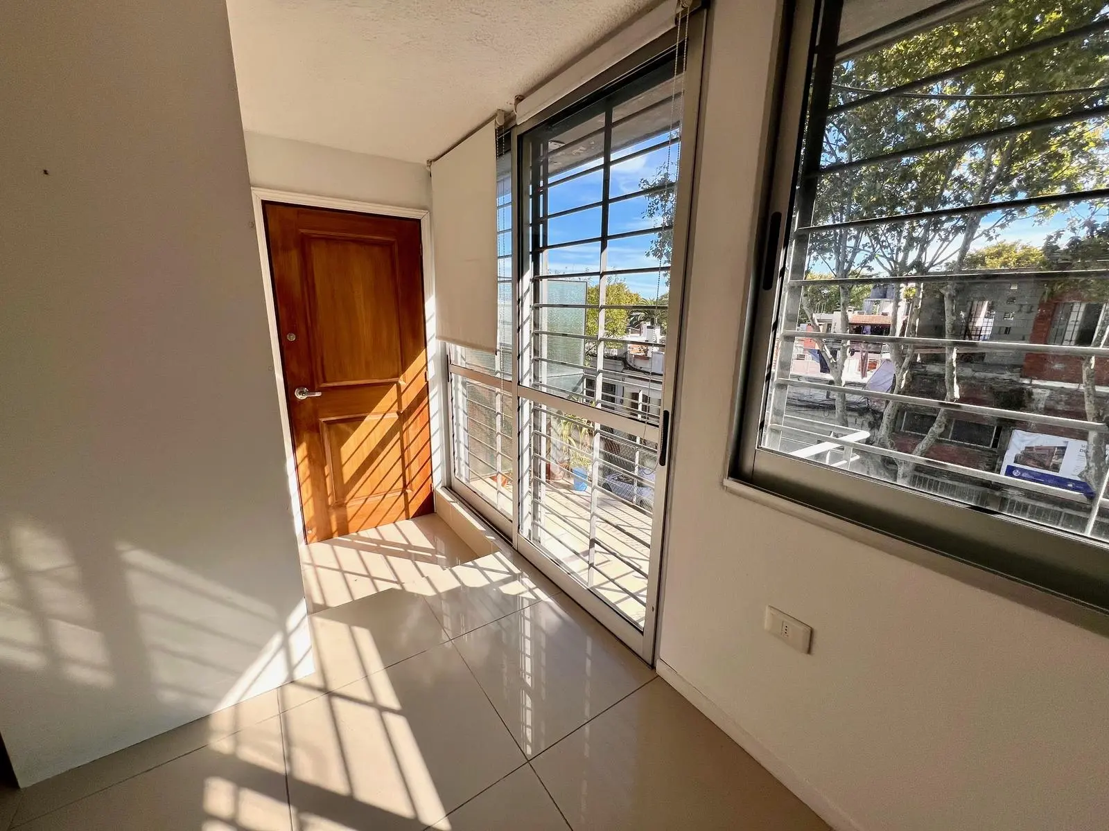 Entrada a recibidor con armario para lavarropas y calefón. Living comedor de muy buen tamaño con orientación norte, recibe sol toda la tarde, salida a balcón cómodo. Cocina integrada con buena cantidad de armarios. Terraza lavadero.