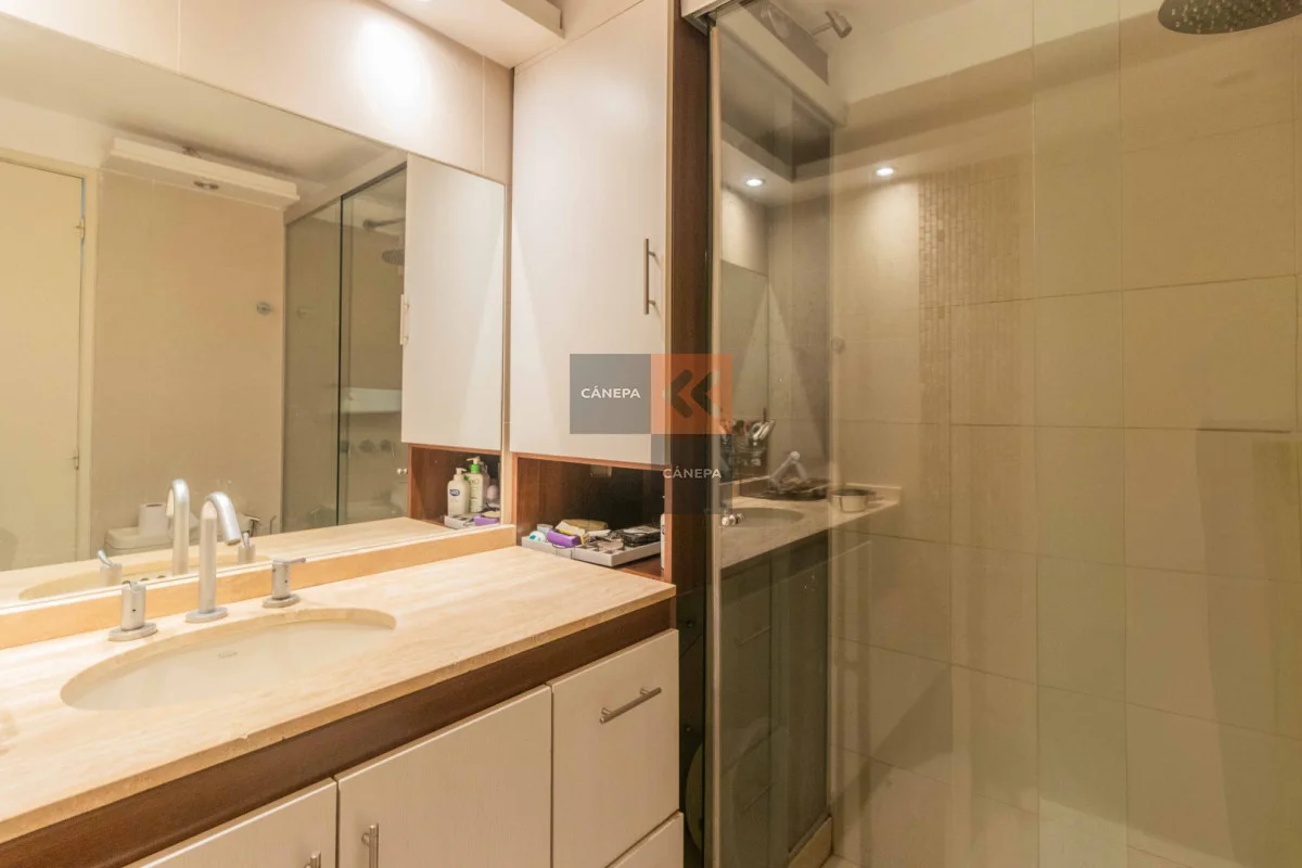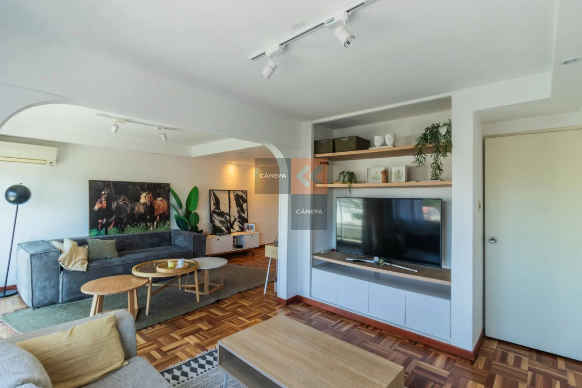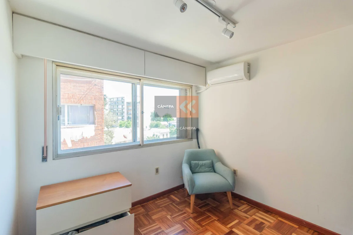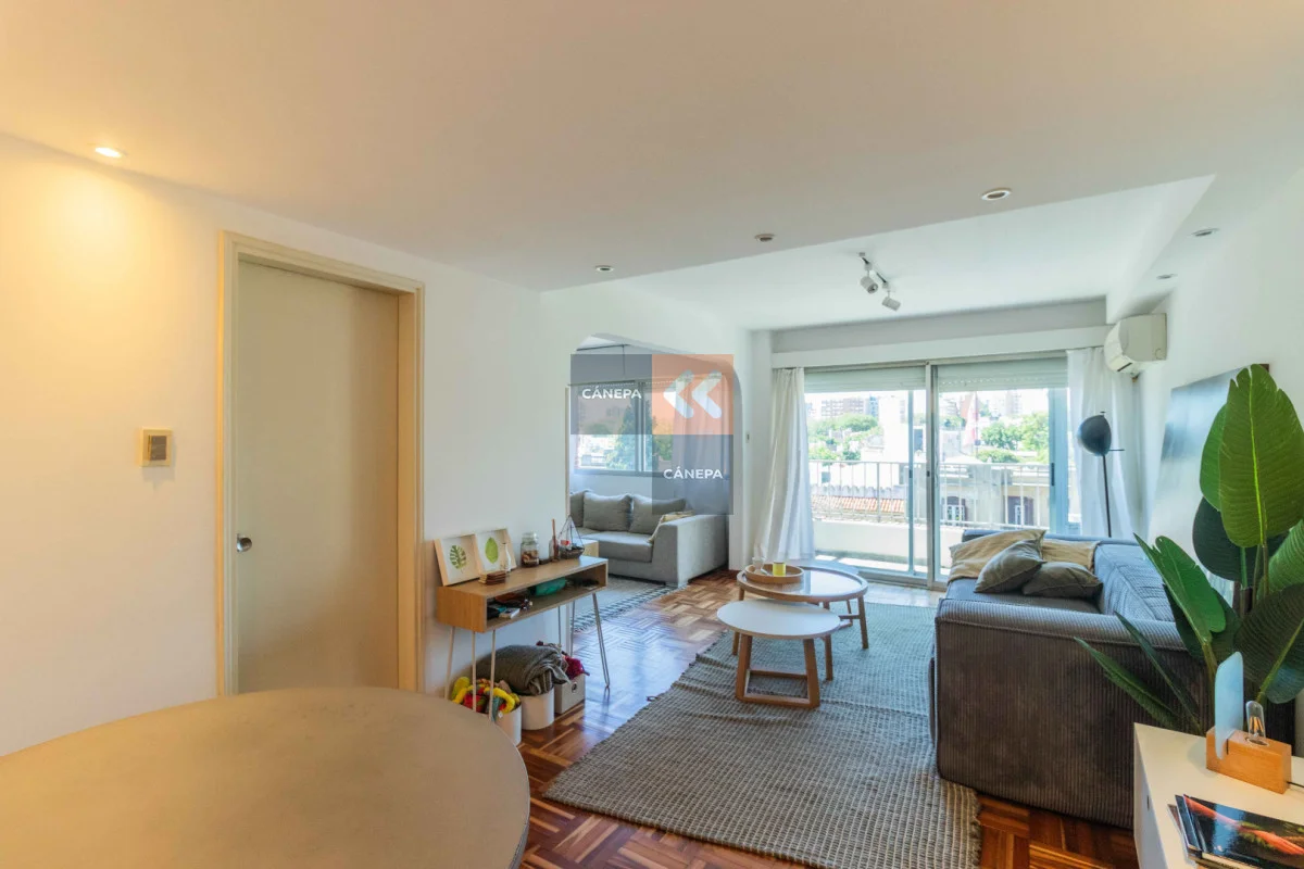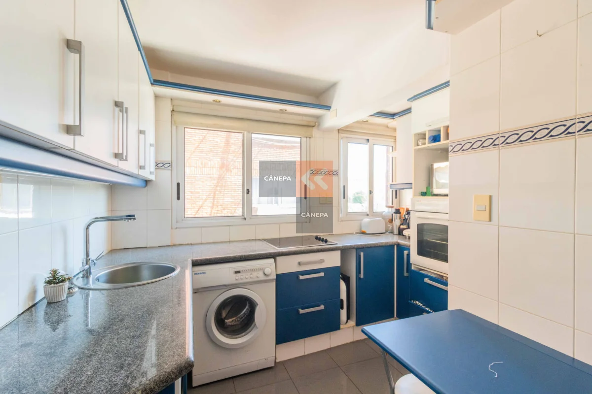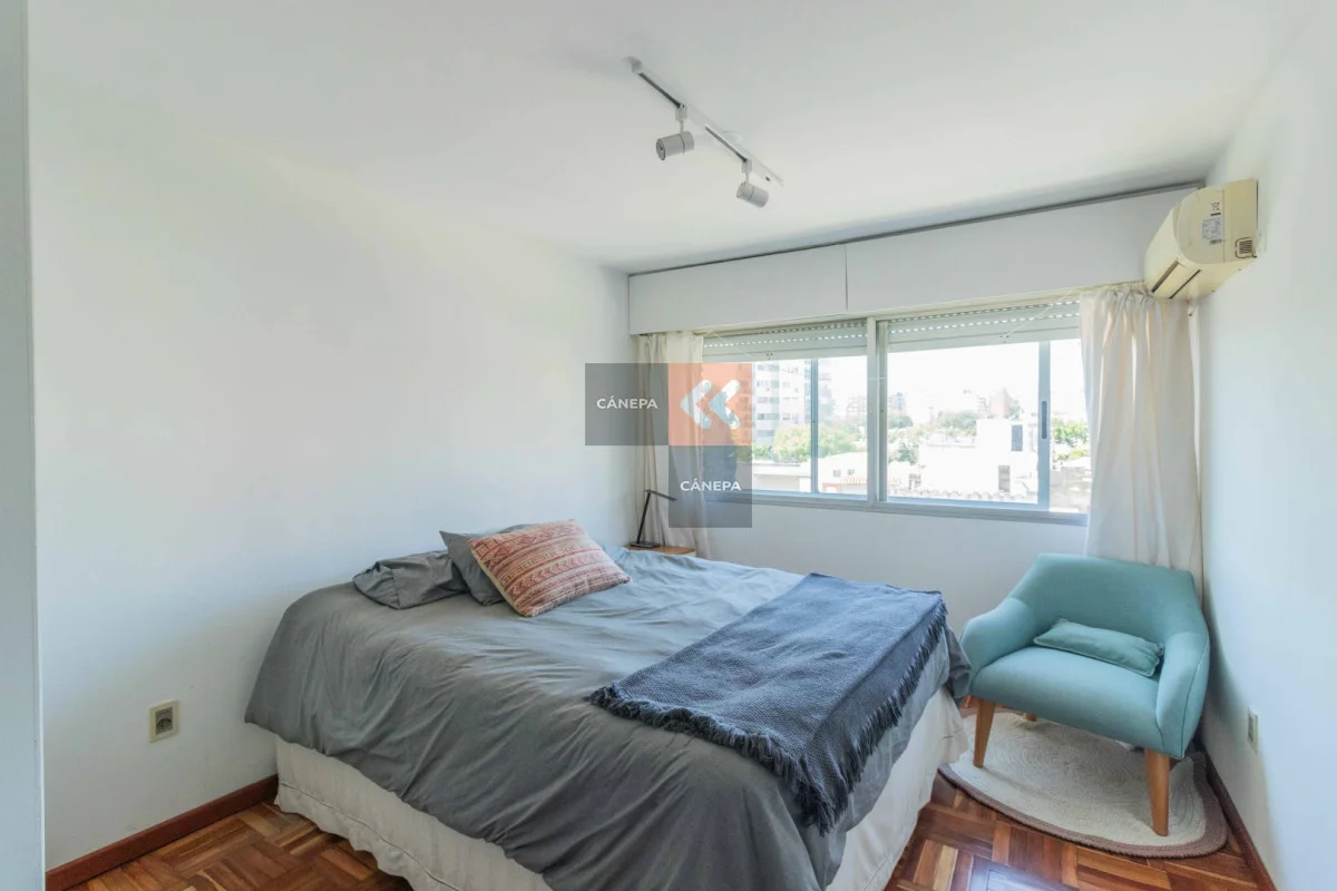 Living comedor con salida a balcón al frente y doble ventana Cocina definida con lavavajillas y horno empotrado 2 dormitorios con placares 1 baño completo en suite con calefón 1 baño social Aire acondicionado en todos los ambientes Garaje para 1 auto con entrada independiente Edificio cuenta con portería de Lunes a Sábados por la mañana y foxsys 24 hs. Referencia Interna : Tera-16903