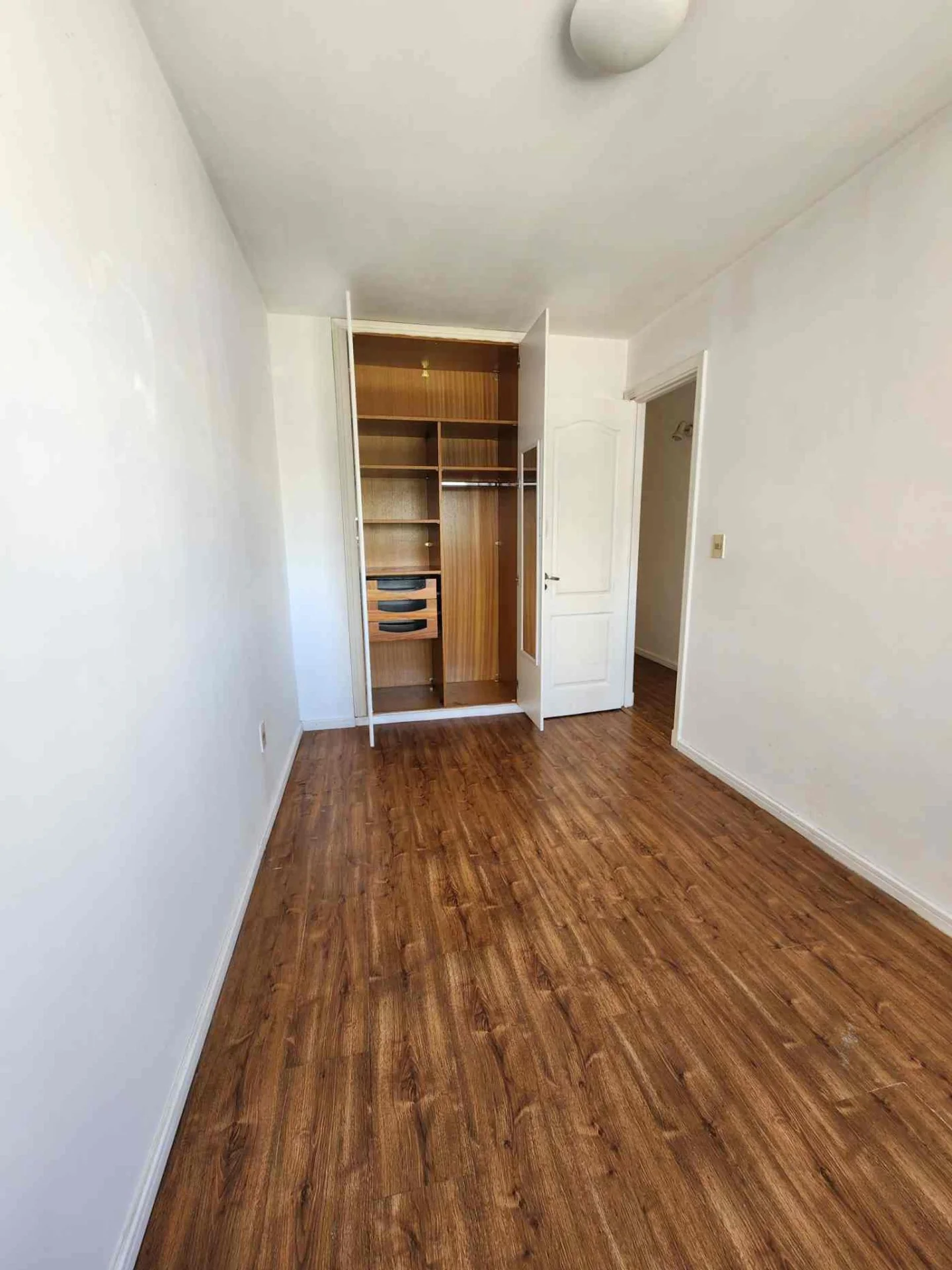 El otro dormitorio con un buen placar. Ambos con grandes ventanales y persianas.