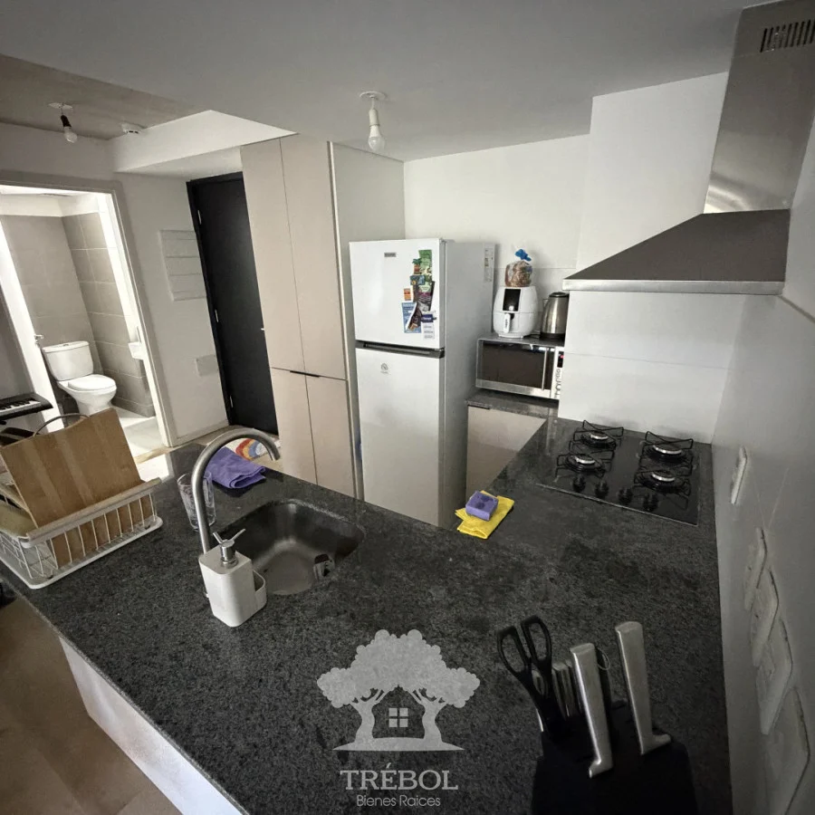 - Cocina integrada con bajo mesada, campana extractora y anafe.