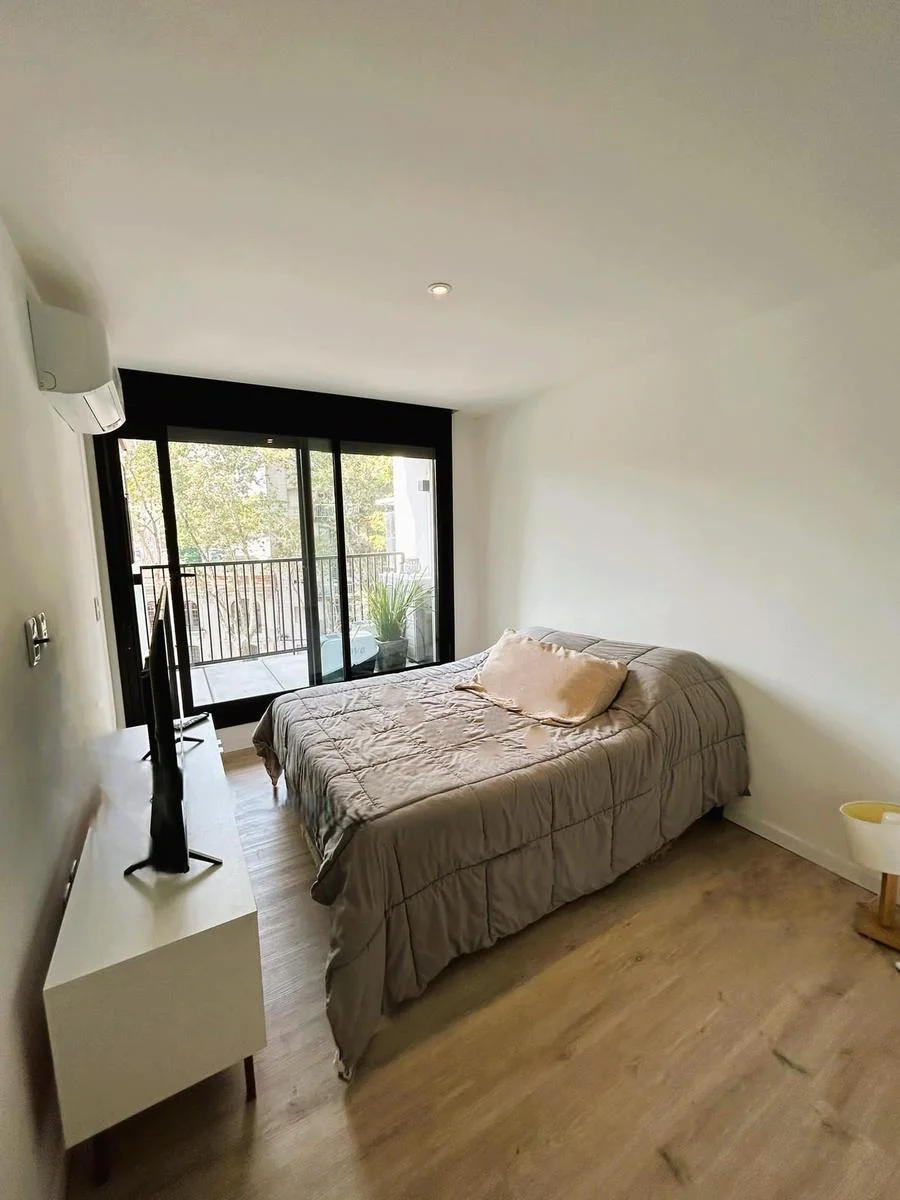 El apartamento dispone de un amplio living comedor, cocina integrada con muebles bajo y sobre mesada, amplia habitación, con salida a la terraza y baño completo. La disposición al frente asegura una vista agradable y una ventilación adecuada. El apartamento cuenta con aire acondicionado individual, proporcionando confort en todas las estaciones del año.