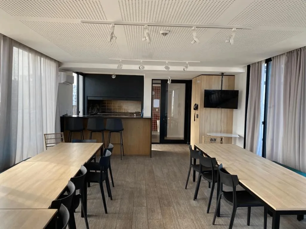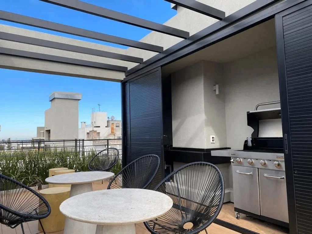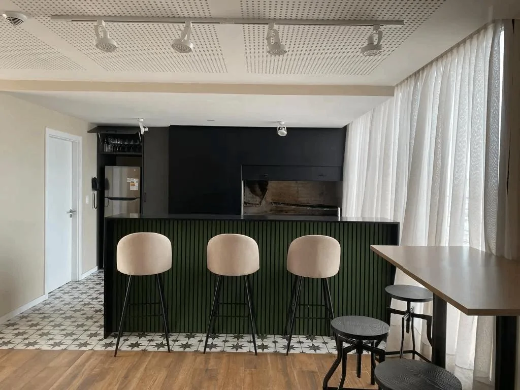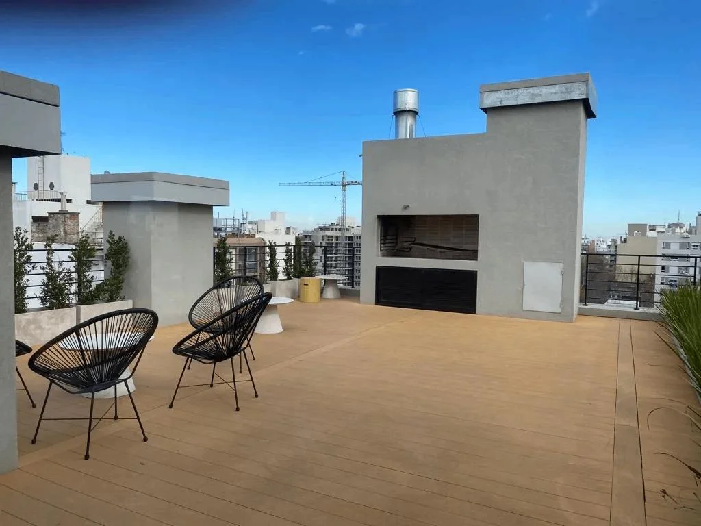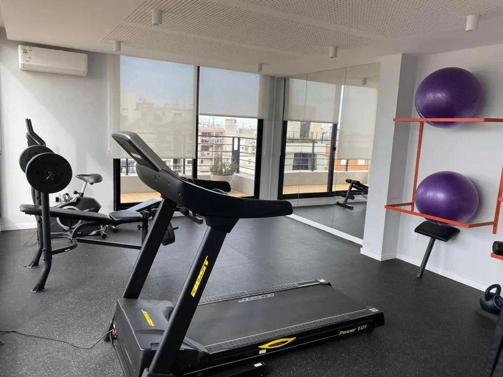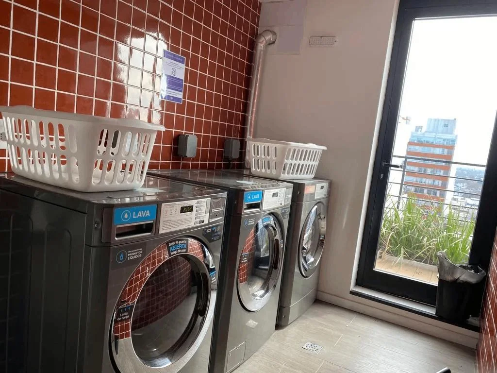 El edificio cuenta con amenities: Gimnasio, 2 barbacoas cerradas y 1 abierta (todas en el ultimo piso con vistas despejadas a la ciudad, zona de cowork para estudiar o trabajar y Lavadero con maquinas disponibles (servicio con costo).