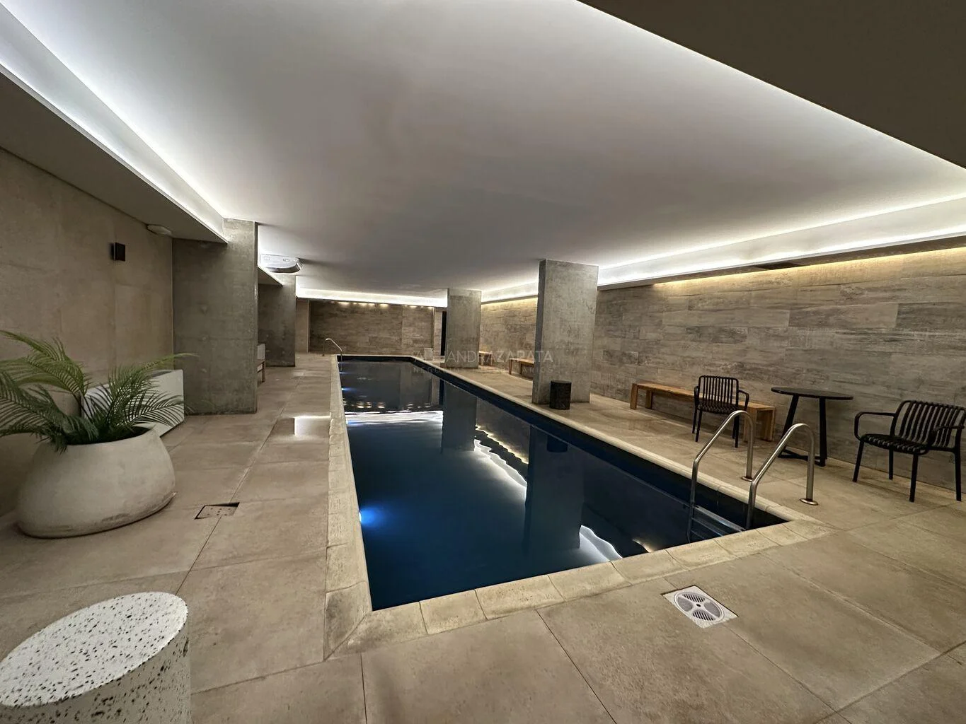 Además cuenta conde vigilancia presencial 24 hs y virtual, tiene piscina climatizada interior, gimnasio con equipamiento de primer nivel.