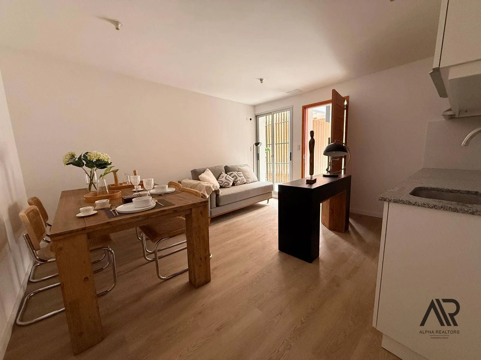 Cocina integrada y amplio living comedor, un baño completo y un dormitorio grande muy iluminado.
