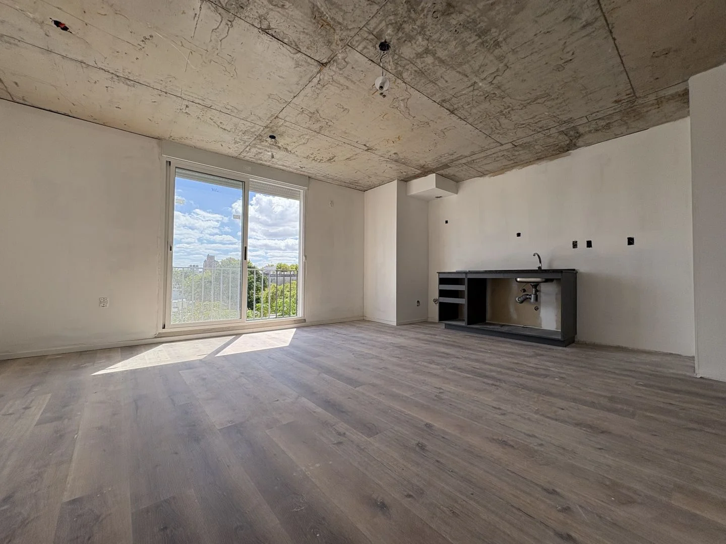 Cuenta con living comedor de buen tamaño con cocina integrada la cual posee muebles bajo mesada, campana extractora, balcón al frente, y 2 dormitorios, uno al frente y otro al fondo, baño completo de buenas dimensiones. Además cuenta con cochera incluida en el valor del alquiler.