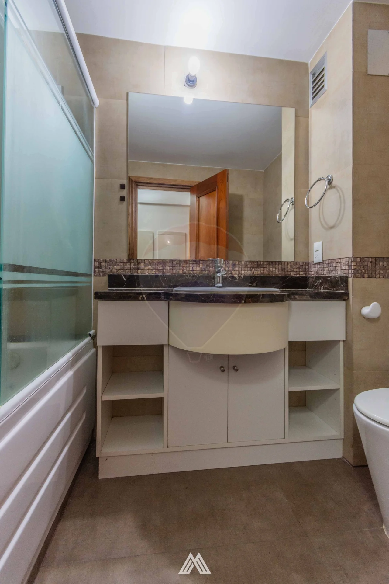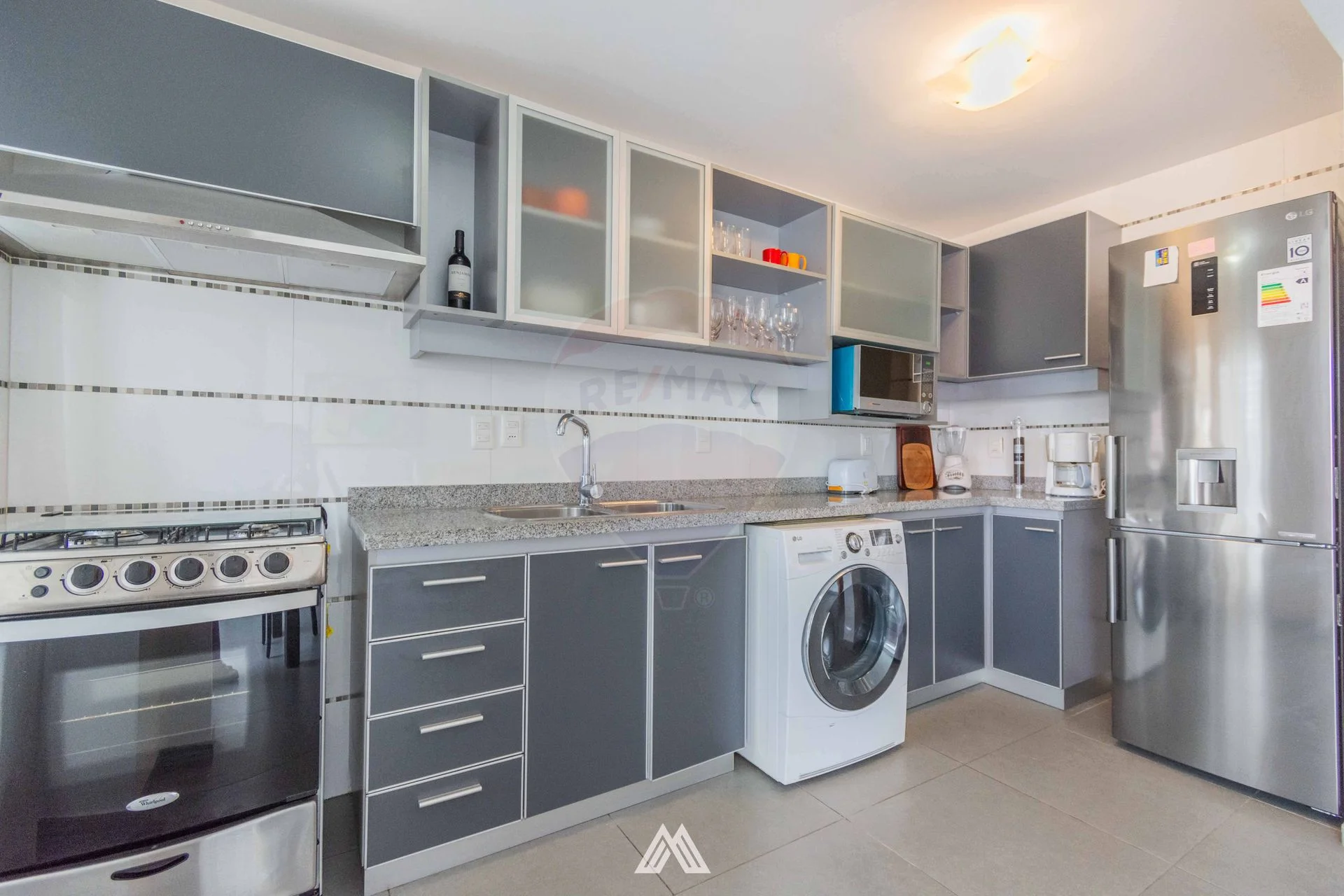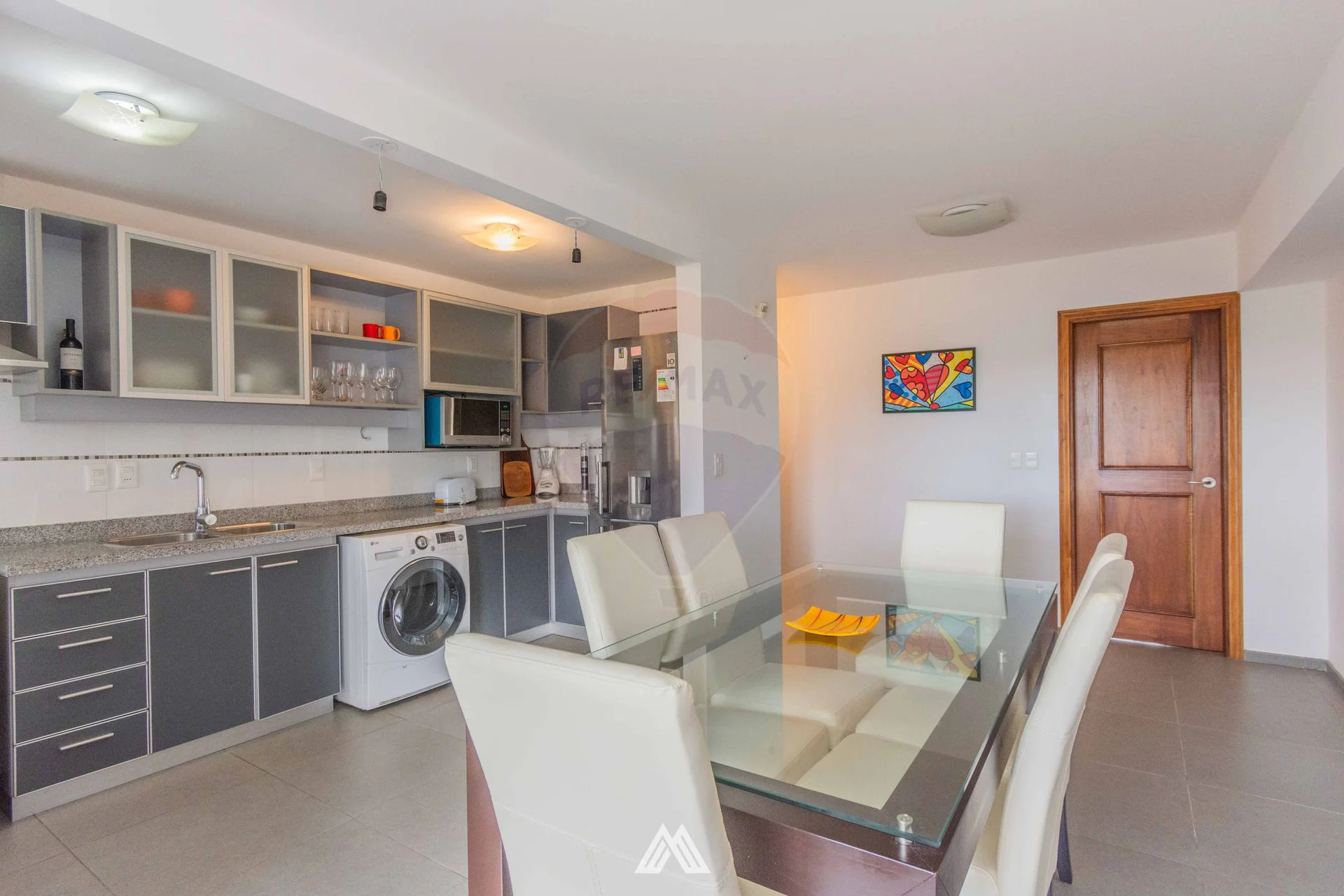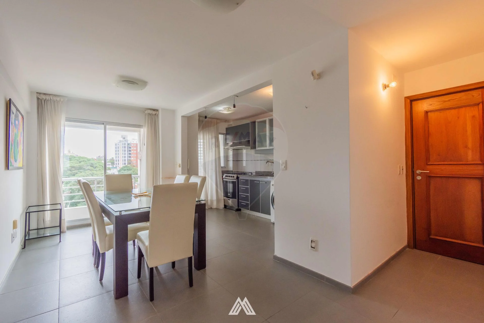 Espacioso apartamento de 90 m2 más 13m2 de terrazas, totalmente equipado. Amplio living con salida a cómoda terraza. Baño social. Comedor con acceso a terraza con parrillero de uso exclusivo. Cocina semi integrada con muebles aéreos y bajo mesada, cocina, microondas, heladera, lavarropas y terraza de servicio. Dormitorio principal en suite, al frente y con terraza, con doble placard. Segundo dormitorio con placard al contrafrente, con orientación norte y vista despejada. Segundo baño completo. La unidad cuenta con entrada principal y de servicio. Excelentes terminaciones. Pisos en madera de lapacho en dormitorios y living. Calefacción por losa eléctrica individual. Sistema de aspiración central individual. Garage para un auto. El edificio cuenta con Portería 24hrs, Gimnasio, Sauna y Solarium panorámico. El apartamento se alquila con el equipamiento tal cual se ve en las fotos. Gastos comunes aprox $22.000.