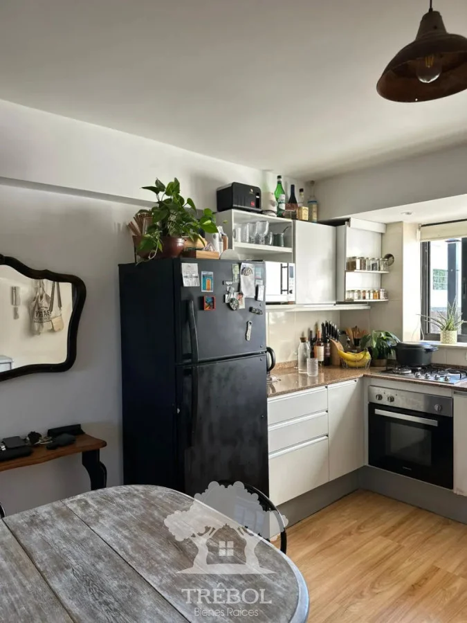_ Cocina integrada con aéreo, bajo mesada y horno eléctrico.