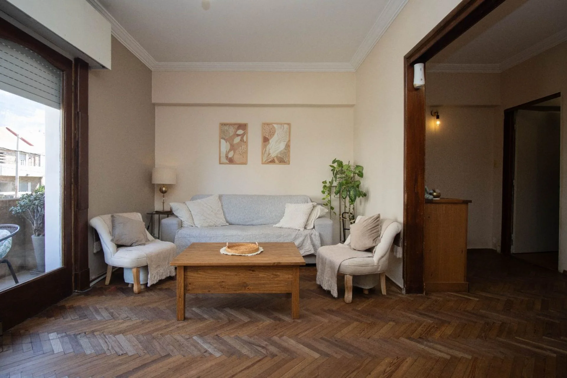 Dispone de 2 dormitorios luminosos con placares, y un tercer dormitorio o escritorio que se integra mediante puerta corrediza, ideal para adaptar según necesidad.