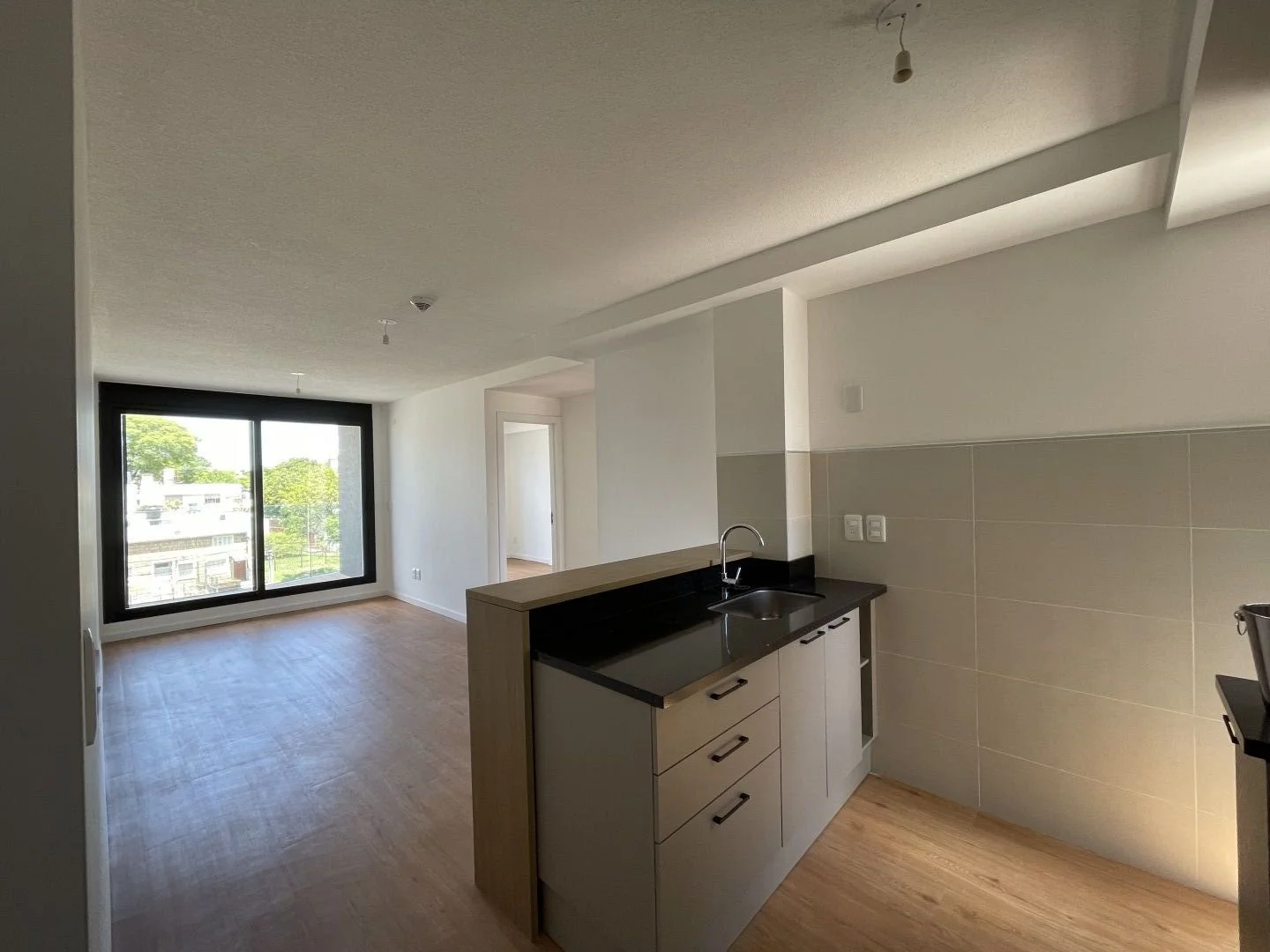 La unidad cuenta con hall de acceso independiente, que separa el ingreso del área social. Living comedor con cocina integrada y salida a terraza. Dos dormitorios, uno al frente con acceso a la terraza y otro hacia el interior. Baño completo con instalación para lavarropas y calefón.