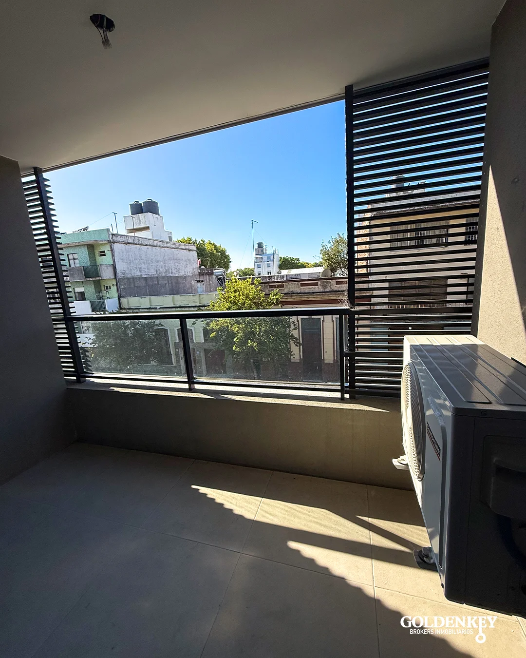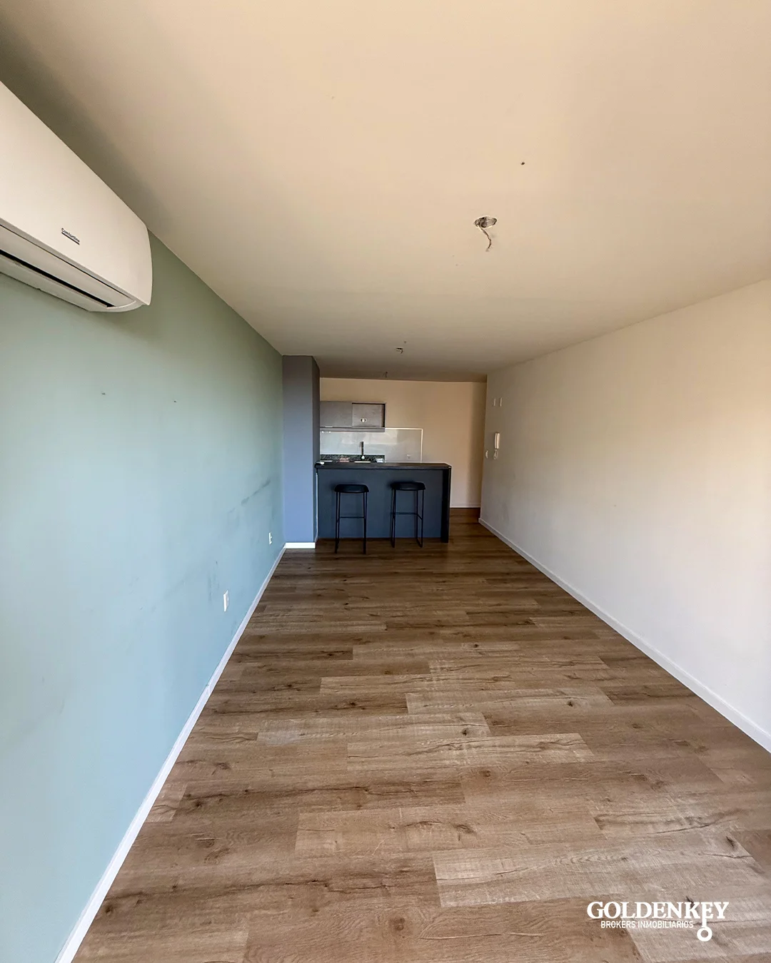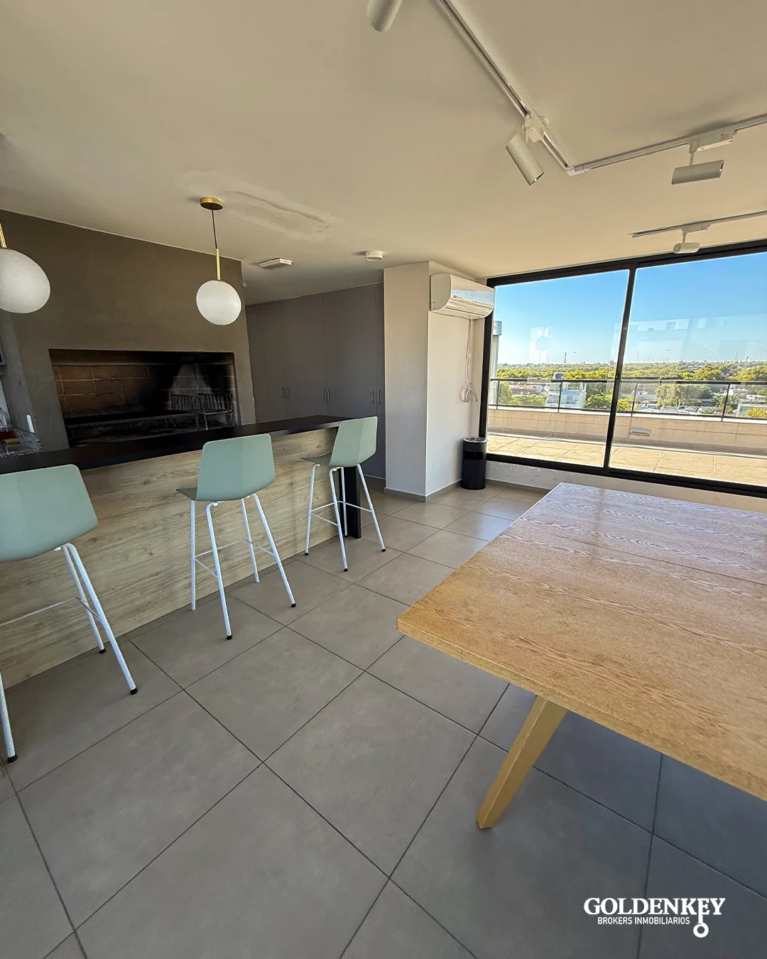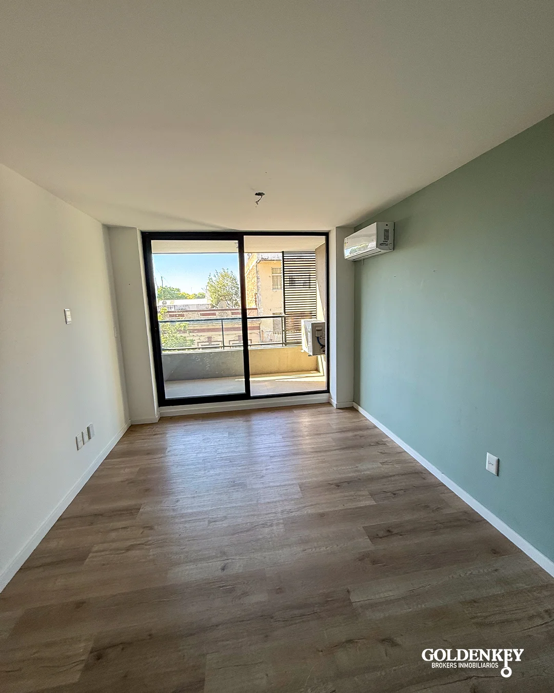 Living comedor amplio y luminoso con salida a amplia terraza al contra frente y aire acondicionado. Salida por amplia puerta ventana en aluminio.