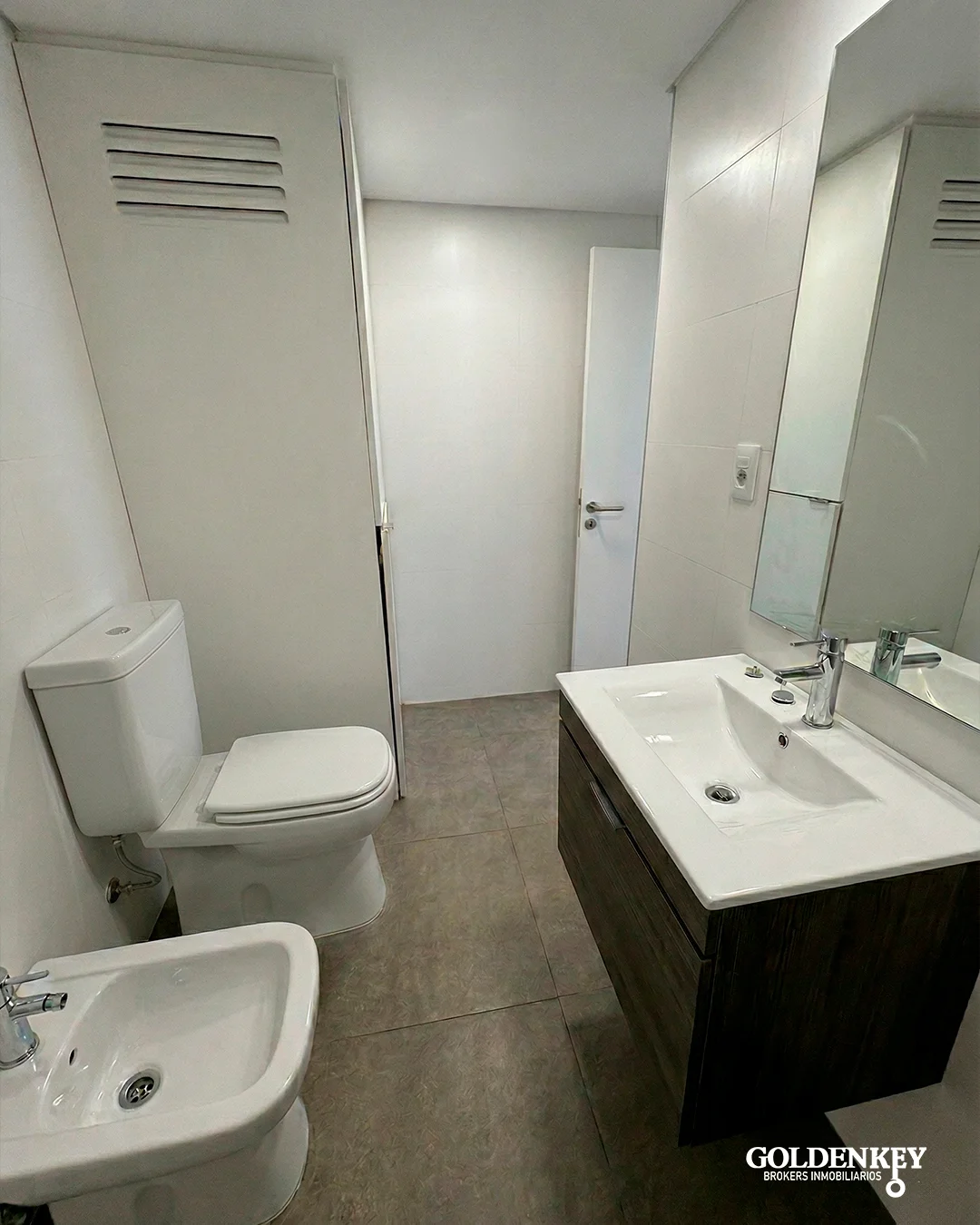 Baño amplio completo con conexión para lavarropa.